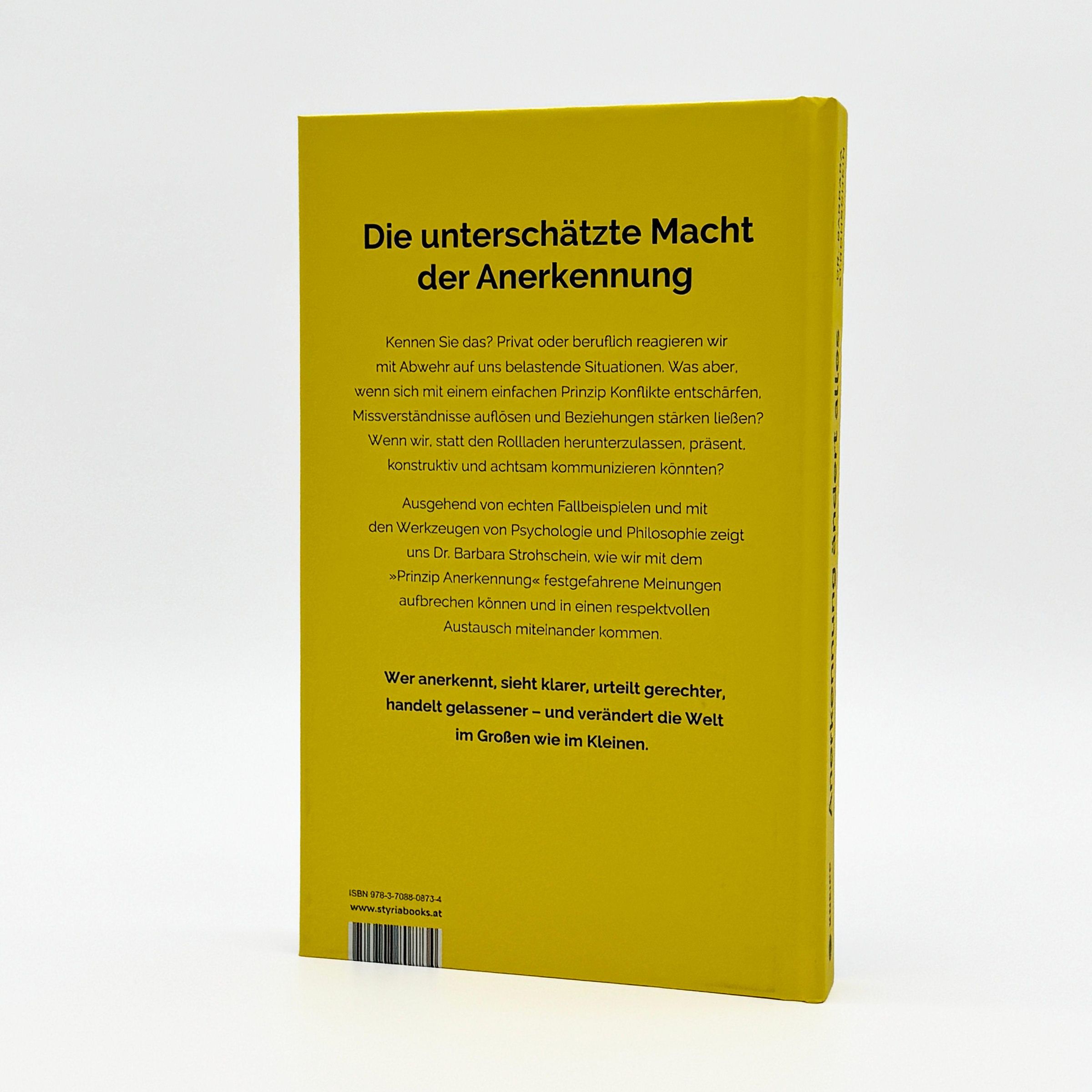Was wäre, wenn Sie mit einem einfachen Prinzip Konflikte entschärfen, Missverständnisse auflösen und Beziehungen stärken könnten? Barbara Strohschein zeigt in ihrem neuen Buch, wie praktizierte Anerkennung festgefahrene Meinungen aufbrechen und Menschen verändern kann. Sie hat es selbst erlebt: In Tiefeninterviews mit Klimaskeptikern und Menschen aus unterschiedlichen Lebenswelten entstand durch Anerkennung ein authentischer und respektvoller Austausch. Wer sich gesehen und akzeptiert fühlt, reagiert offener, gelassener, kooperativer. Dieses Buch zeigt, wie Anerkennung Stress reduziert, Verbindung schafft und neue Perspektiven eröffnet -- in der Familie, im Beruf, in der Gesellschaft. Ein Buch für alle, die ihr Miteinander auf eine neue Ebene bringen wollen.