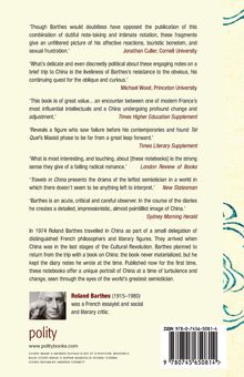 Barthes planned to return from the trip with a book on China: the book never materialized, but he kept the diary notes he wrote at the time. The notes on things seen, smelled and heard alternate with reflections and remarks - meditations, critiques or notes of sympathy, an aside from the surrounding world. Published now for the first time more than thirty years after the trip, these notebooks offer a unique portrait of China at a time of turbulence and change, seen through the eyes of the world's greatest semiotician.