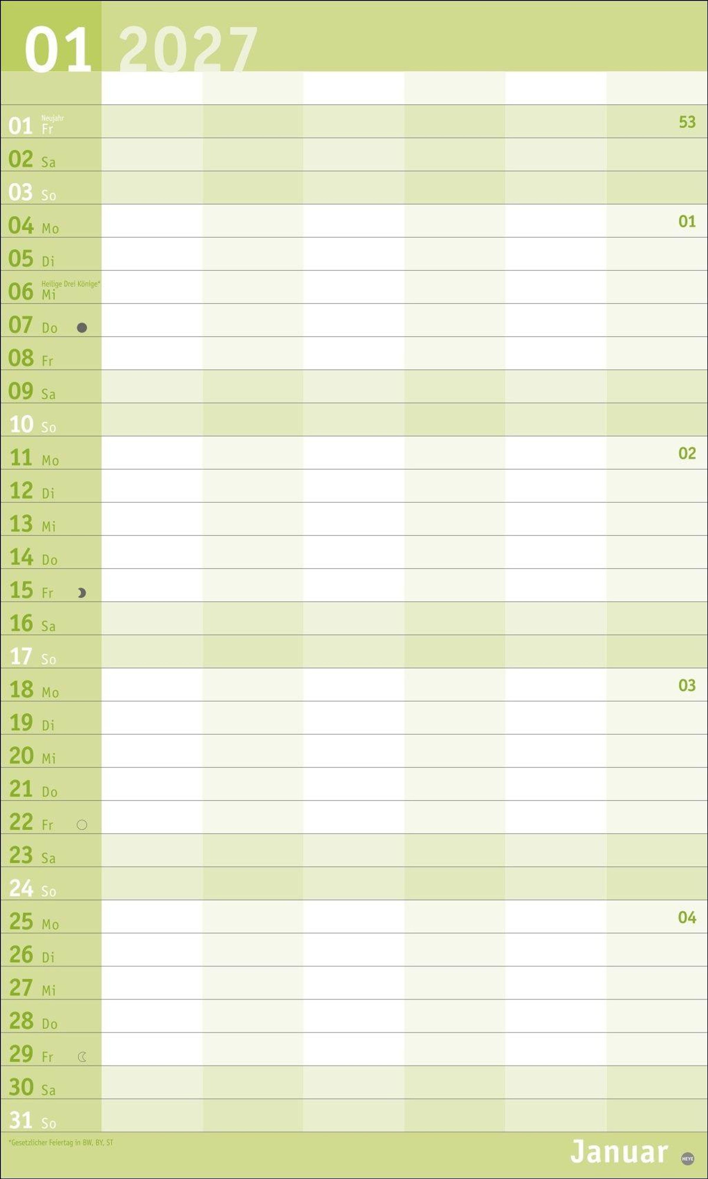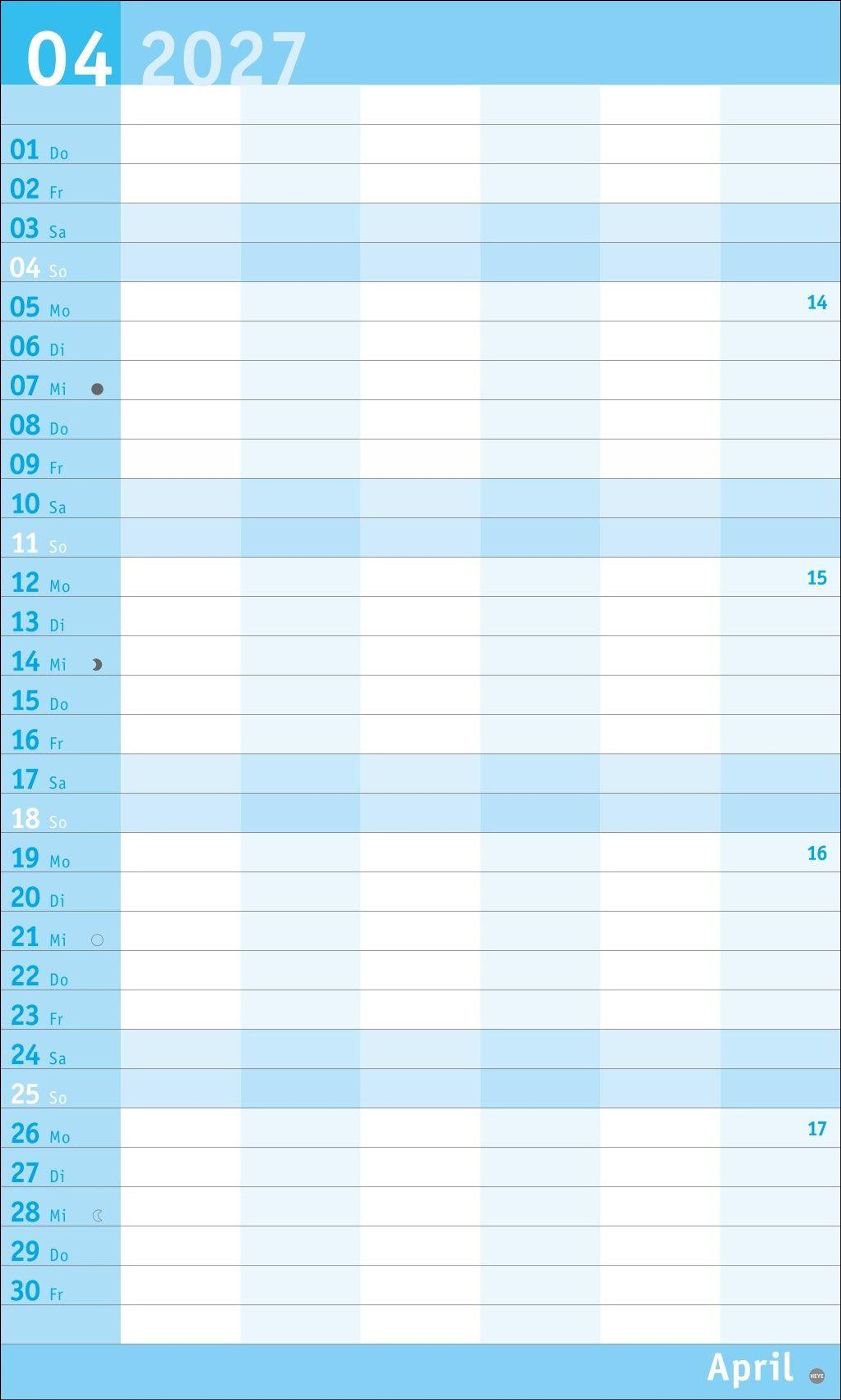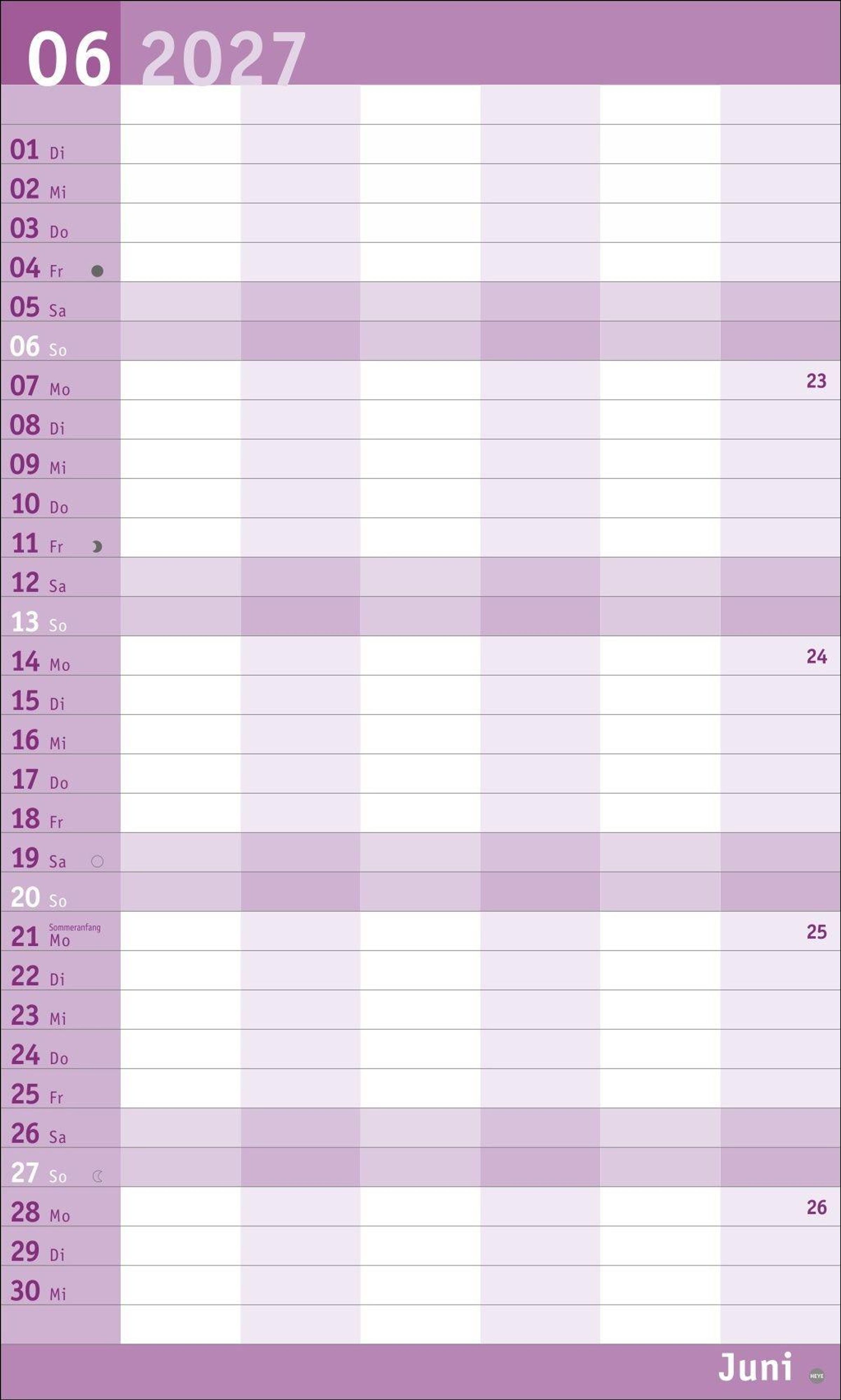 Unser erfolgreiches Konzept für Familienplaner: 6 Spalten mit ausreichend Platz für die ganze Familie im übersichtlichen 27 x 45 cm-Format