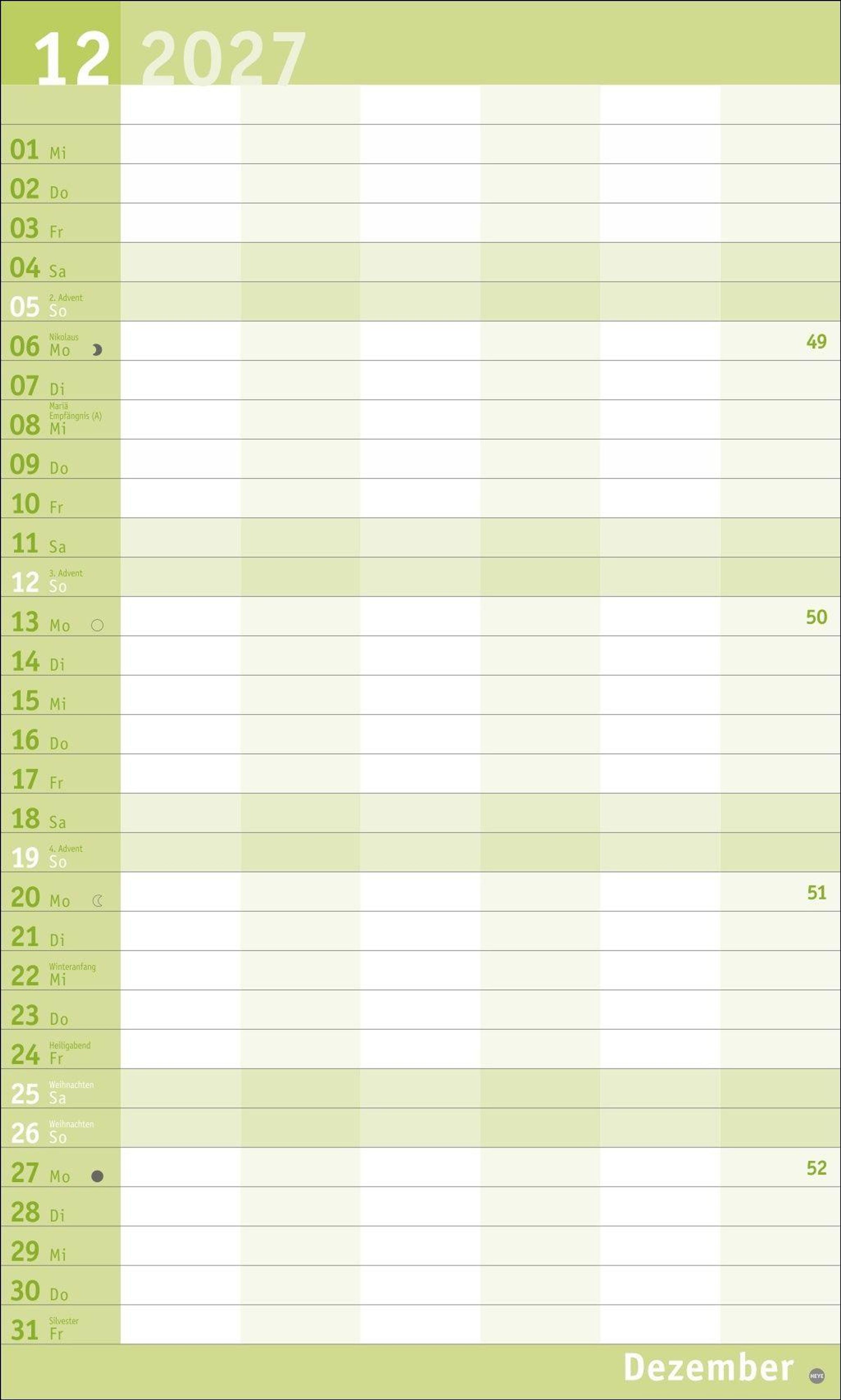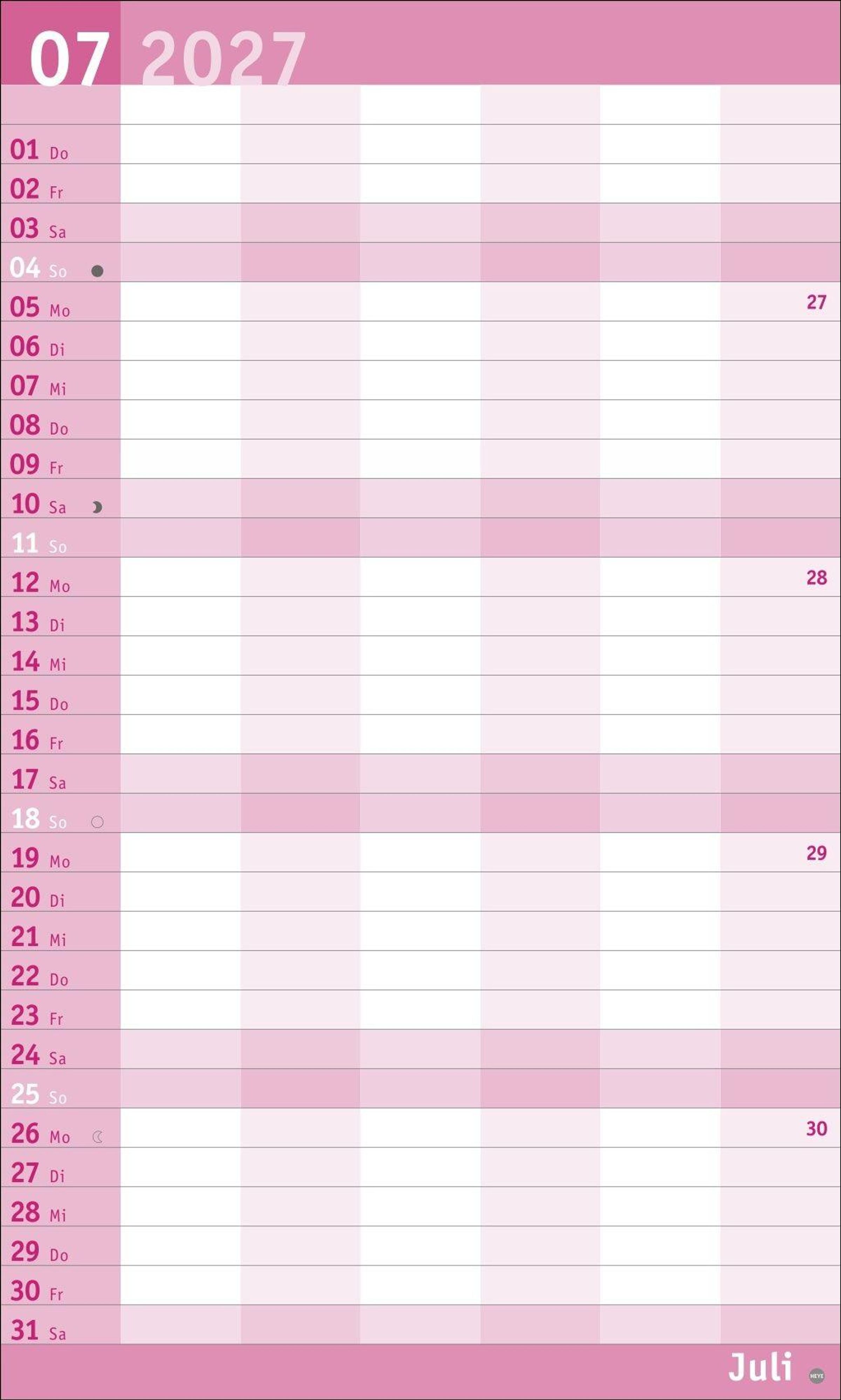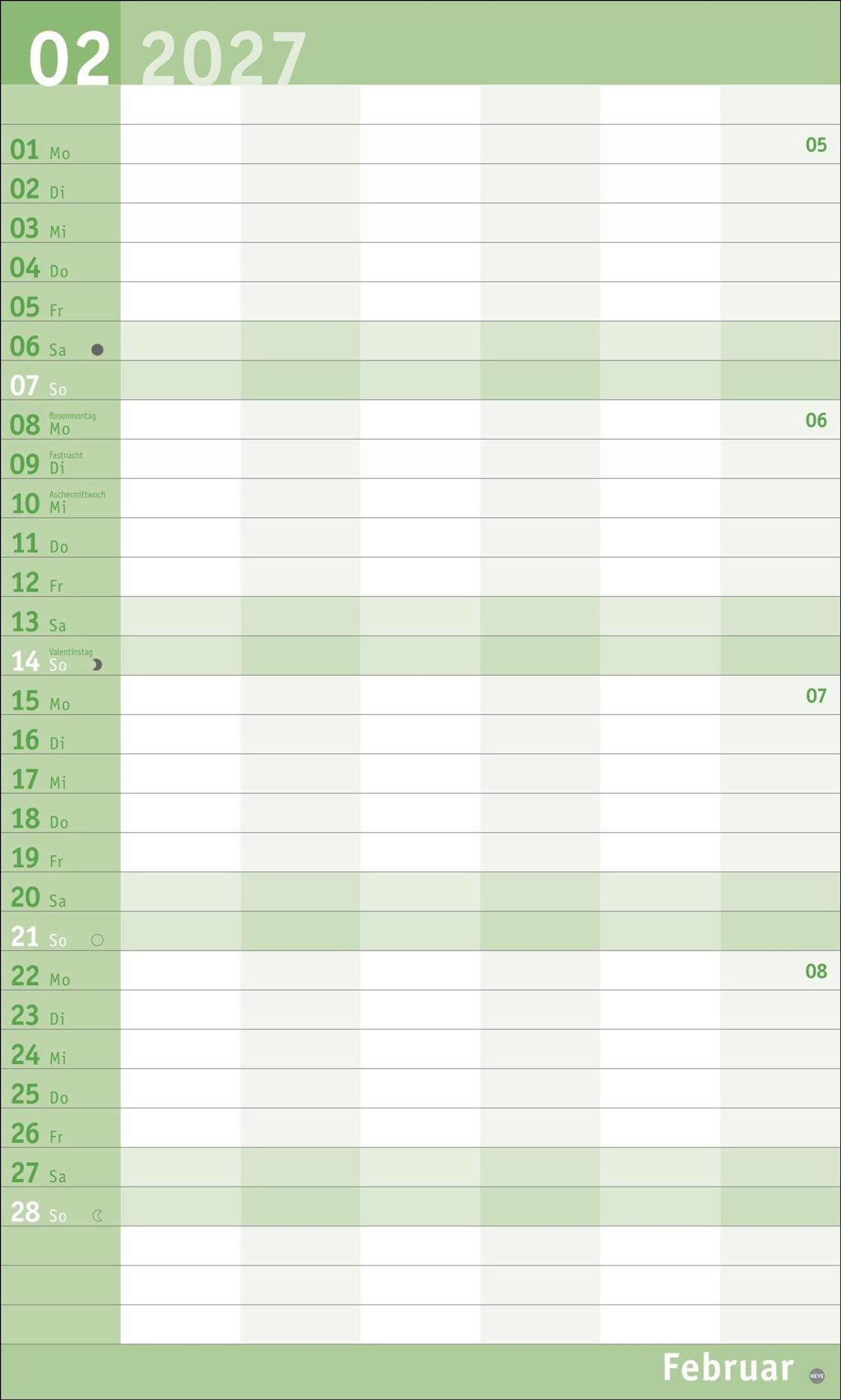 Unser erfolgreiches Konzept für Familienplaner: 6 Spalten mit ausreichend Platz für die ganze Familie im übersichtlichen 27 x 45 cm-Format