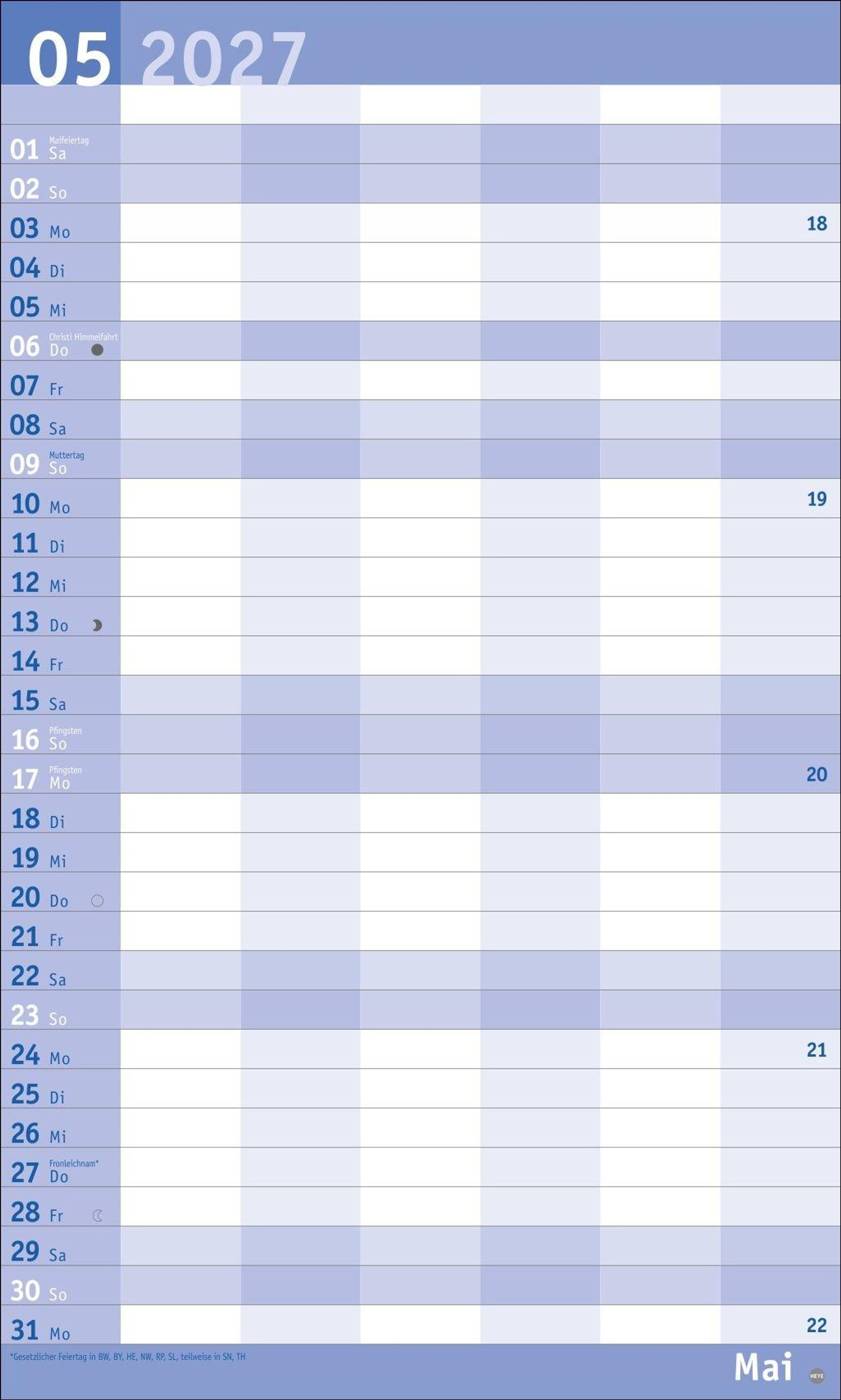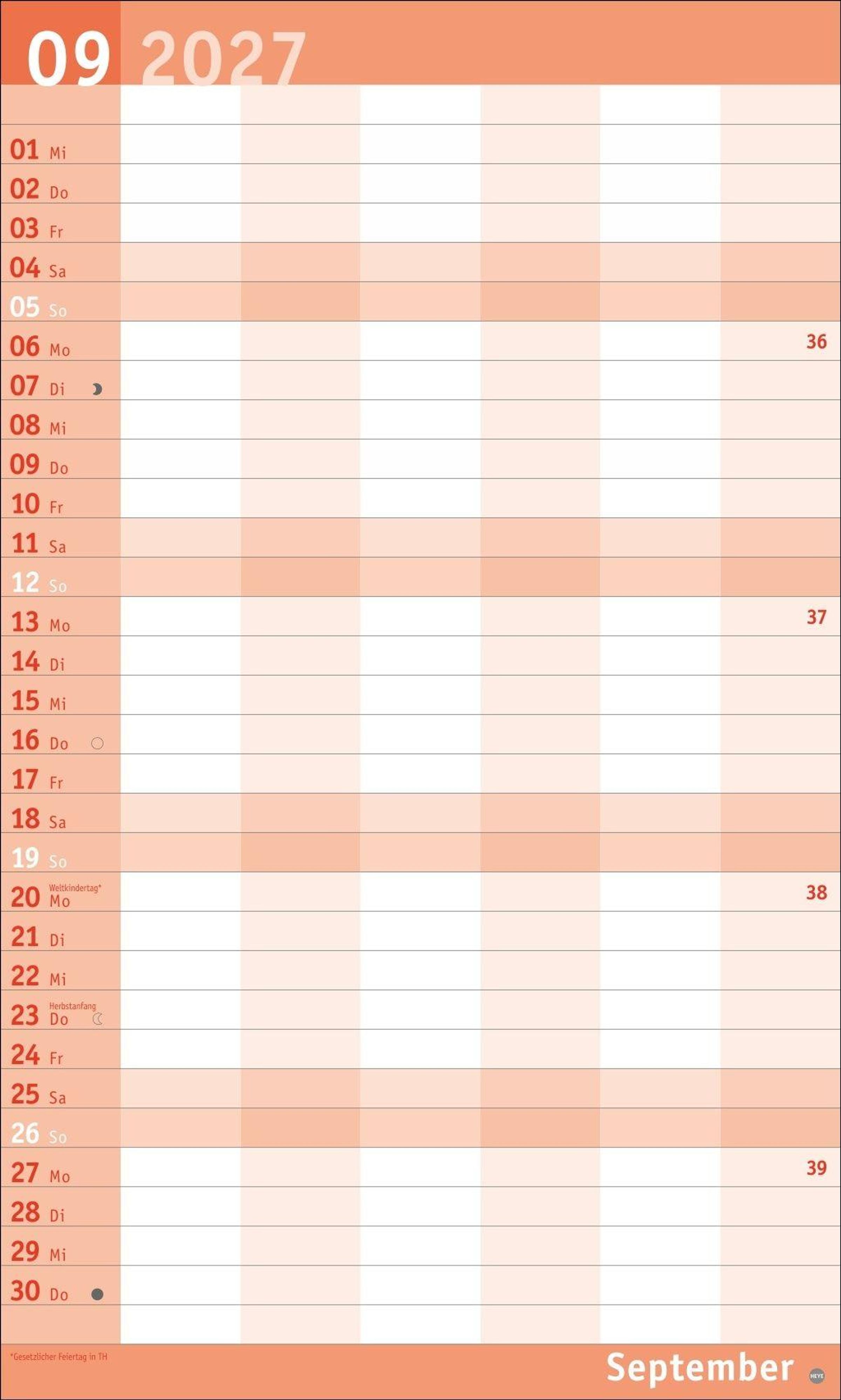 - Familienkalender mit 6 Spalten. Praktischer Familien-Wandkalender mit Schulferien. Extra breiter Terminkalender. 27 x 45 cm.