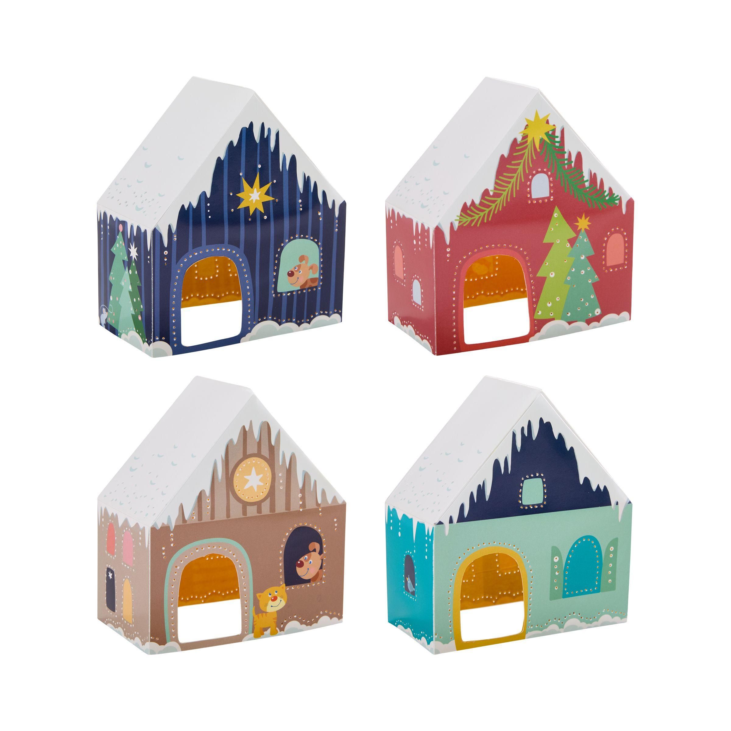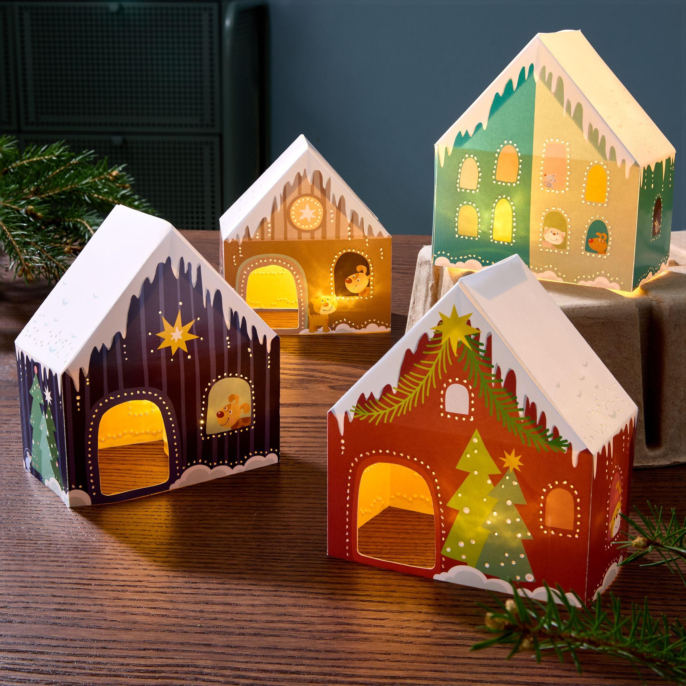 Ein zauberhaftes Winterdorf entsteht! Aus diesem Set lassen sich vier winterliche Leuchthäuschen prickeln und zusammenkleben - ideal zum Prickeln lernen und Prickeln üben. Mit einem LED-Teelicht werden die Häuschen zu einer stimmungsvollen Lichtdekoration für gemütliche Winterabende. Eine tolle winterliche Bastelidee für kleine Kreative und eine wunderschöne Deko für Fenster oder Tisch!