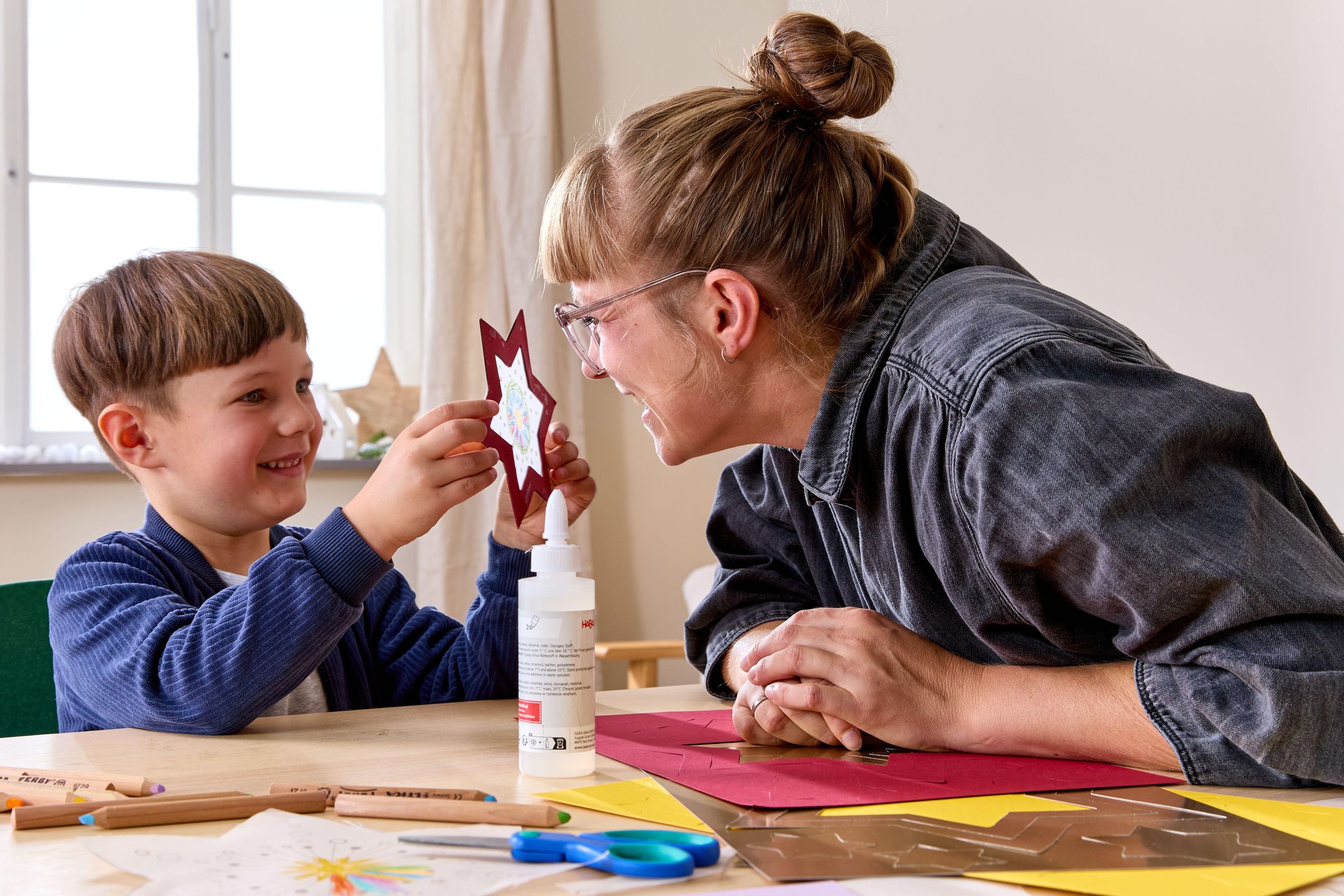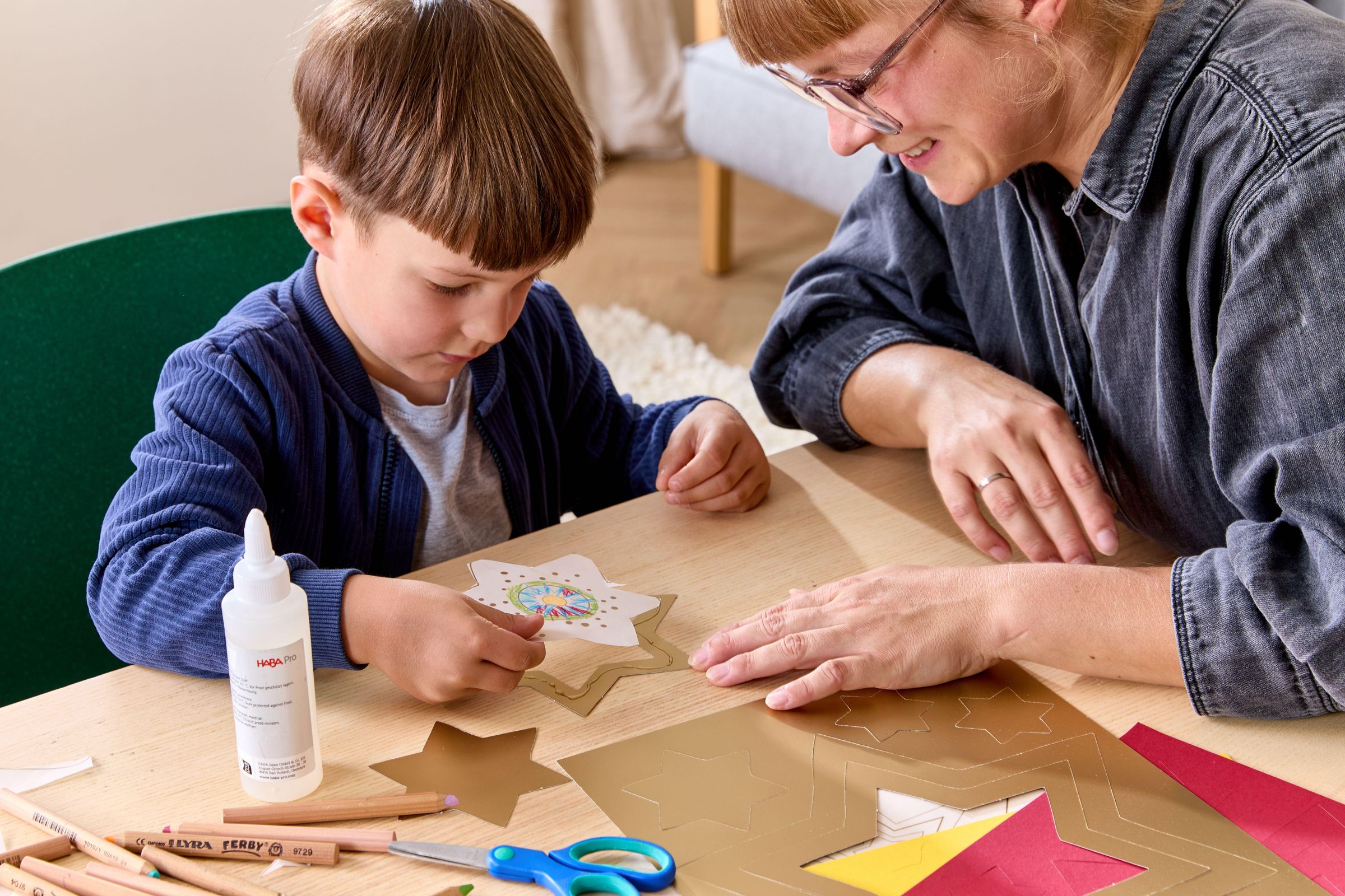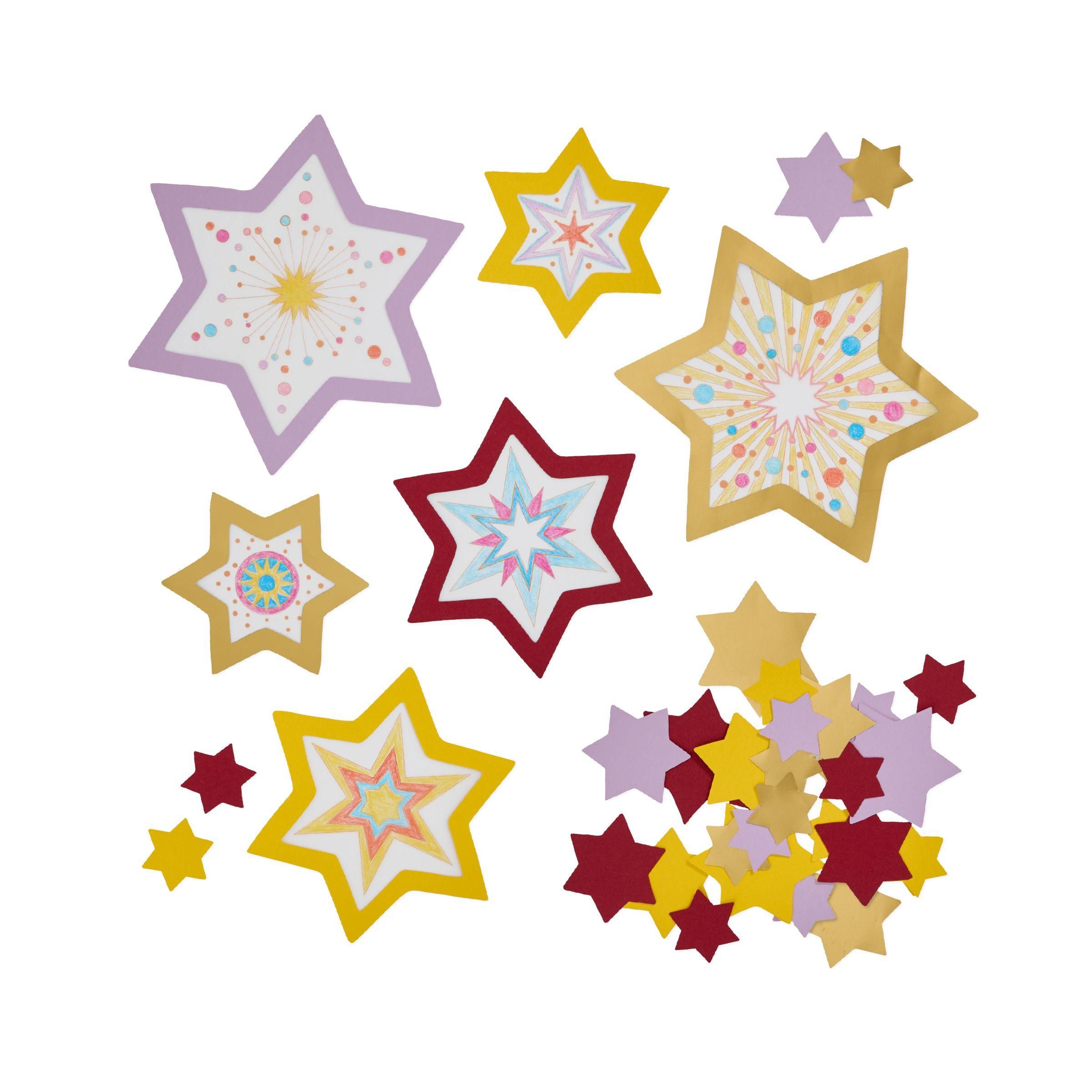 Lass es Sterne regnen! Mit diesem Bastelset entsteht ein traumhaftes Fensterbild voller funkelnder Sterne - ideal als schöne Deko für Fenster oder Wände. Die vorgestanzten Stern-Motive werden einfach mit Transparentpapier zusammengeklebt und können nach Belieben bemalt und verziert werden. So entsteht im Handumdrehen eine zauberhafte Fenster- oder Wanddekoration, die besonders in der Advents- und Weihnachtszeit für stimmungsvolle Akzente sorgt.