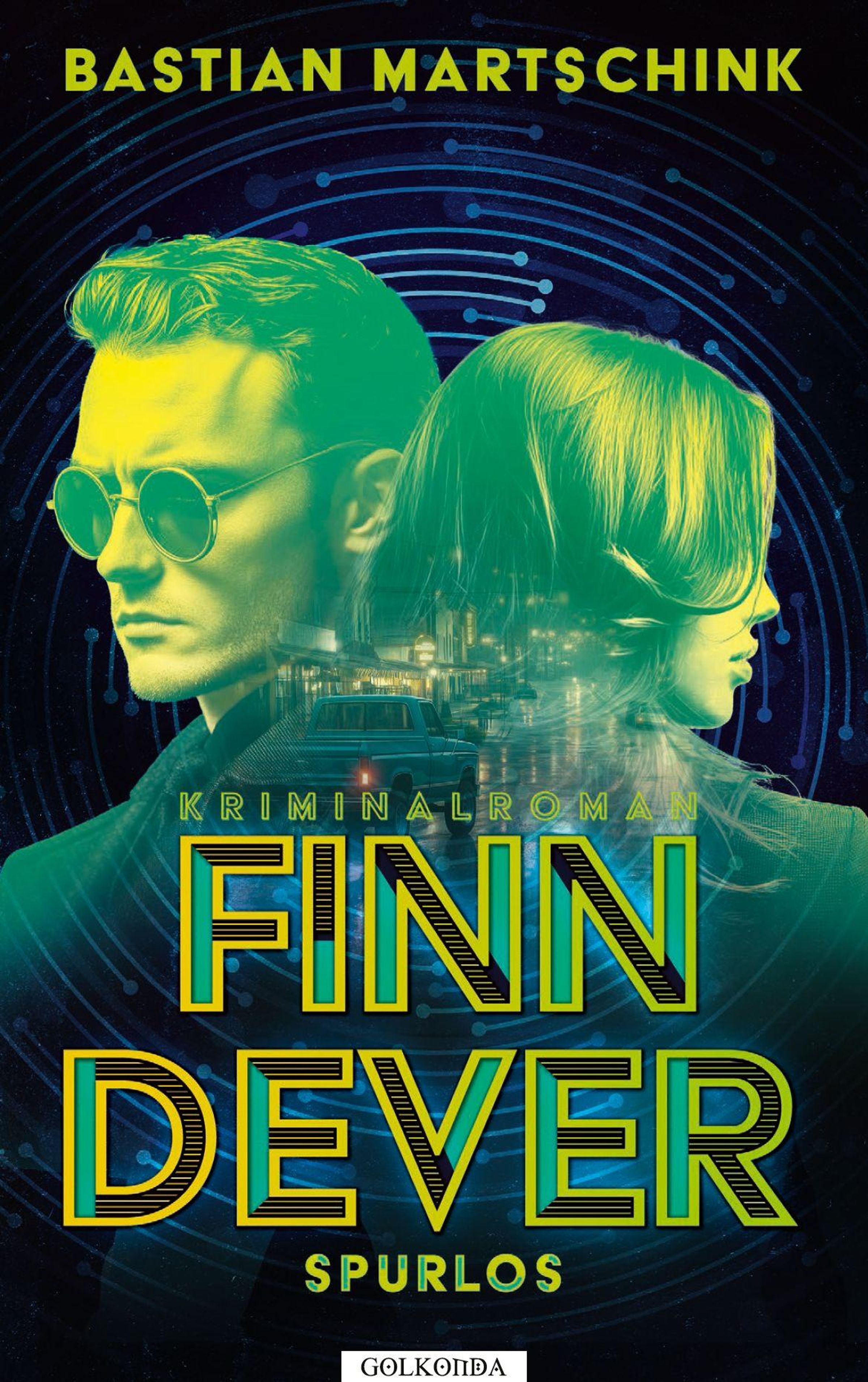 Titel: "Kriminalroman Finn Dever Spurlos" von Bastian Martschnik. Illustration einer Person von hinten., Buch