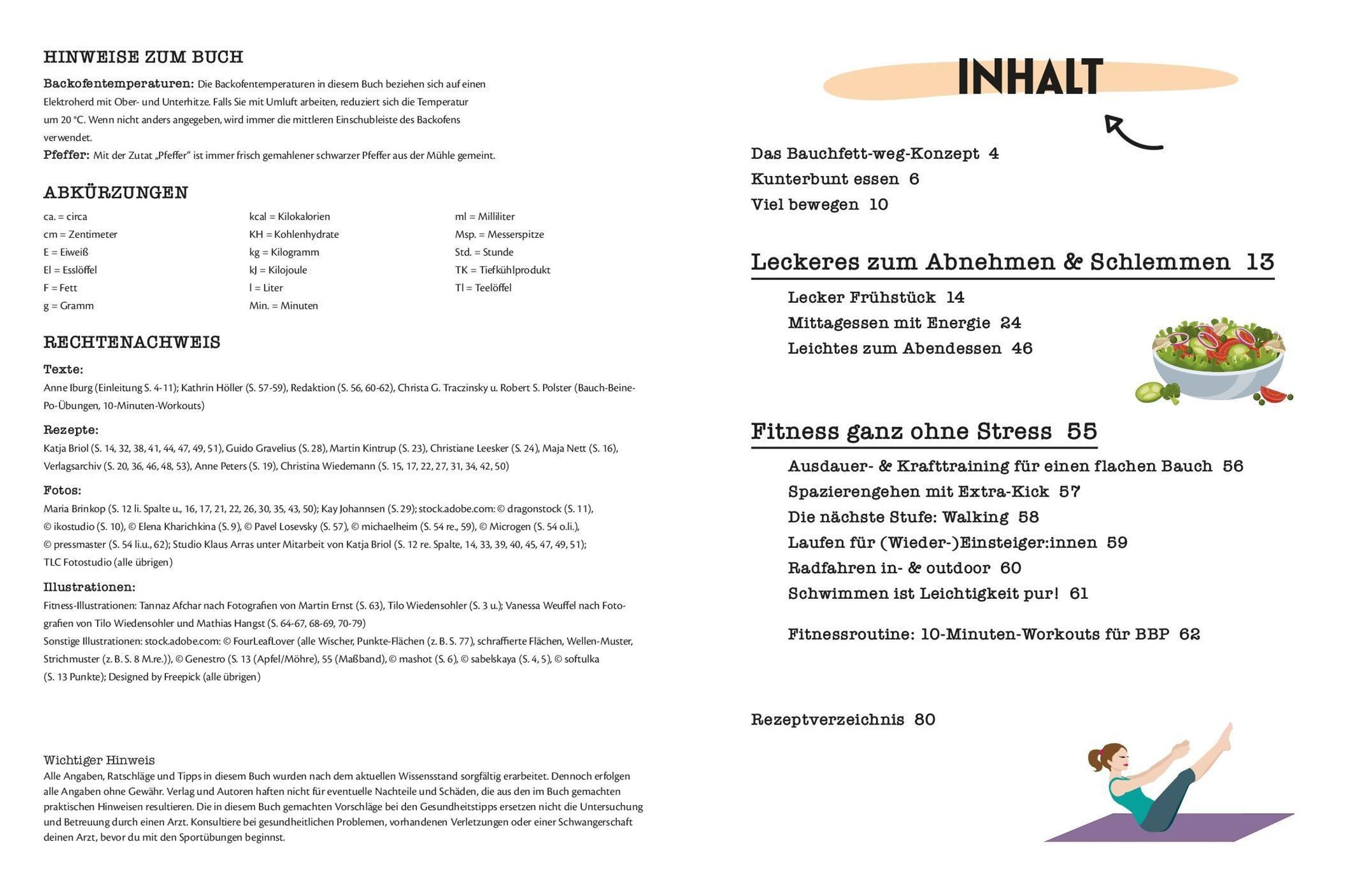 Bauchfett weg -- Das Konzept: Schlank ohne Stress mit Rezepten, Ernährungstipps und einfachen Fitnessübungen