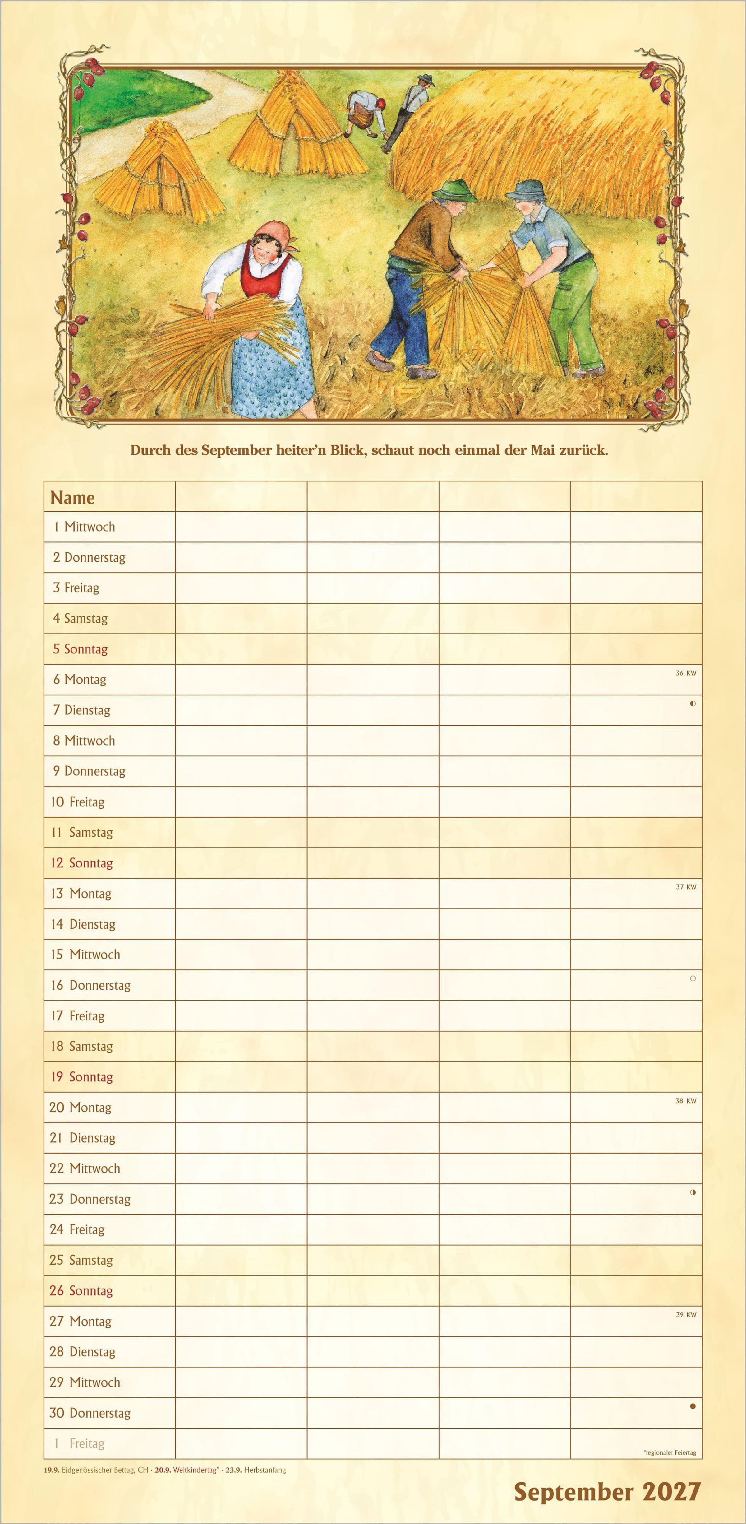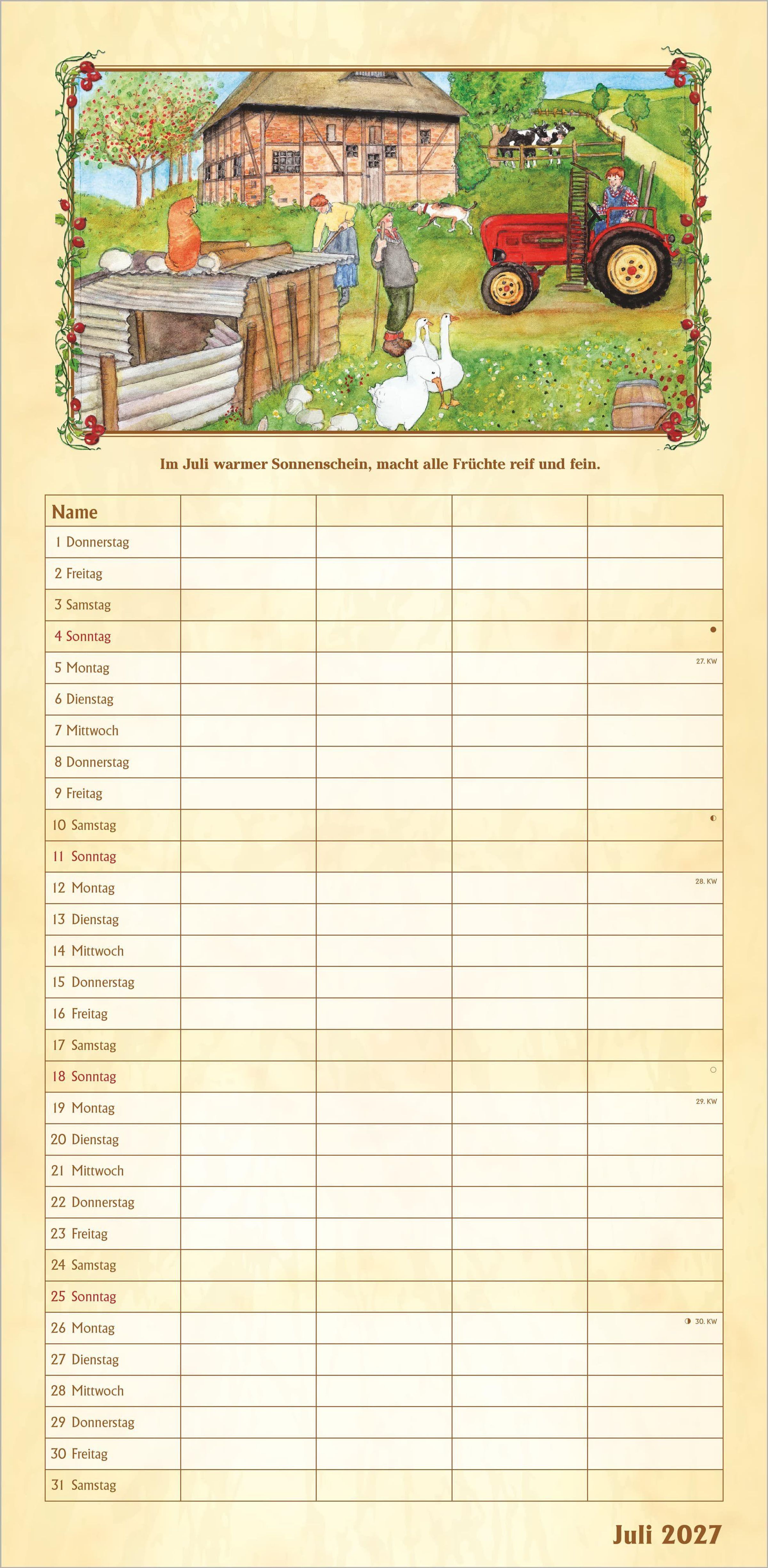 Bauernkalender Familienplaner 2027