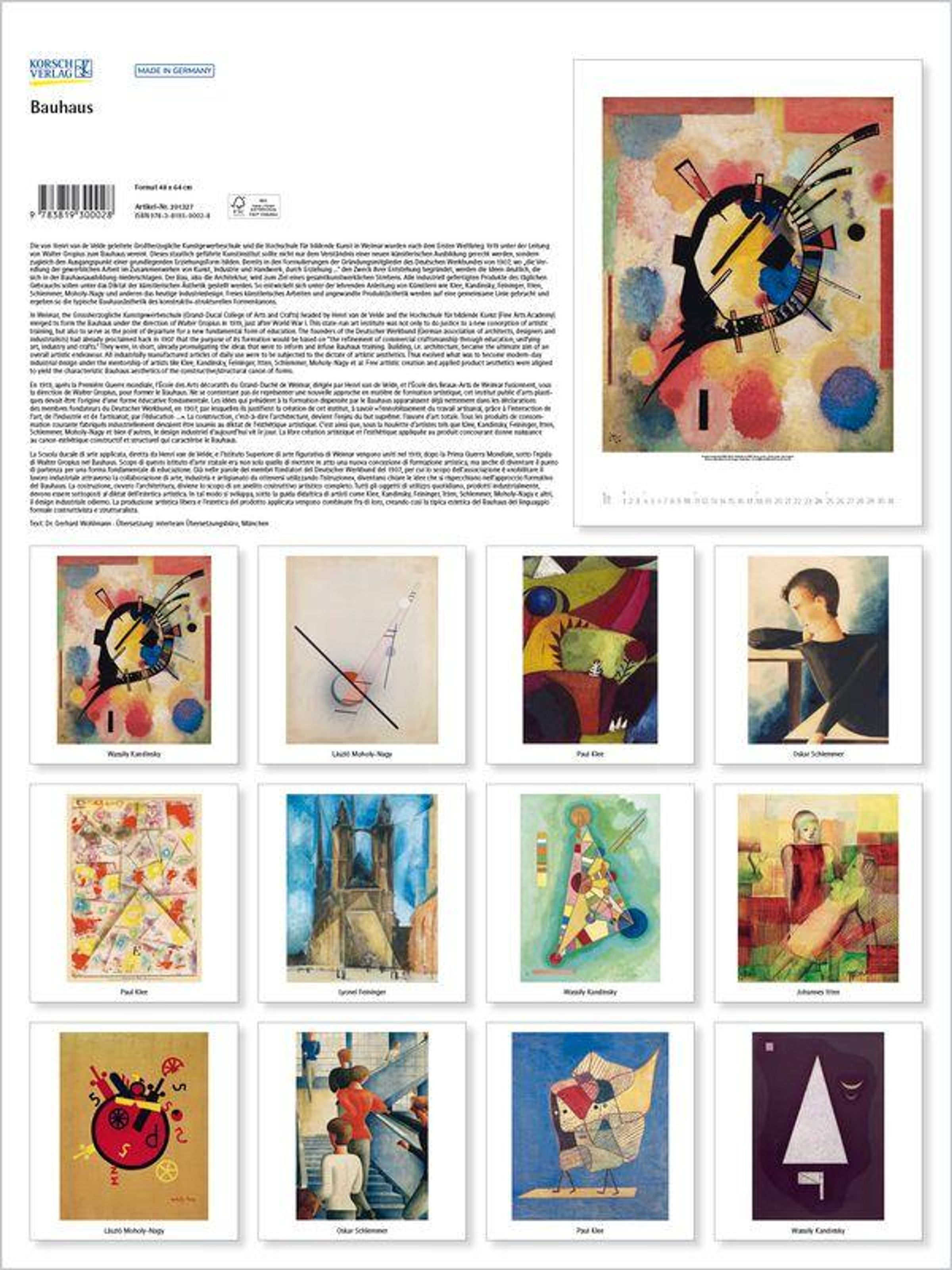 - Großer Kunstkalender. Hochwertiger Wandkalender mit Meisterwerken des Bauhaus Stils. Kunst Gallery Format: 48 x 64 cm.