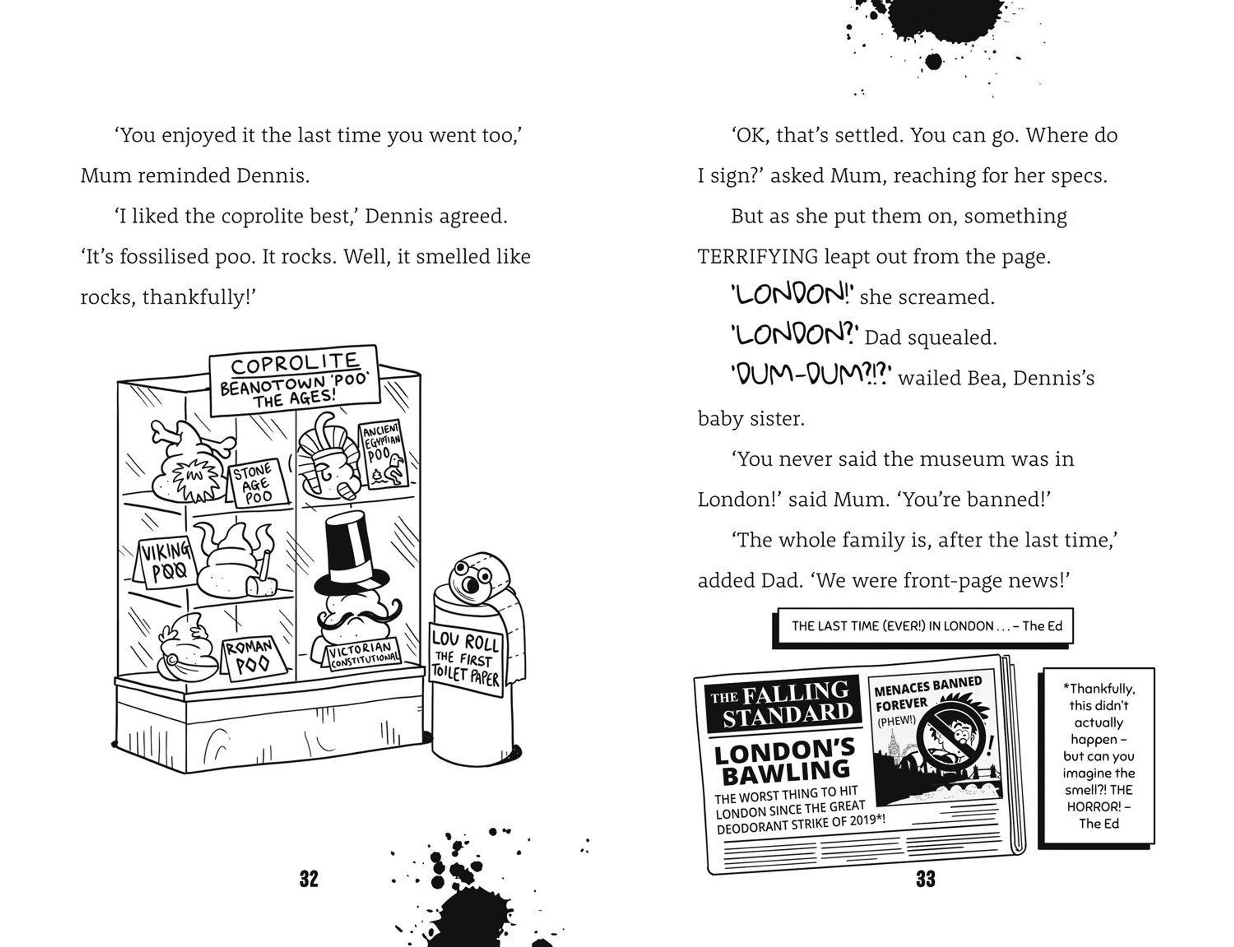 Class 3C are on a school trip to London, thanks to Rubi winning an award for her science project. However, it's not long after arriving that pieces of dinosaur skeletons start to disappear from the museum ... and who better to blame than Dennis's bone-loving companion?