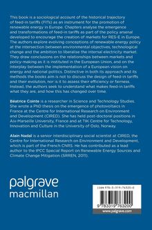 This book is a sociological account of the historical trajectory of feed-in tariffs (FITs) as an instrument for the promotion of renewable energy in Europe. Chapters analyse the emergence and transformations of feed-in tariffs as part of the policy arsenal developed to encourage the creation of markets for RES-E in Europe. The authors explore evolving conceptions of renewable energy policy at the intersection between environmental objectives, technological change and the ambition to liberalise the internal electricity market. They draw conclusions on the relationships between markets and policy-making as it is instituted in the European Union, and on the interplay between the implementation of a European vision on energy and national politics. Distinctive in both its approach and its methods the books aim is not to discuss the design of feed-in tariffs and their evolution, nor is it to assess their efficiency or fairness. Instead, the authors seek to understand what makes feed-in tariffs what they are, and how this has changed over time.