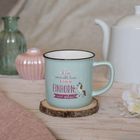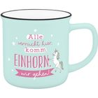 Becher in Emailloptik " Alle verrückt hier, komm Einhorn wir gehen.