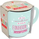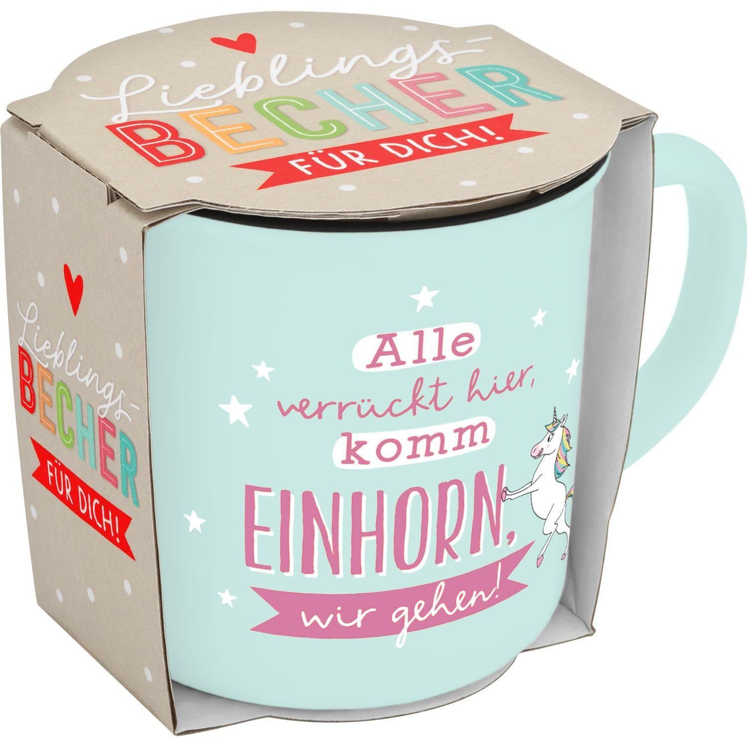 Becher in Emailloptik " Alle verrückt hier, komm Einhorn wir gehen. (Sonstige Artikel)