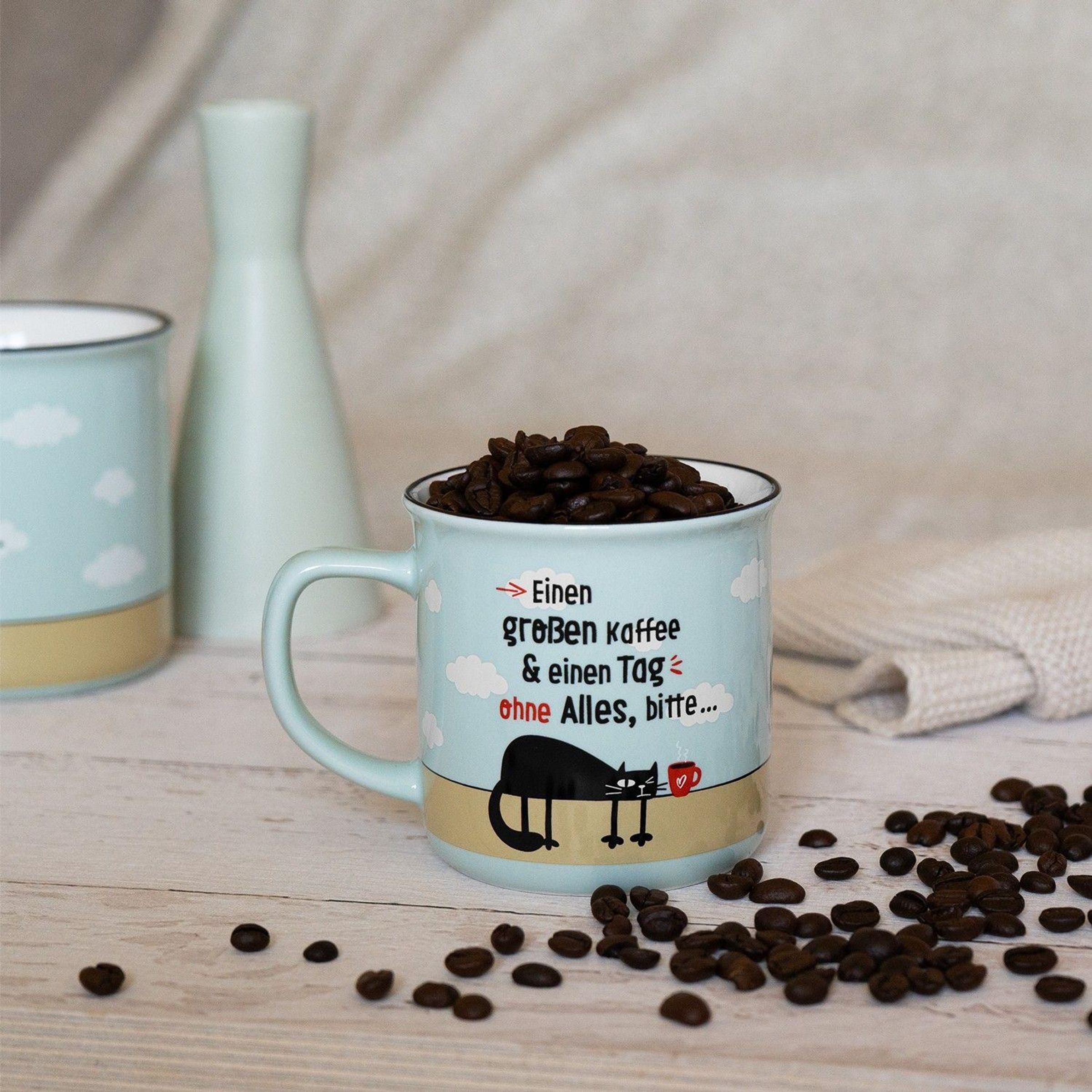 Becher in Emailloptik "Einen großen Kaffee & einen Tag ohne Alles, bitte..."