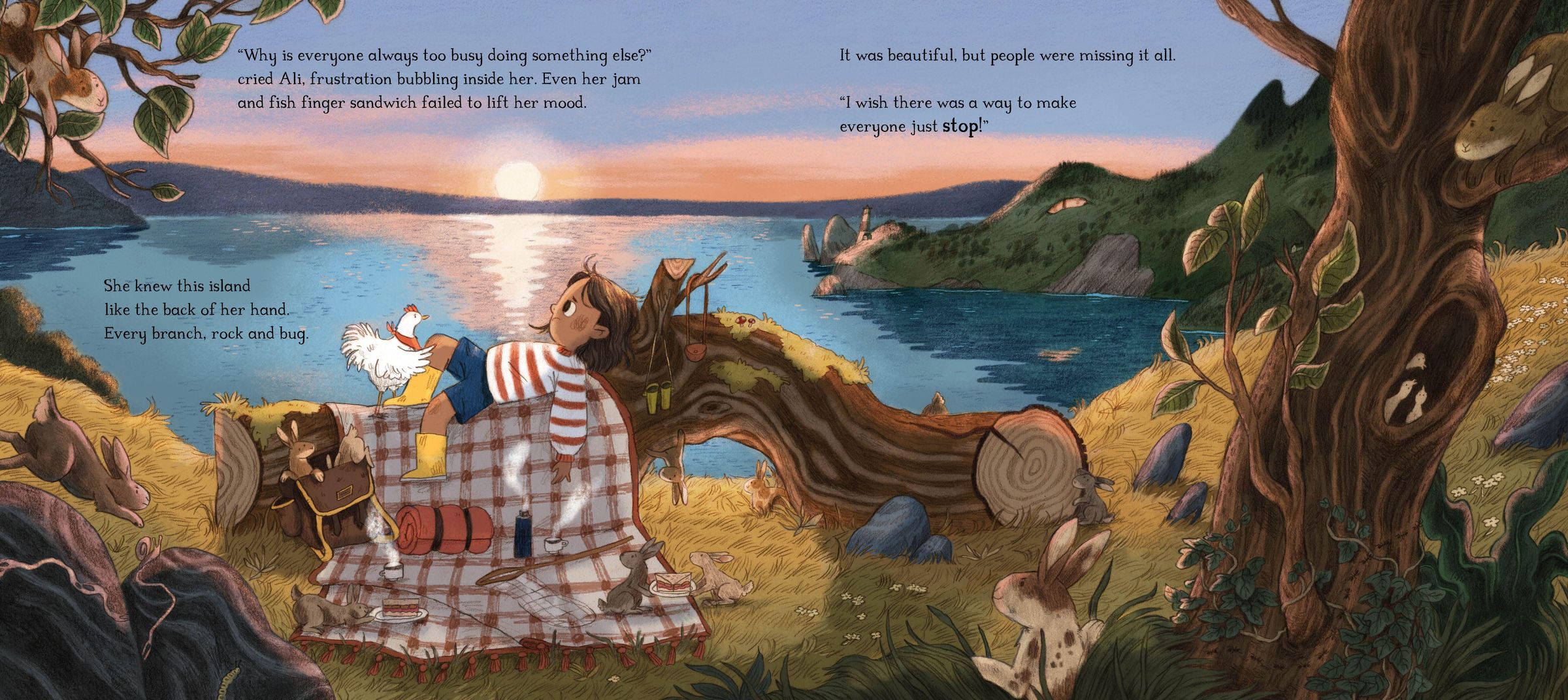 Ali lives with her Dad on a beautiful island with a busy fishing village. So busy in fact that, no matter how hard she tries, Ali can never persuade anyone to stop what they are doing and come exploring with her. That is until the morning everyone wakes to find ALL the fish have disappeared. Every. Last. One.