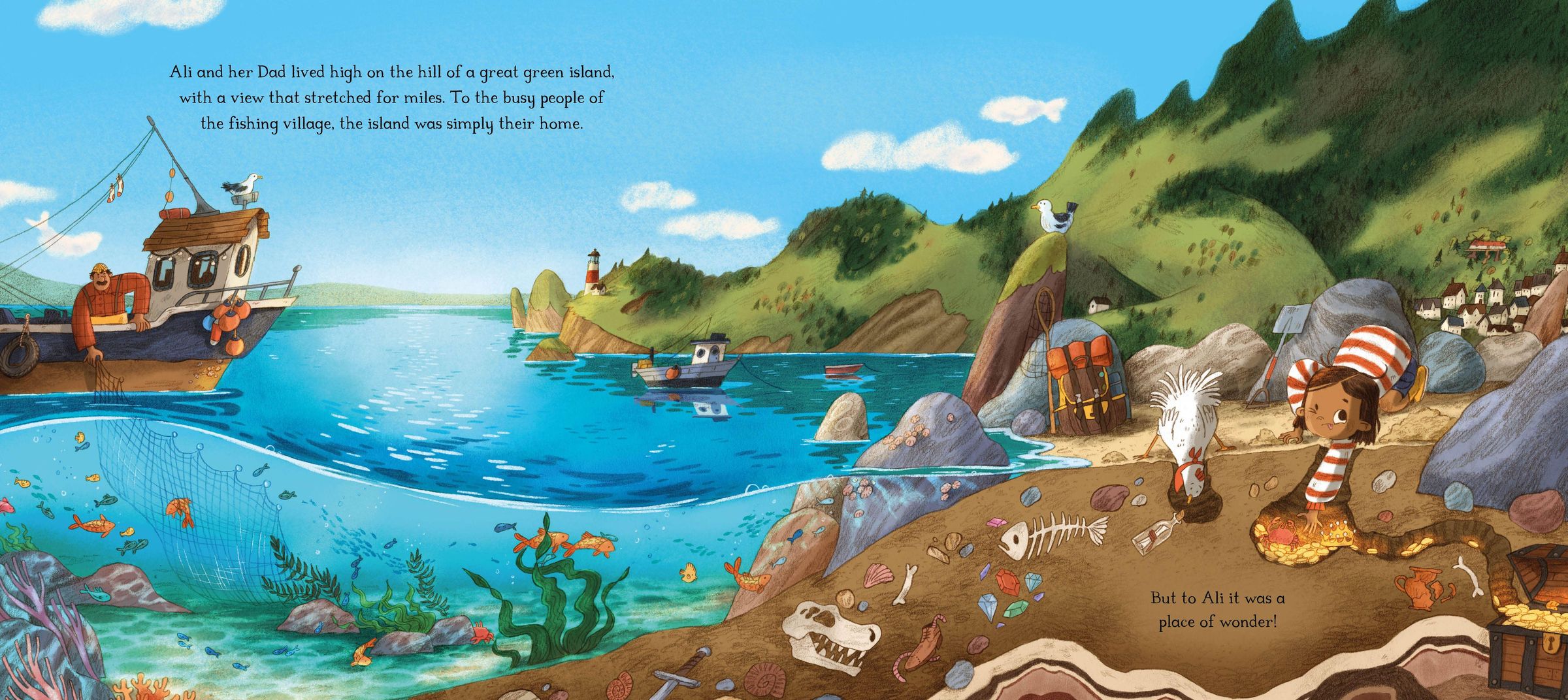 Ali lives with her Dad on a beautiful island with a busy fishing village. So busy in fact that, no matter how hard she tries, Ali can never persuade anyone to stop what they are doing and come exploring with her. That is until the morning everyone wakes to find ALL the fish have disappeared. Every. Last. One.