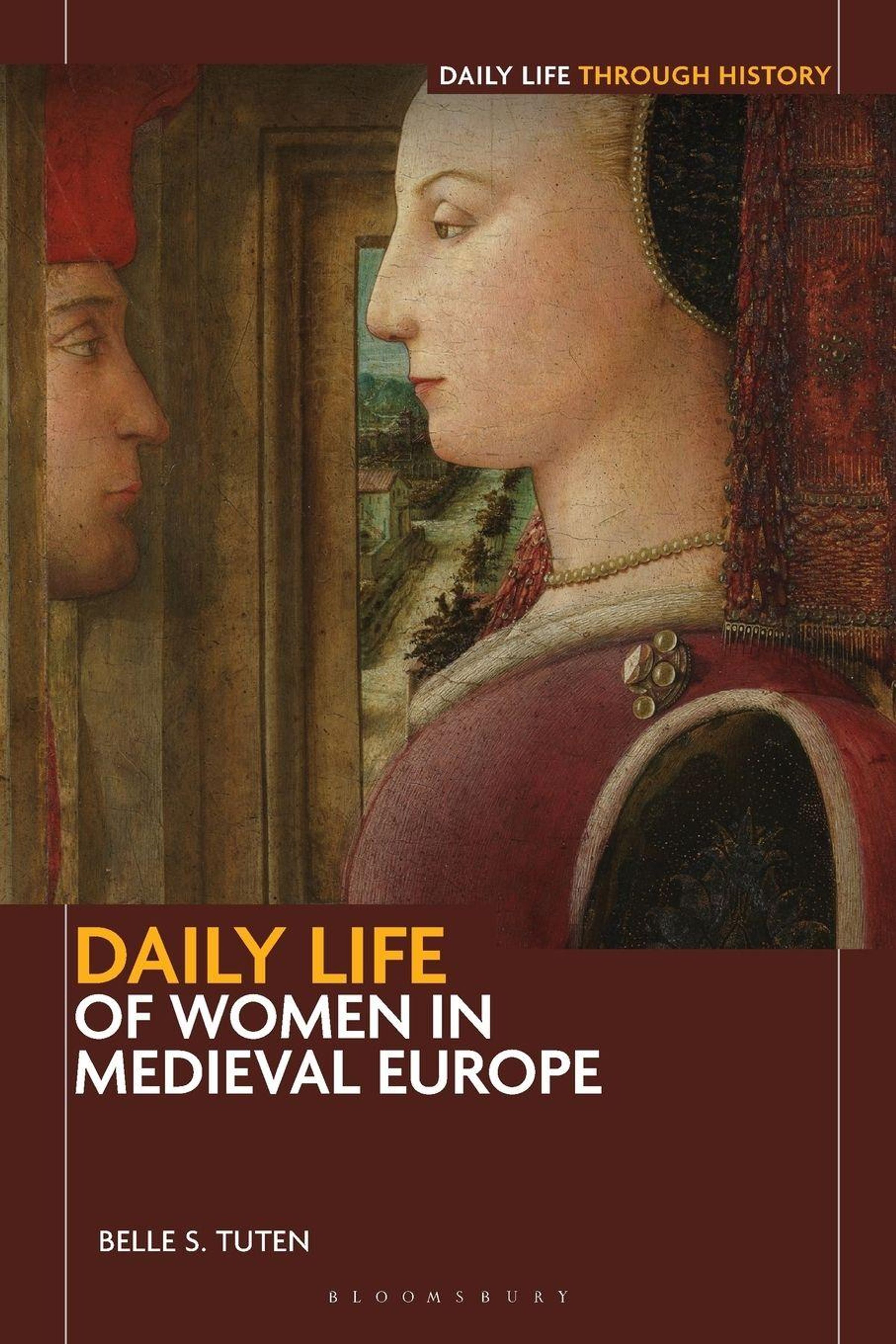Oben steht "Daily Life of Women in Medieval Europe". Darunter eine historische Illustration eines Paares im Profil., Buch