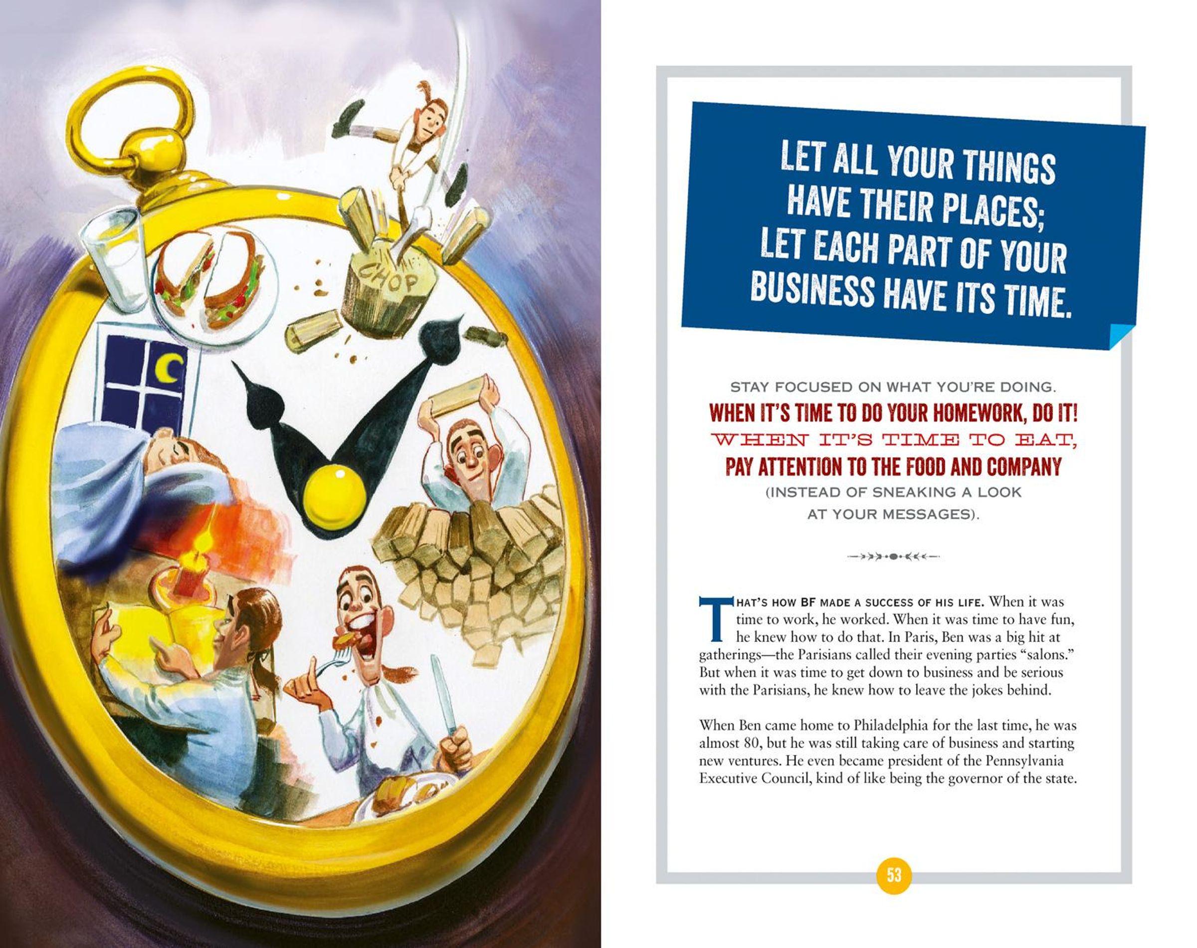 Discover history through the eyes of one of the smartest, funniest, and coolest figures from America's past. This book presents 50 of Benjamin Franklin's famous "wise words" from Poor Richard's Almanack, his personal letters, and other writings, with sage advice on everything from good citizenship and manners to friendship and being happy. Sayings are paired with hilarious illustrations and witty translations for modern audiences. It's a great go-to for inspirational and innovative ways to practice mindfulness, industriousness, and self-improvement.