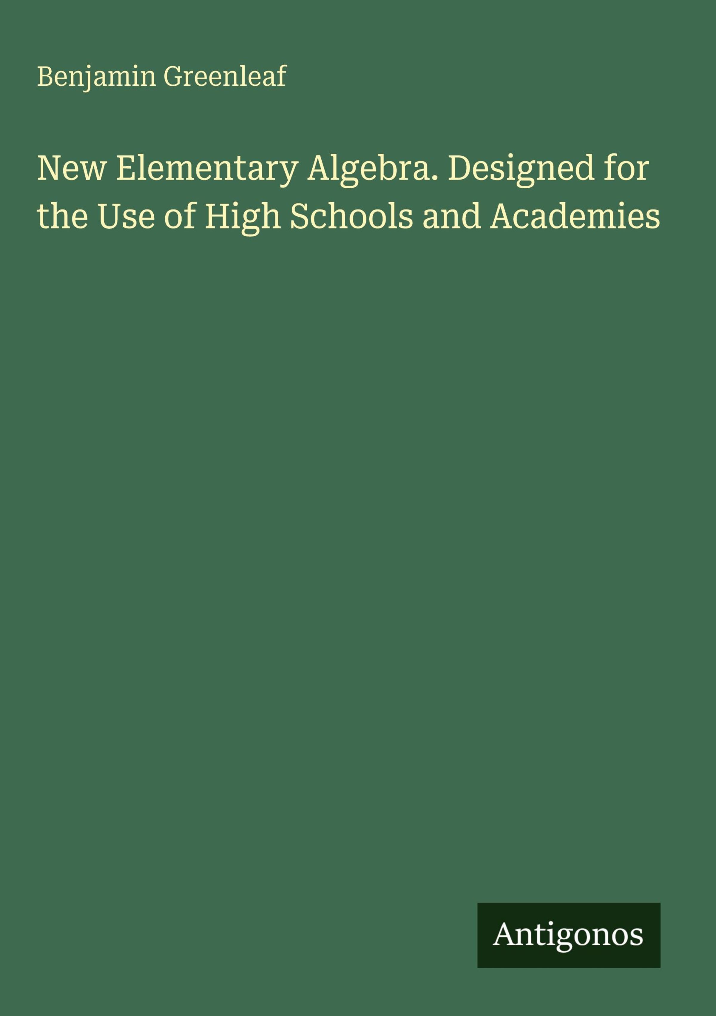 Benjamin Greenleaf: New Elementary Algebra. Designed for the Use of High Schools and Academies, Gebunden