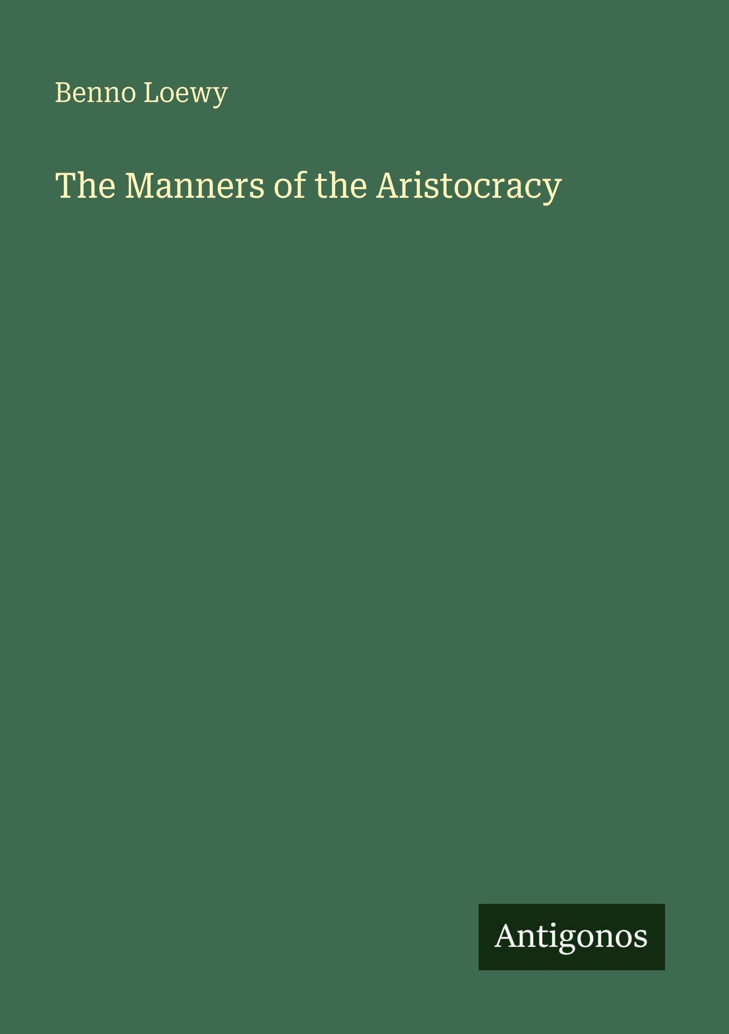 Benno Loewy: The Manners of the Aristocracy, Kartoniert / Broschiert