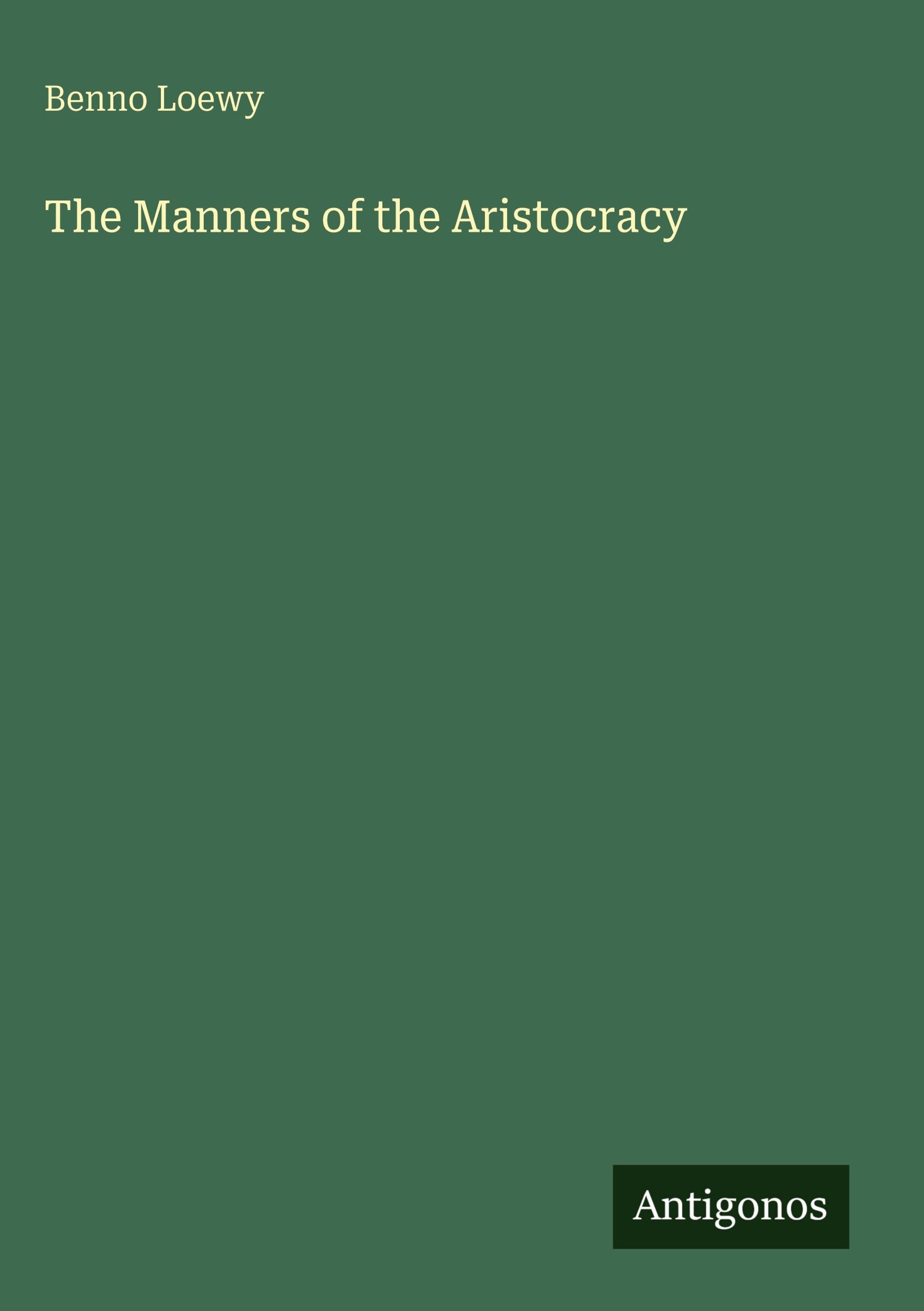Benno Loewy: The Manners of the Aristocracy, Gebunden