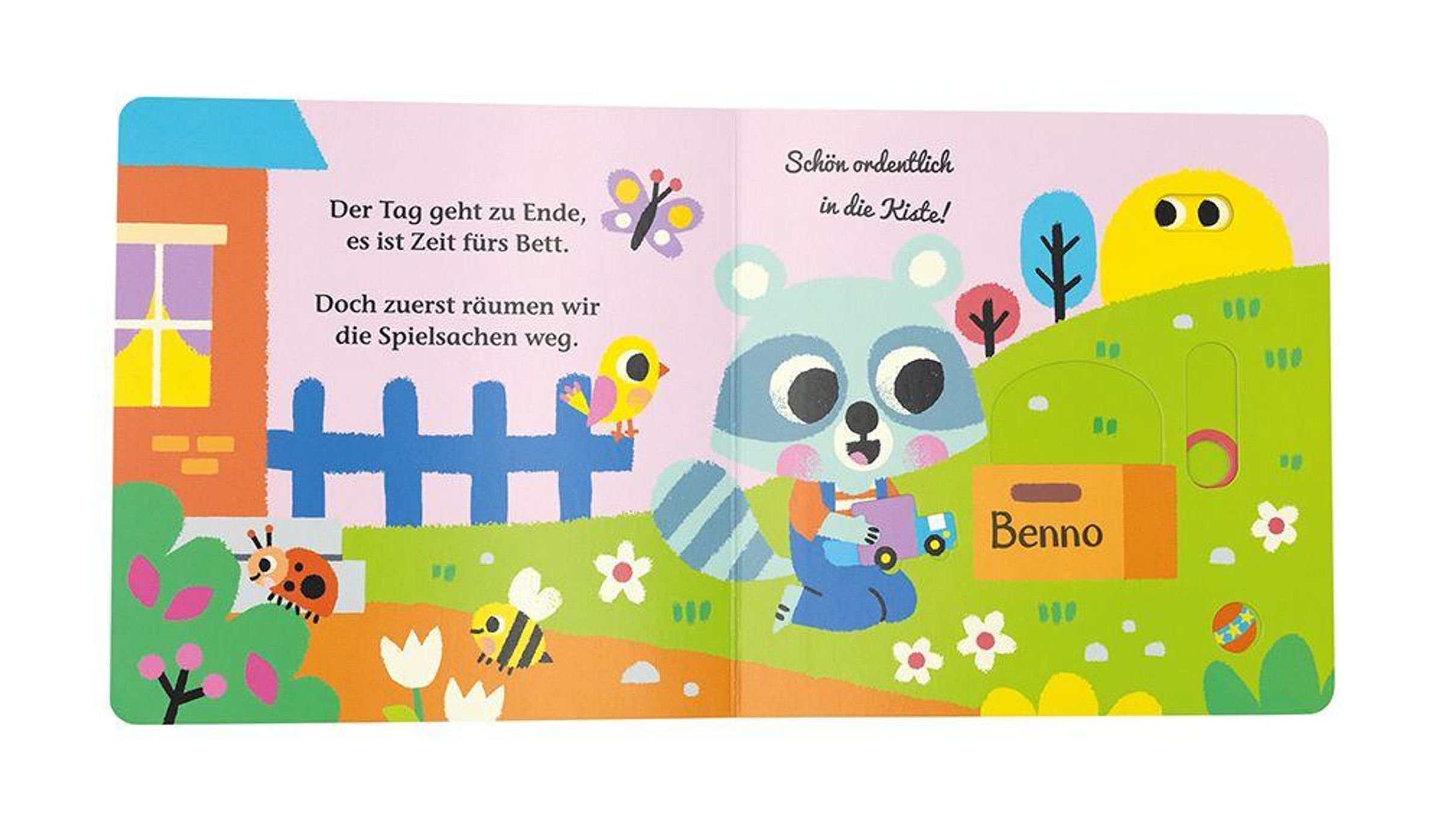 In diesem Mitmachbuch machen sich Kinder gemeinsam mit Benno bereit fürs Bett. Mit den spannenden Schiebereglern helfen sie ihm beim Aufräumen, Zähneputzen und vielem mehr.