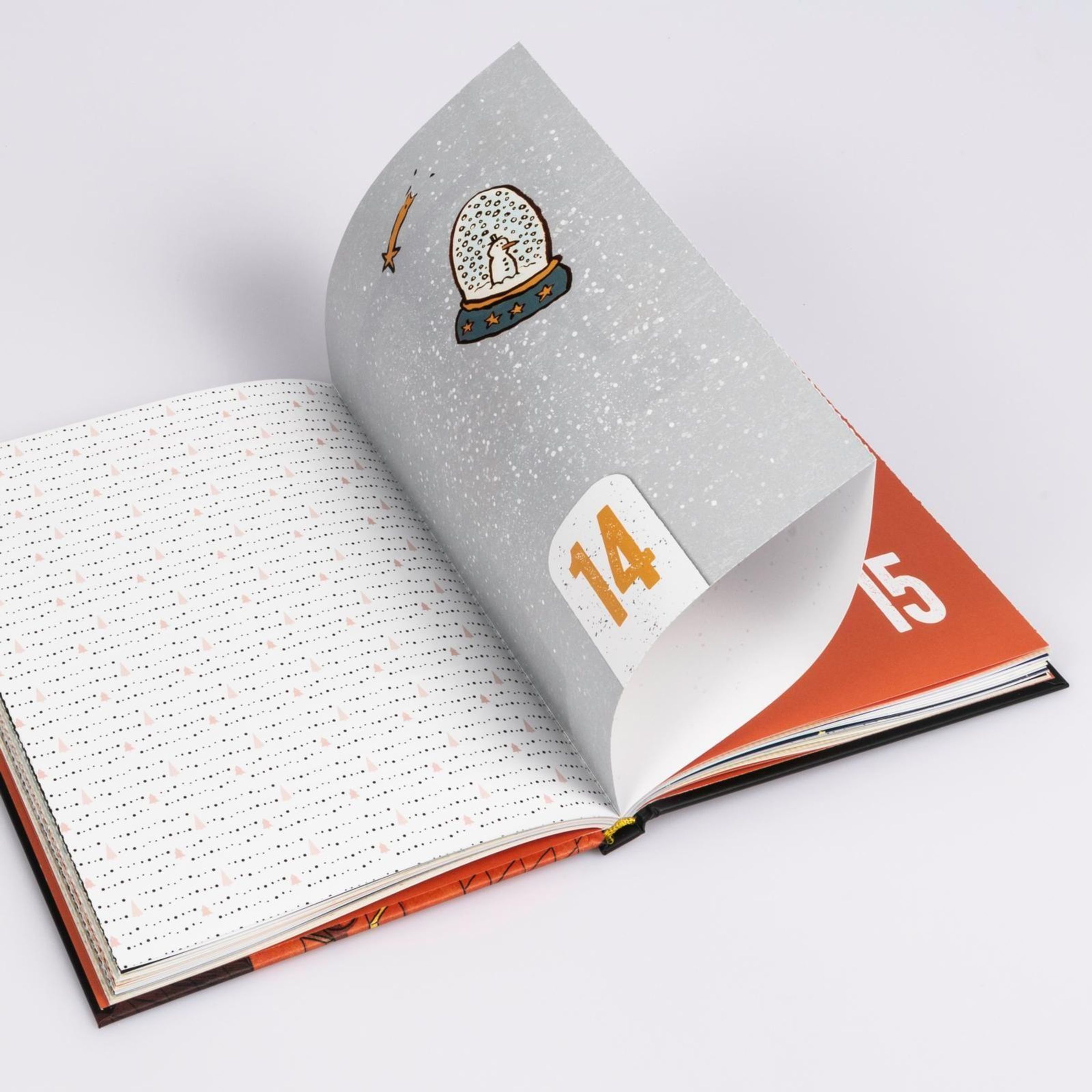 Adventskalender in Buchform mit 24 Doppelseiten zum Auftrennen (perforiert, keine Schere notwendig).