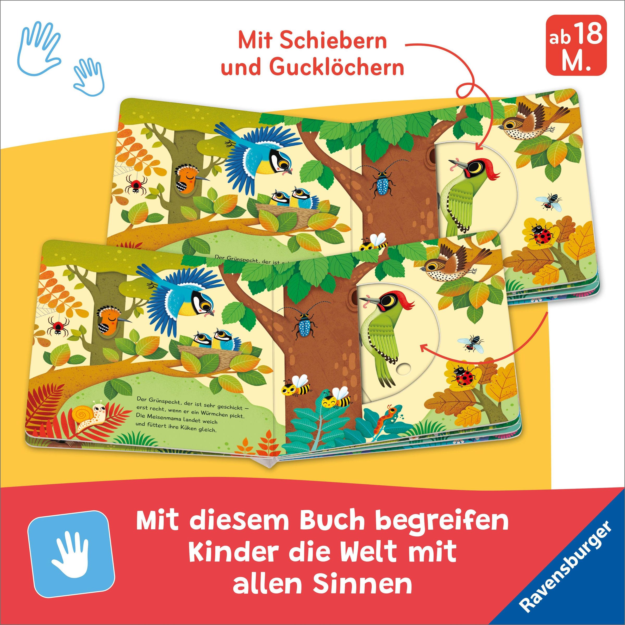 Der Specht pickt nach Insekten. Das Häschen hoppelt aus seinem Versteck und die Eule fliegt von Baum zu Baum. Auf jeder Seite gibt es ein großes Schiebe-Element, durch das die Tiere lebendig werden. Mach mit und hilf dem Biber, ins Wasser zu hüpfen oder verstecke den Igel im Blätterhaufen. Der gereimte Text animiert zum Spielen mit den Schiebern. Die farbenfrohen Illustrationen zeigen spannende Szenen, in denen es viel zu entdecken gibt.