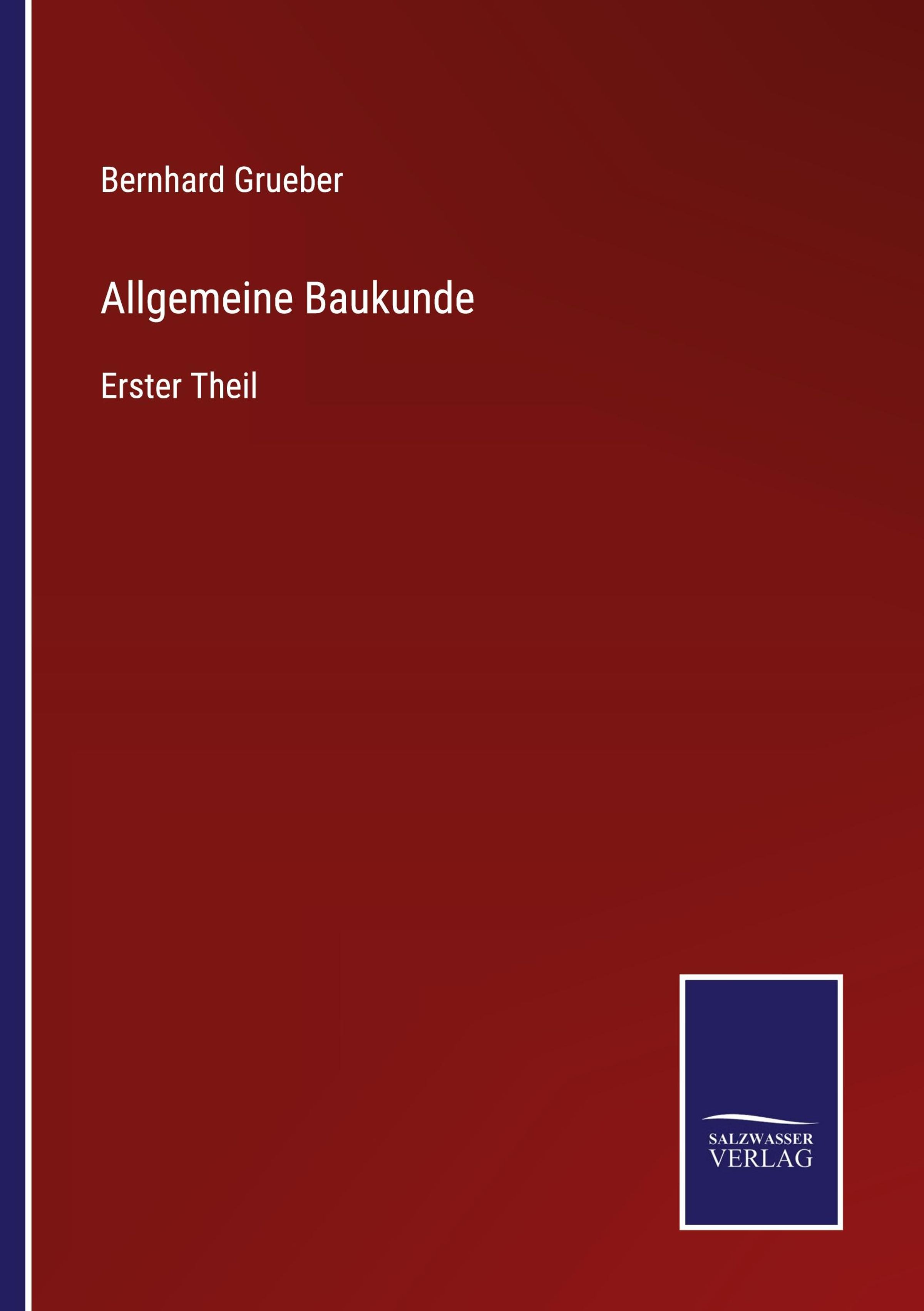 "Baukunstbuch von Grüber: Titel 'Allgemeine Baukunde - Erster Theil'; schlichter roter Hintergrund.", Buch