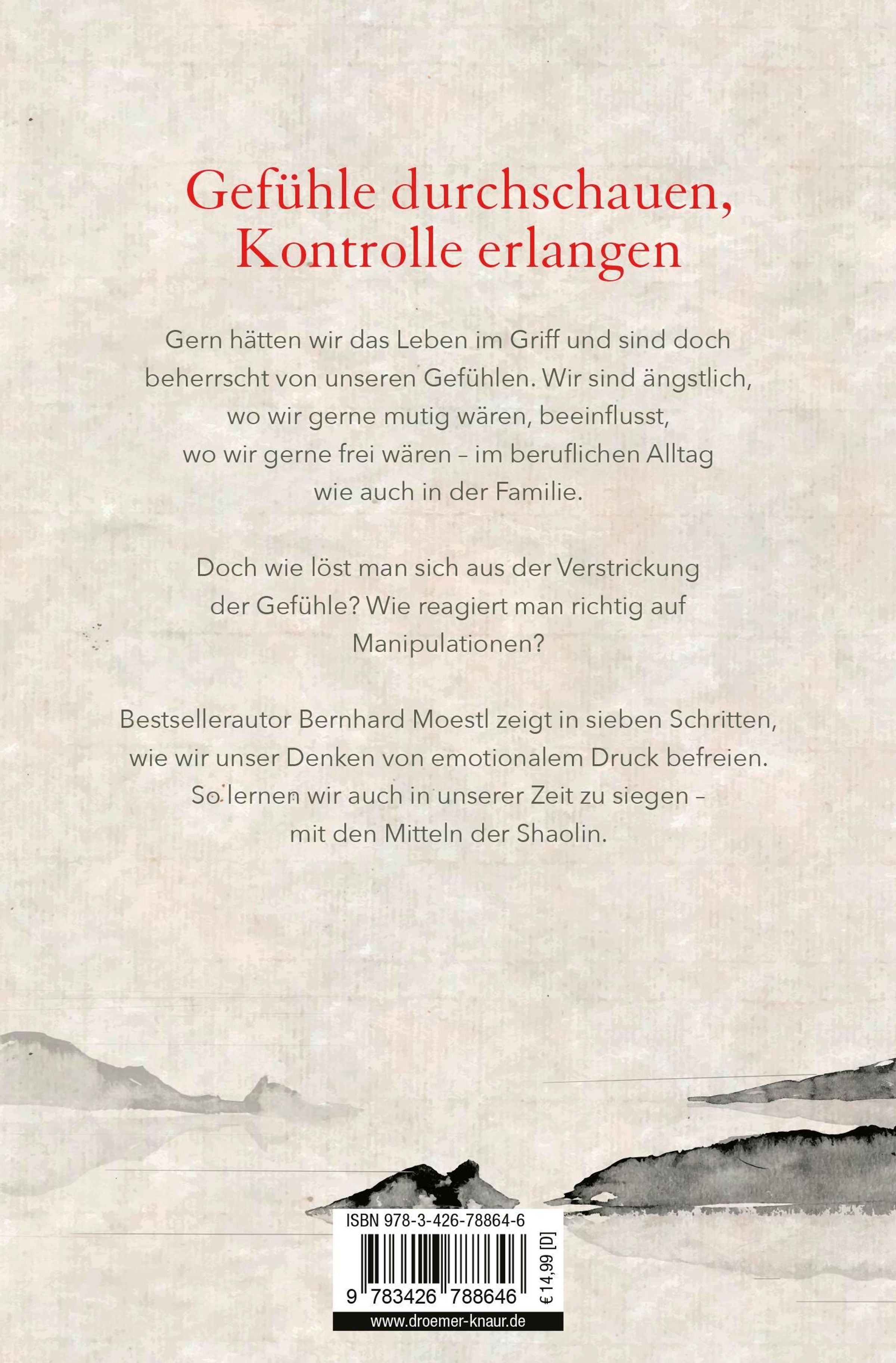 Anhand von sieben Schritten weist Bernhard Moestl in seinem Erfolgsbuch "Denken wie ein Shaolin" all jenen einen Weg zu emotionaler Selbstbestimmung, die gern Kontrolle über ihr Leben hätten, die Gefühle wie Angst oder Frust aus ihrem Alltag verbannen möchten und darüber hinaus emotionale Manipulationen erkennen und angemessen reagieren wollen.