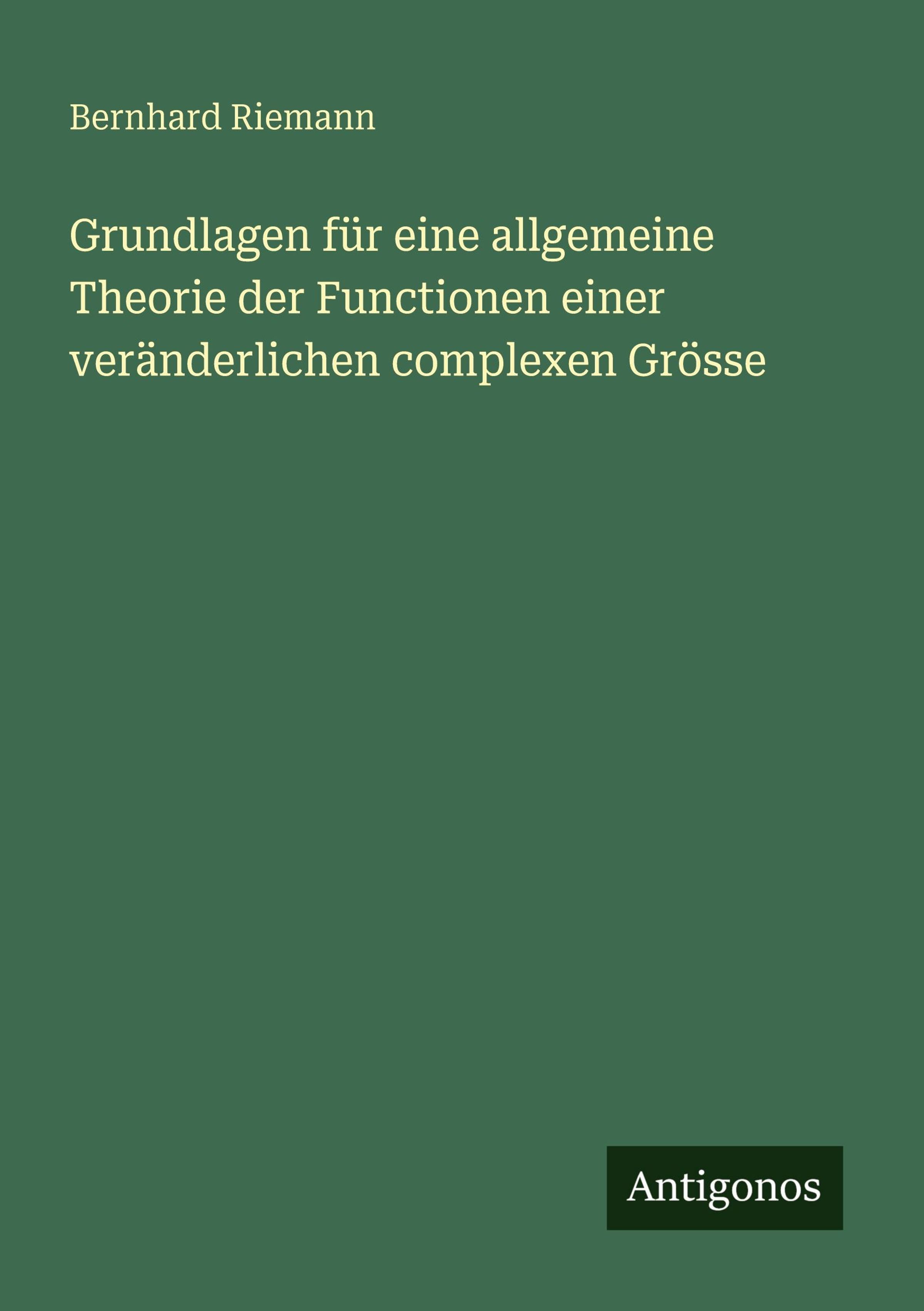 Weitere Ausgaben von Grundlagen für eine allgemeine Theorie der Functionen einer veränderlichen complexen Grösse |
