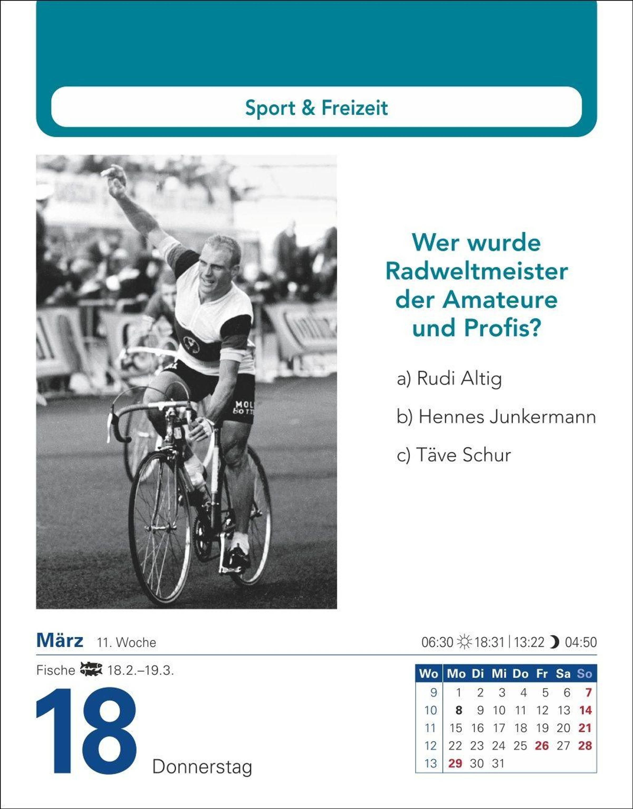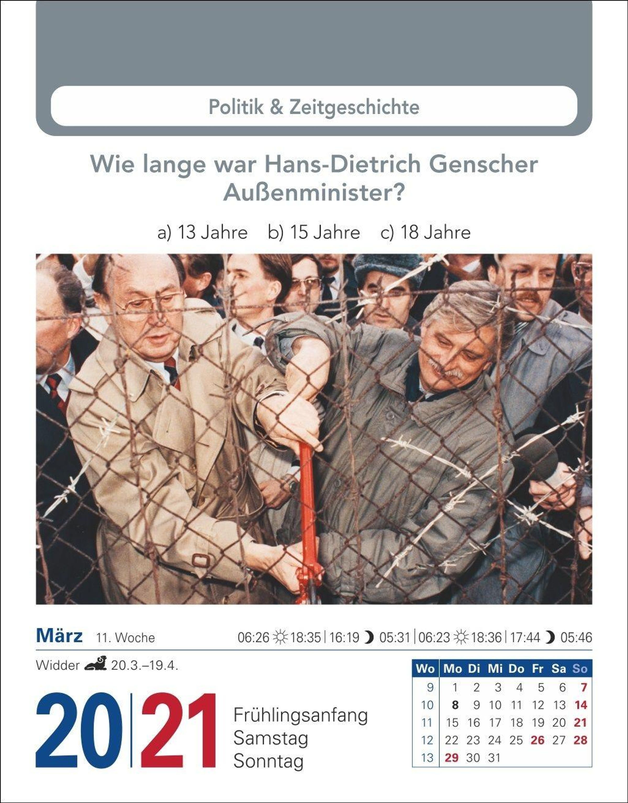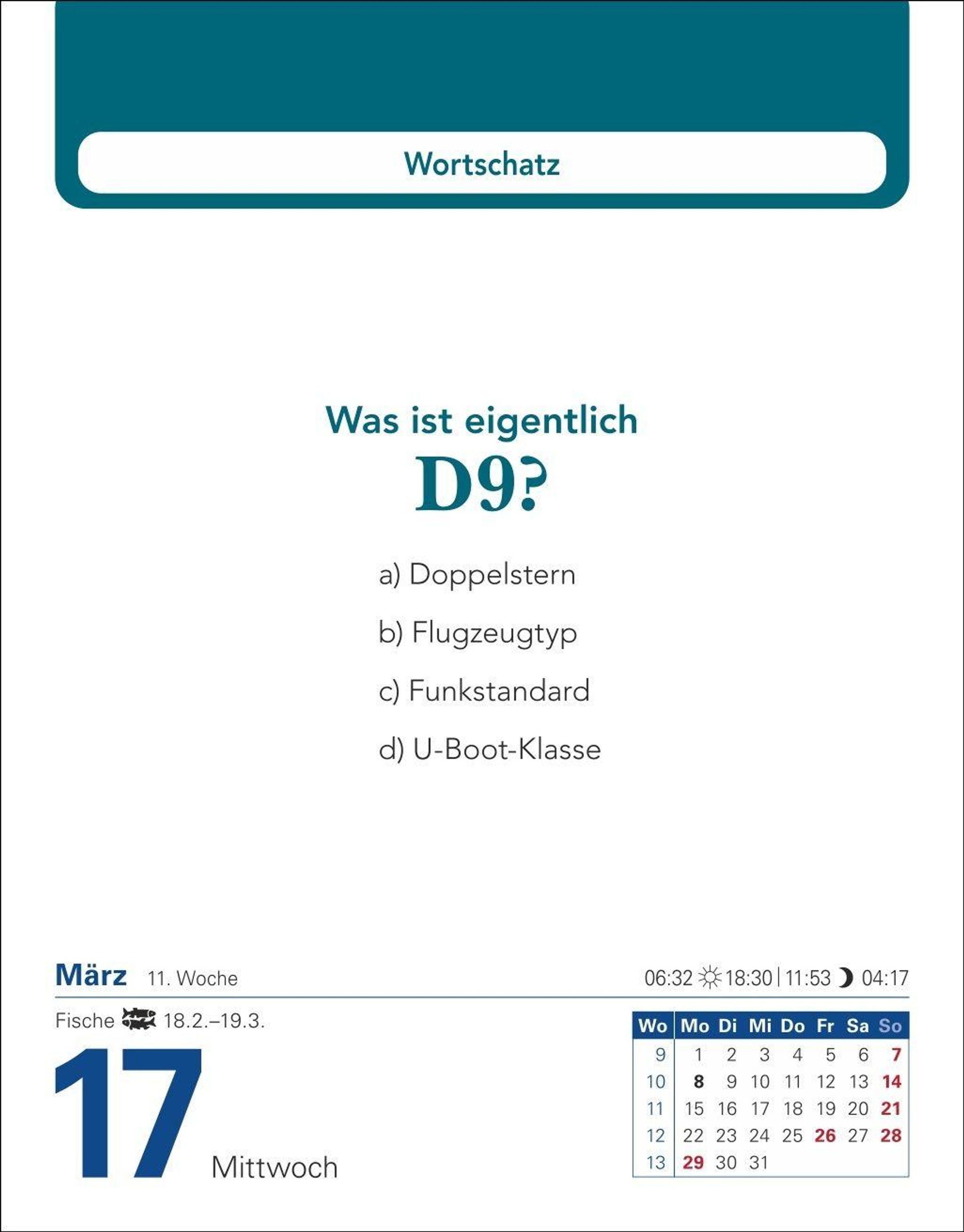 Tagtäglich neuen Fakten auf die Spur kommen: Tischkalender mit über 300 Quizfragen aus den breiten Themenbereichen Politik und Zeitgeschichte, Gesellschaft, Wissenschaft, Kultur, Sport und Freizeit