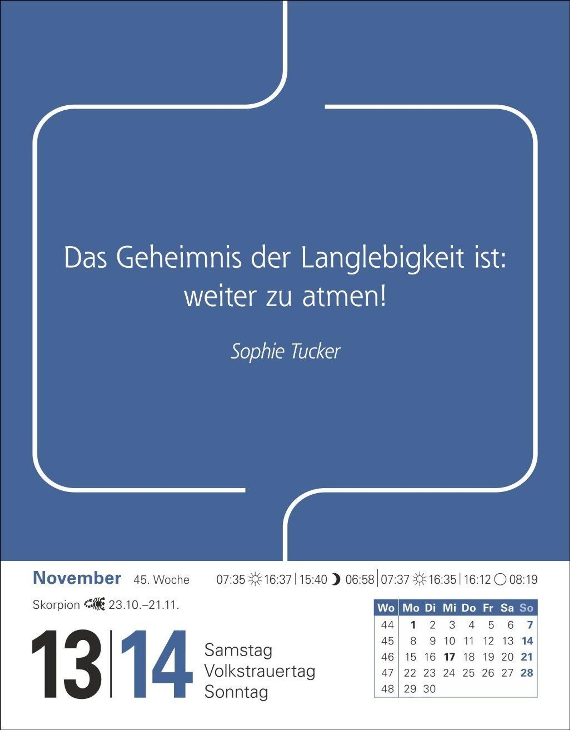 Von Heinrich Heine bis Torsten Sträter, von Agatha Christie bis Cate Blanchett: Tischkalender mit humorvollen Weisheiten und geistreichen Zitaten aus allen Epochen der Weltgeschichte