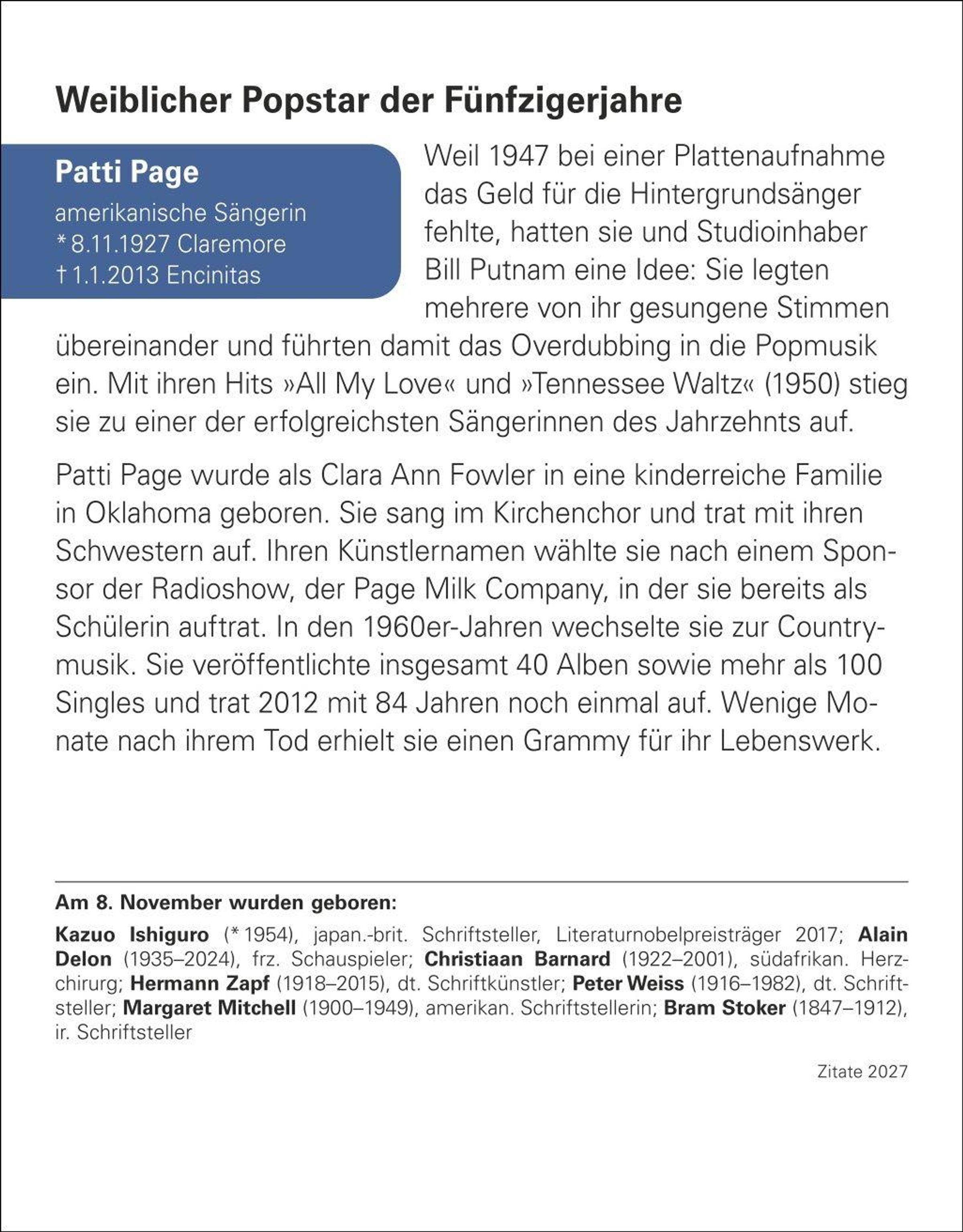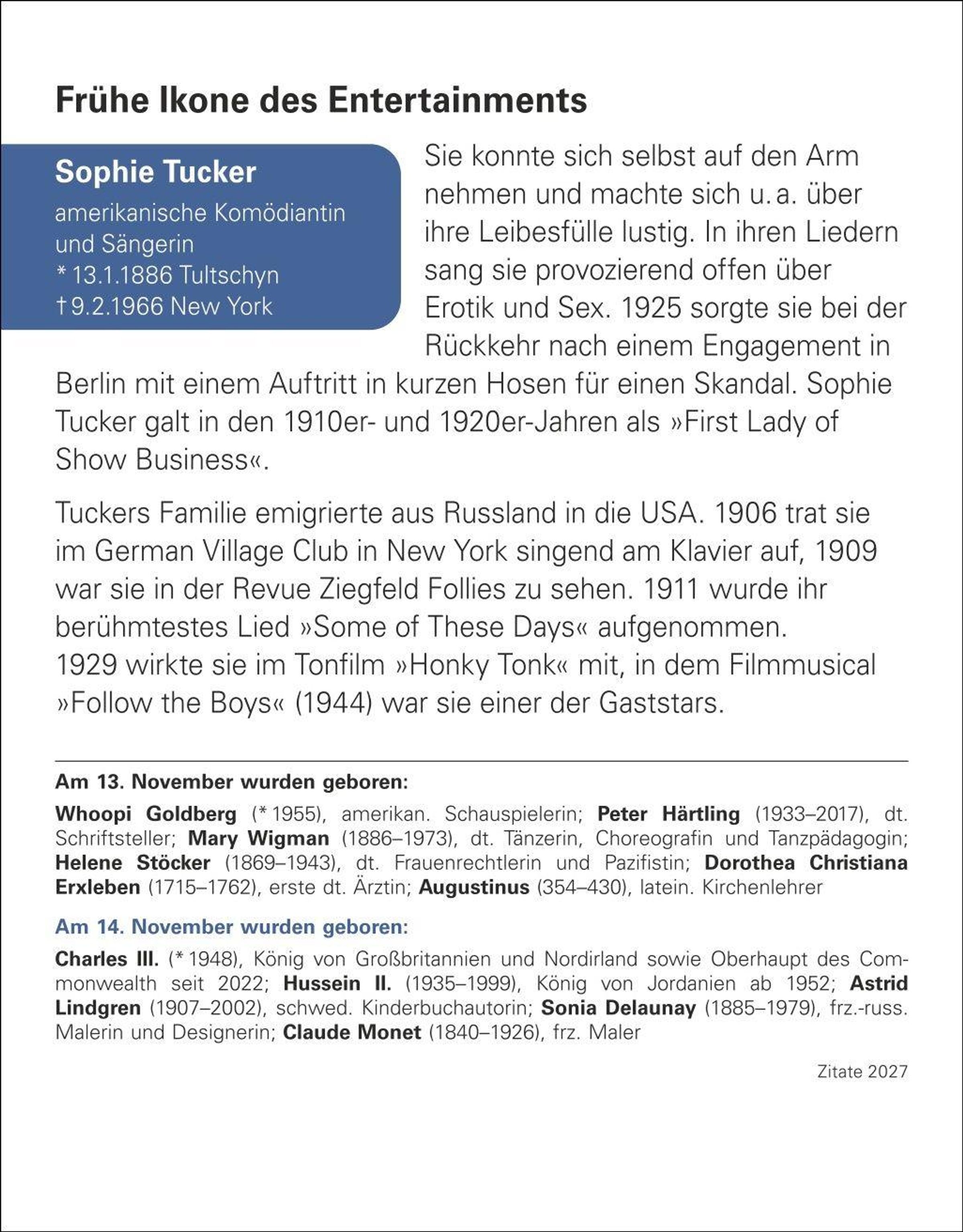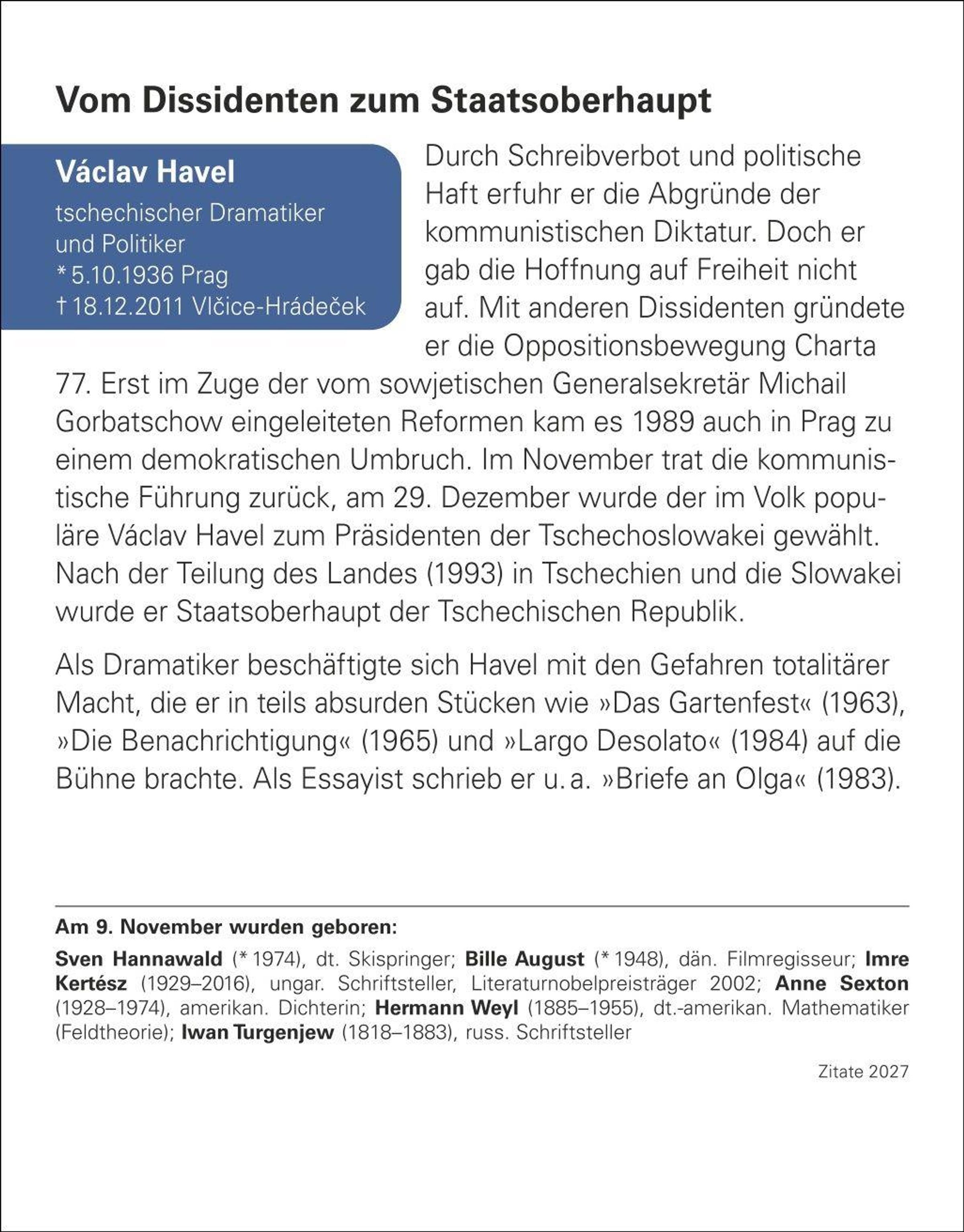 - Kalender zum Aufstellen mit Zitaten und Kurzbiografien berühmter Persönlichkeiten. Tages-Tischkalender 2027 mit klugen Lebenssprüchen