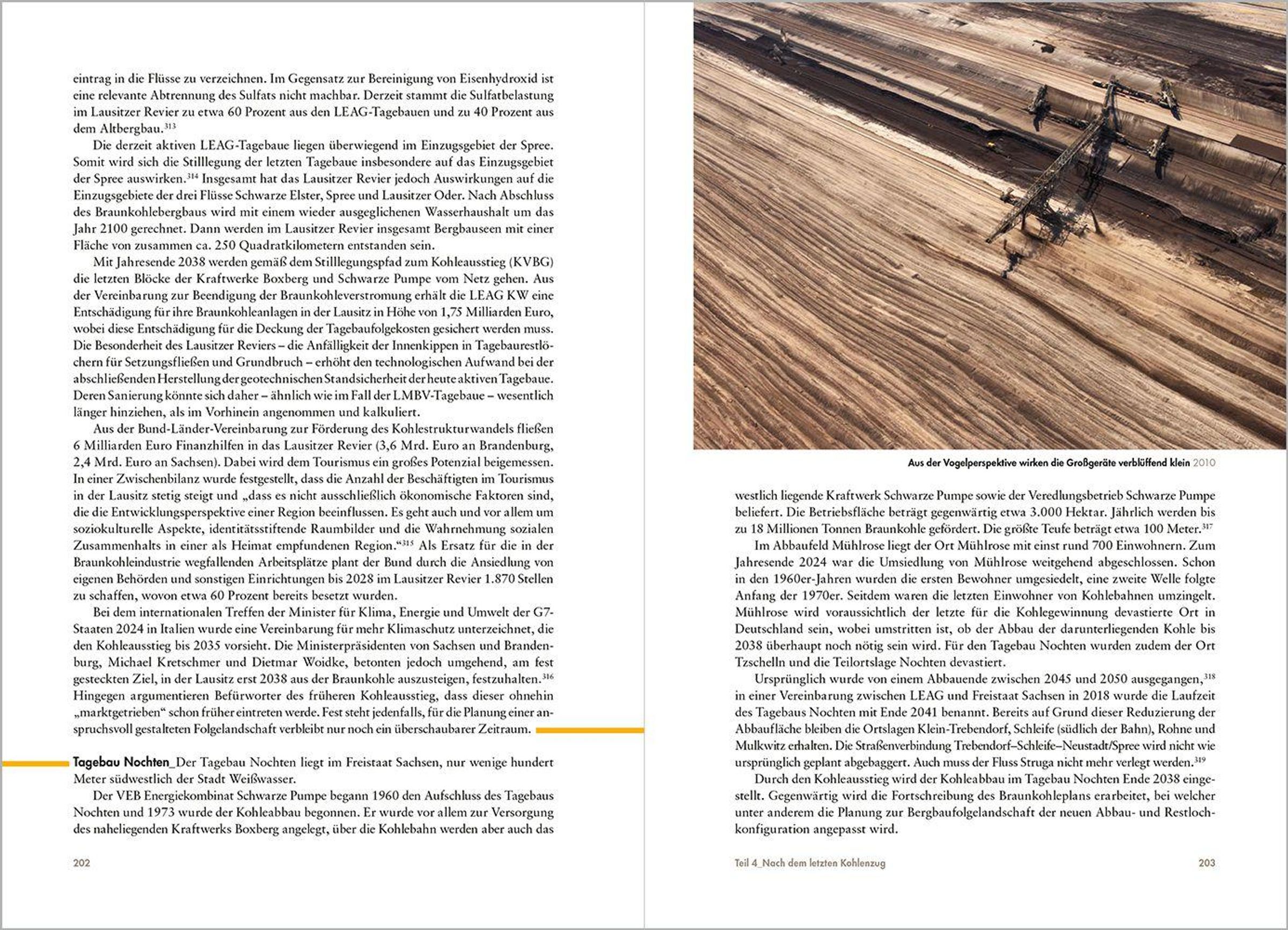 Das Ende des Braunkohlebergbaus in Deutschland konfrontiert mit schwierigen ökologischen Fragen, beispielsweise wie der Wasserhaushalt wieder in Ordnung gebracht werden kann. Zugleich bietet sich letztmalig die Chance, die riesigen Tagebaue in unverwechselbare Landschaften zu verwandeln - eben in andere Landschaften, die eine Brücke in die Zukunft schlagen. Dieses Buch liefert hierzu Anregungen aus unterschiedlichen Perspektiven. So vermittelt es mittels überraschender Fotos und eindrücklicher Erzählungen die weitgehend noch unbekannte Ästhetik der Landschaften auf dem Grund der Tagebaue. Ein Überblick zum Rheinischen, Mitteldeutschen und Lausitzer Braunkohlerevier zeigt gelungene Beispiele der Landschaft nach der Kohle, wobei eingetretene Katastrophen der Bergbausanierung nicht unerwähnt bleiben. Brisanz haben die im Buch behandelten Themen dabei schon lange vor dem letzten Kohlenzug.