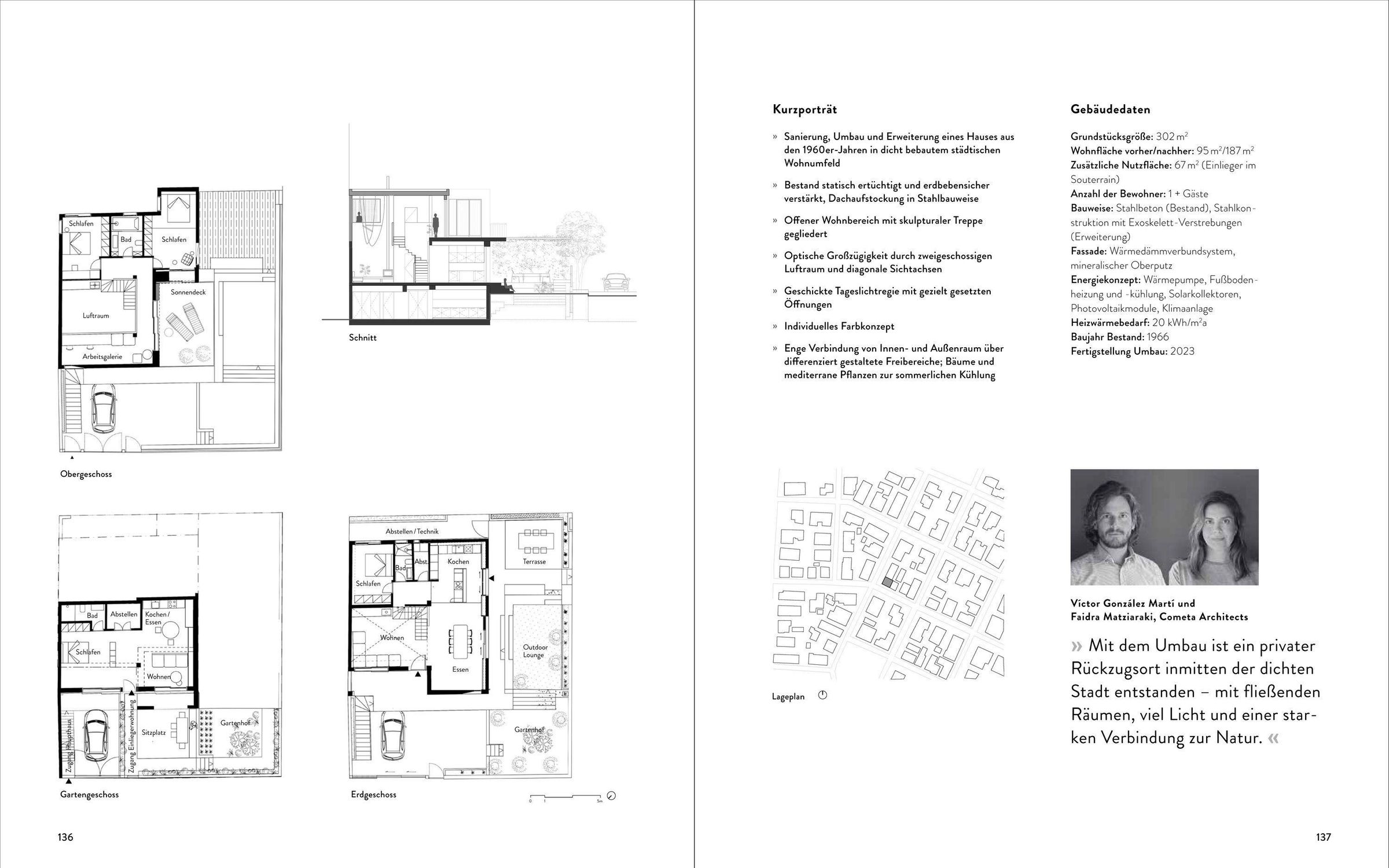 Ob durch Umbauten, Erweiterungen, Aufstockungen, Dachausbauten, Umnutzungen oder Sanierungen , ob mit behutsamen Eingriffen oder radikalen Transformationen: Alle 30 Projekte in diesem edlen Band beweisen eindrucksvoll, wie sich die Qualitäten eines Altbaus mit den Vorzügen zeitgemäßer Architektur verbinden lassen. Dies gelingt dank kluger Planung und kreativen Konzepten. Jedes Haus wird umfassend und gut verständlich dargestellt in erstklassigen Fotos, Grundrissen, Baudaten, informativen Texte sowie Fakten zu Materialien und Bauweisen . Alte Gebäude zu erhalten und sie an aktuelle Bedürfnisse bei Wohnkomfort, Funktionalität und Energieeffizienz anzupassen, ist nicht nur finanziell sinnvoll, sondern auch nachhaltiger und ressourcenschonender als ein Neubau. Ein weiterer Pluspunkt ist häufig die Lage der Häuser in gewachsener Umgebung mit intakter Infrastruktur - und oft überzeugt einfach ihr unverwechselbarer Charme.