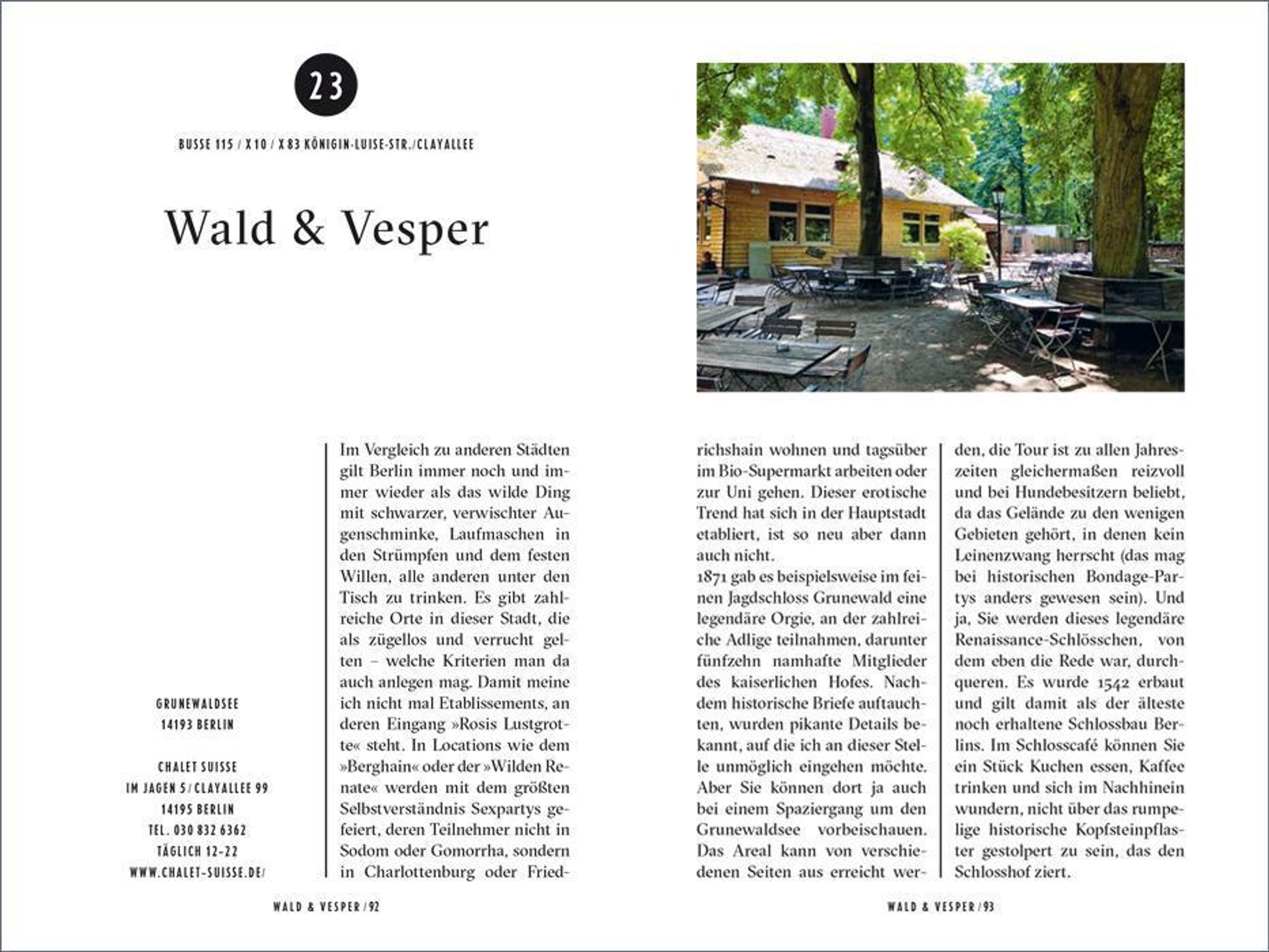 Schauen Sie der Stadt doch erstmal auf den Kopf. In der Cafeteria 'Skyline' in der 20. Etage der Technischen Universität bietet sich Ihnen ein gigantisches Panorama. Viele halten den Kaffee in der 'Giro Coffee Bar' , gleich um die Ecke, für den besten der Stadt. Dazu ein frisches Croissant, perfekt. Gehen Sie von hier aus zum reetgedeckten Teehaus im Englischen Garten. Stellen Sie sich davor und verschicken Sie ein Selfie mit 'Herzliche Grüße aus Sylt'. Mittags geht's ins Antiquariat in der Winterfeldtstraße , ein Panoptikum, in dem Sie auf geheimnisvolle Dinge wie fliegende Kugelfische und Dinosaurierzähne stoßen. Wie gut kennen Sie Moabit ? Schauen Sie genau hin, es bewegt sich nämlich gerade so schnell. Für viele Bewohner und Besucher gilt es als das neue Kreuzberg , genauer aber das alte Kreuzberg, 30, 40 Jahre zurück, als das Provisorische in Berlin noch über dem Perfekten stand. Den Sundowner nehmen Sie in der 'Hat Bar', einen Steinwurf vom Bahnhof Zoo entfernt. Hier jammen Musiker aus aller Welt, die Cocktails sind hervorragend und wer will, kommt schnell mit anderen Leuten ins Gespräch.