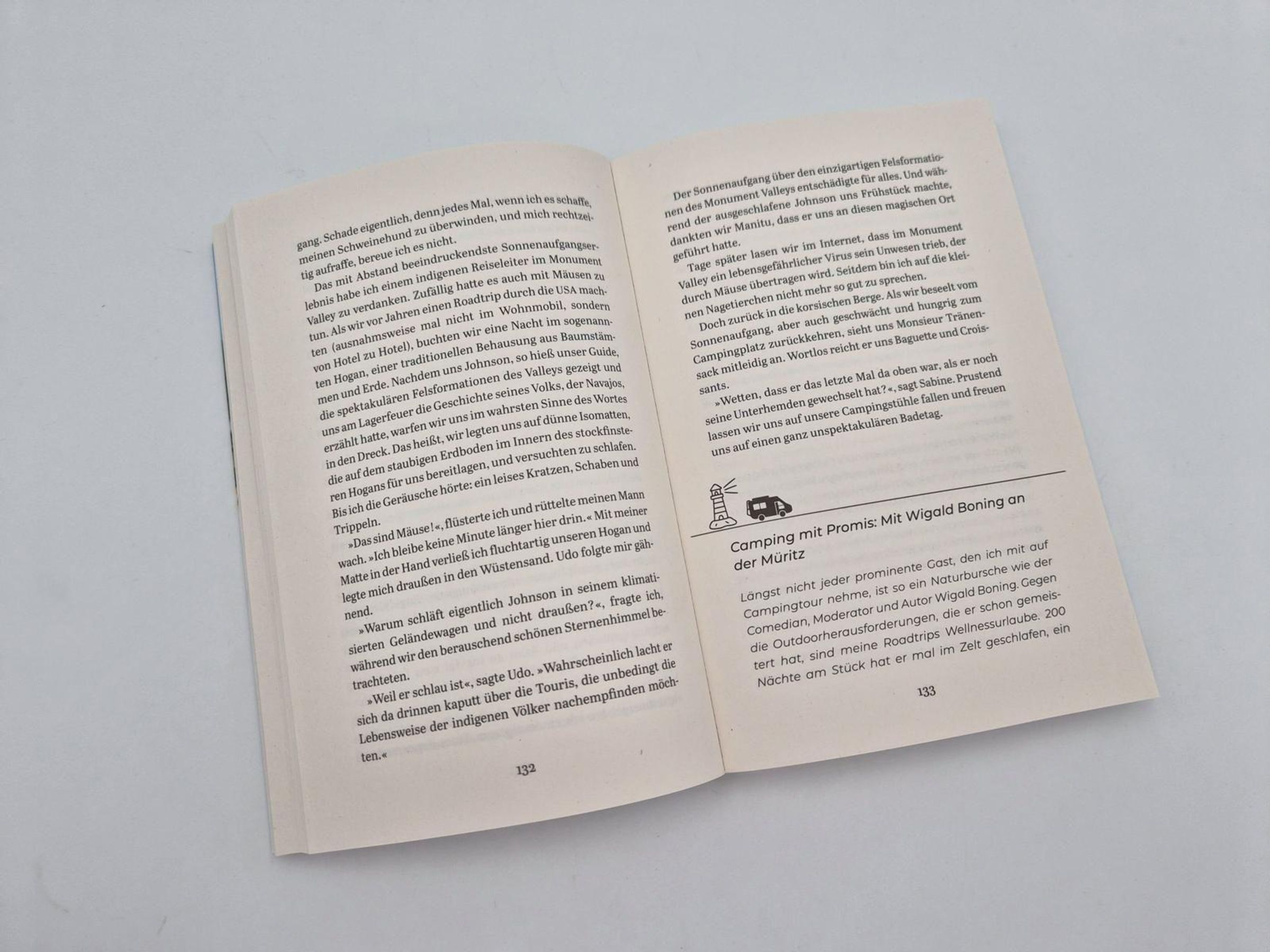 Ob auf den endlosen Straßen Australiens, an der wilden Küste der Bretagne oder nachts im deutschen Finsterwald: Mit viel Humor, Charme und einem Blick für das Besondere erzählt sie von skurrilen Begegnungen, kuriosen Erlebnissen und nachhaltigen Glücksmomenten. Dabei gibt sie nicht nur Einblicke in das Campen mit Promis, sondern verrät auch, wie man auf Reisen einfach und lecker kochen kann. Ein Buch voller Lebensfreude und Inspiration.