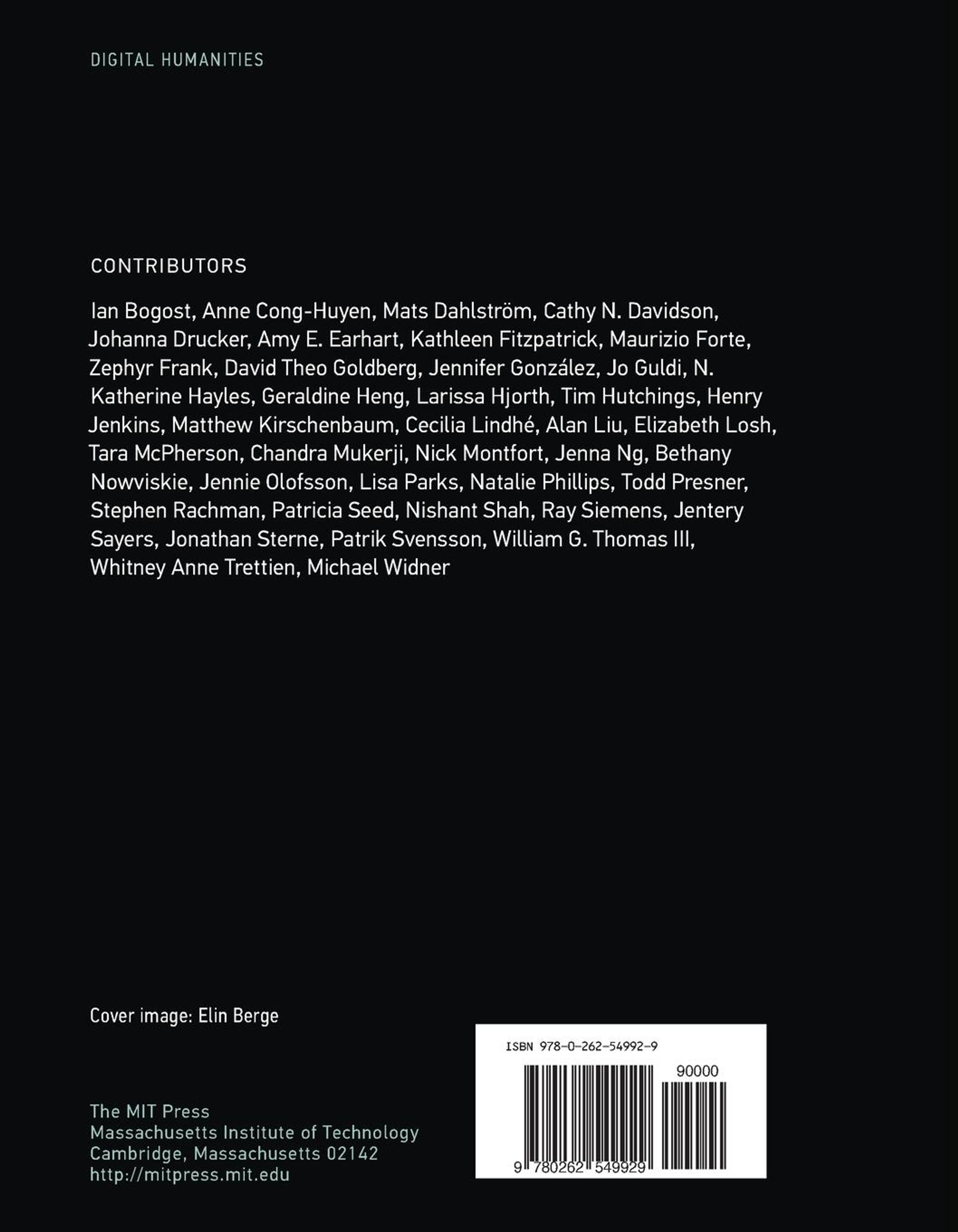 Ian Bogost, Anne Cong-Huyen, Mats Dahlström, Cathy N. Davidson, Johanna Drucker, Amy E. Earhart, Kathleen Fitzpatrick, Maurizio Forte, Zephyr Frank, David Theo Goldberg, Jennifer González, Jo Guldi, N. Katherine Hayles, Geraldine Heng, Larissa Hjorth, Tim Hutchings, Henry Jenkins, Matthew Kirschenbaum, Cecilia Lindhé, Alan Liu, Elizabeth Losh, Tara McPherson, Chandra Mukerji, Nick Montfort, Jenna Ng, Bethany Nowviskie, Jennie Olofsson, Lisa Parks, Natalie Phillips, Todd Presner, Stephen Rachman, Patricia Seed, Nishant Shah, Ray Siemens, Jentery Sayers, Jonathan Sterne, Patrik Svensson, William G. Thomas III, Whitney Anne Trettien, Michael Widner