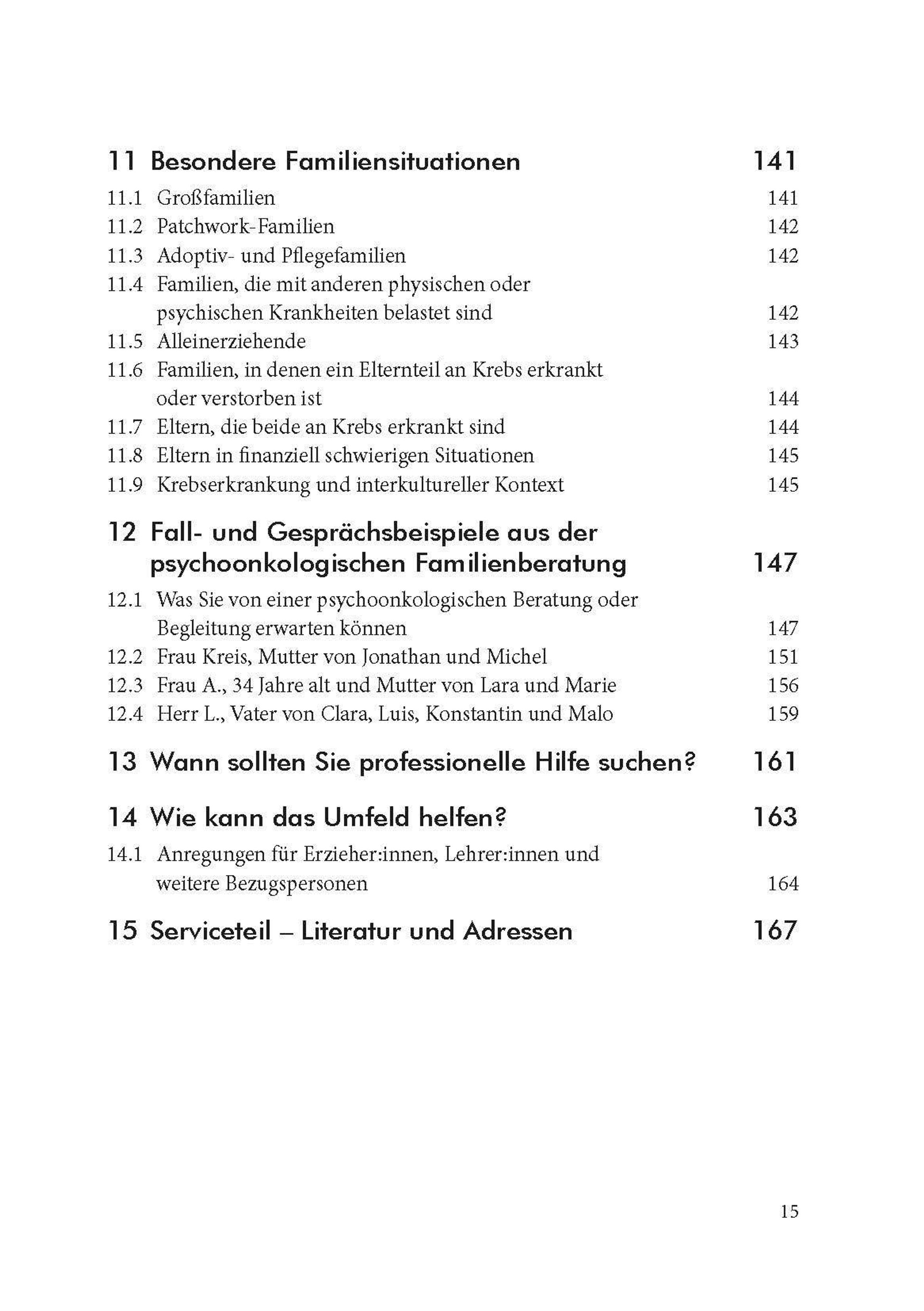 Erhält ein Elternteil die Diagnose Krebs, sind ebenfalls die Kinder betroffen. Dieser Ratgeber ist aus der konkreten Beratungspraxis entstanden und beantwortet die häufigsten Fragen, die Eltern mit einer Krebsdiagnose belasten. Anhand ihrer langjährigen Erfahrung mit betroffenen Familien gibt die Autorin konkrete Empfehlungen, wie Eltern ihren Kindern altersgerecht - vom Kleinkind bis zum Jugendlichen - die Krebsdiagnose vermitteln können. Sie ermutigt zu Gesprächen und zeigt, wie man Kinder so einbezieht, damit sie sich nicht verloren fühlen. Dabei gibt sie konkrete Tipps für viele verschiedene Situationen, macht Vorschläge für eine gute und gelungene Kommunikation und ermutigt dazu, Kinder frühzeitig in alle Veränderungen einzubinden.