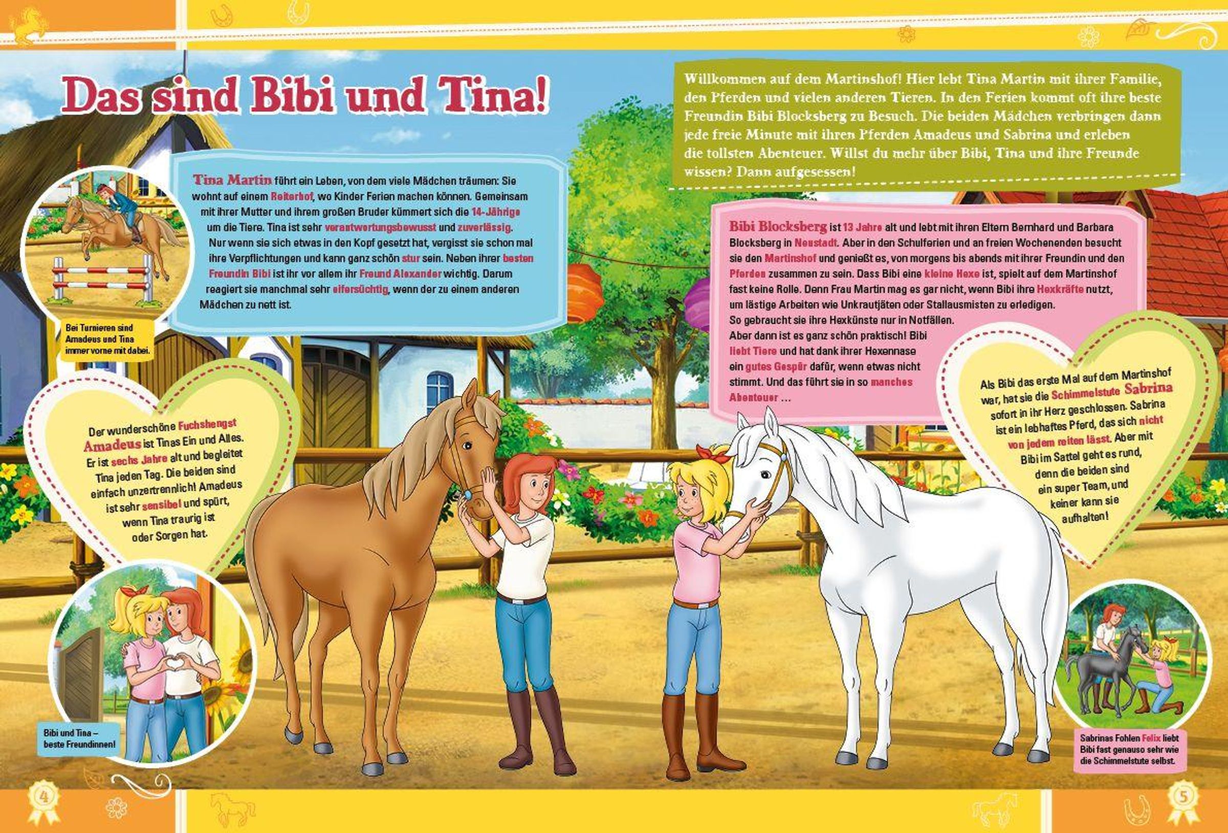 Wollt ihr wissen, welche Geheimnisse sich in Bibis Tagebuch verbergen? Oder wie Frau Martins berühmter Butterkuchen gebacken wird? In diesem großen Jubiläumsbuch erfahrt ihr jede Menge Wissenswertes über die beiden Freundinnen und ihre Lieblingspferde. Außerdem gibt es eine spannende Geschichte, Bastelanleitungen und Rezepte. Ein Muss für jeden Fan!