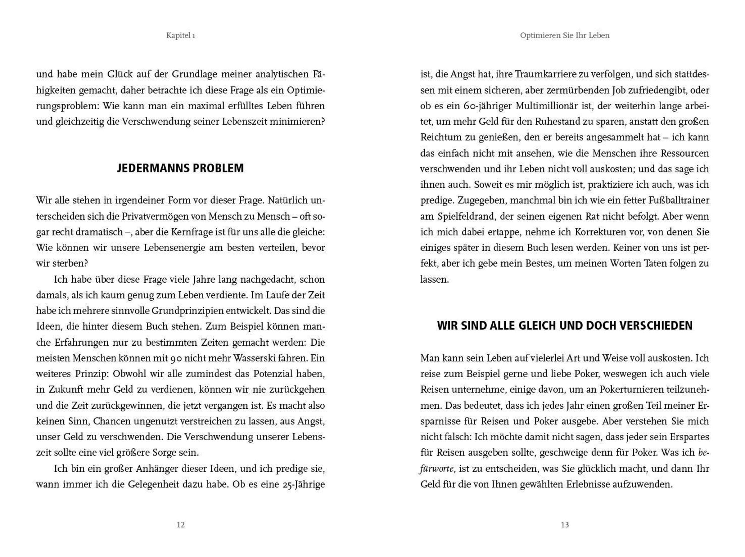 Stellen Sie sich vor, Sie hätten zum Zeitpunkt Ihres Todes alles getan, was Ihnen aufgetragen wurde: Sie haben hart gearbeitet, Geld gespart und sich auf Ihre finanzielle Freiheit im Ruhestand gefreut. Das Einzige, das Sie dabei verschwendet haben, war ... Ihr Leben. Früher oder später sterben wir alle, sodass wir uns die Frage stellen müssen, wie wir das Beste aus unserer endlichen Zeit machen können. William Perkins betrachtet diese Frage als ein Optimierungsproblem: Wie kann man ein maximal erfülltes Leben führen und gleichzeitig die Verschwendung seiner Lebenszeit minimieren? Manche Erfahrungen können nur zu bestimmten Zeiten gemacht werden, daher macht es keinen Sinn, Chancen ungenutzt verstreichen zu lassen, aus Angst, unser Geld zu verschwenden. Die Verschwendung unserer Lebenszeit sollte eine viel größere Sorge sein. Indem Sie genau planen, wie Sie mit den Ihnen zur Verfügung stehenden Ressourcen das Maximum an erfüllenden Erfahrungen erreichen, maximieren Sie auch Ihre Lebensqualität. Dieses Buch ist für diejenigen gedacht, die lebenslange denkwürdige Erfahrungen über das bloße Geldverdienen und -sammeln für die sogenannten goldenen Jahre stellen. Das Leben ist zu kurz für später.