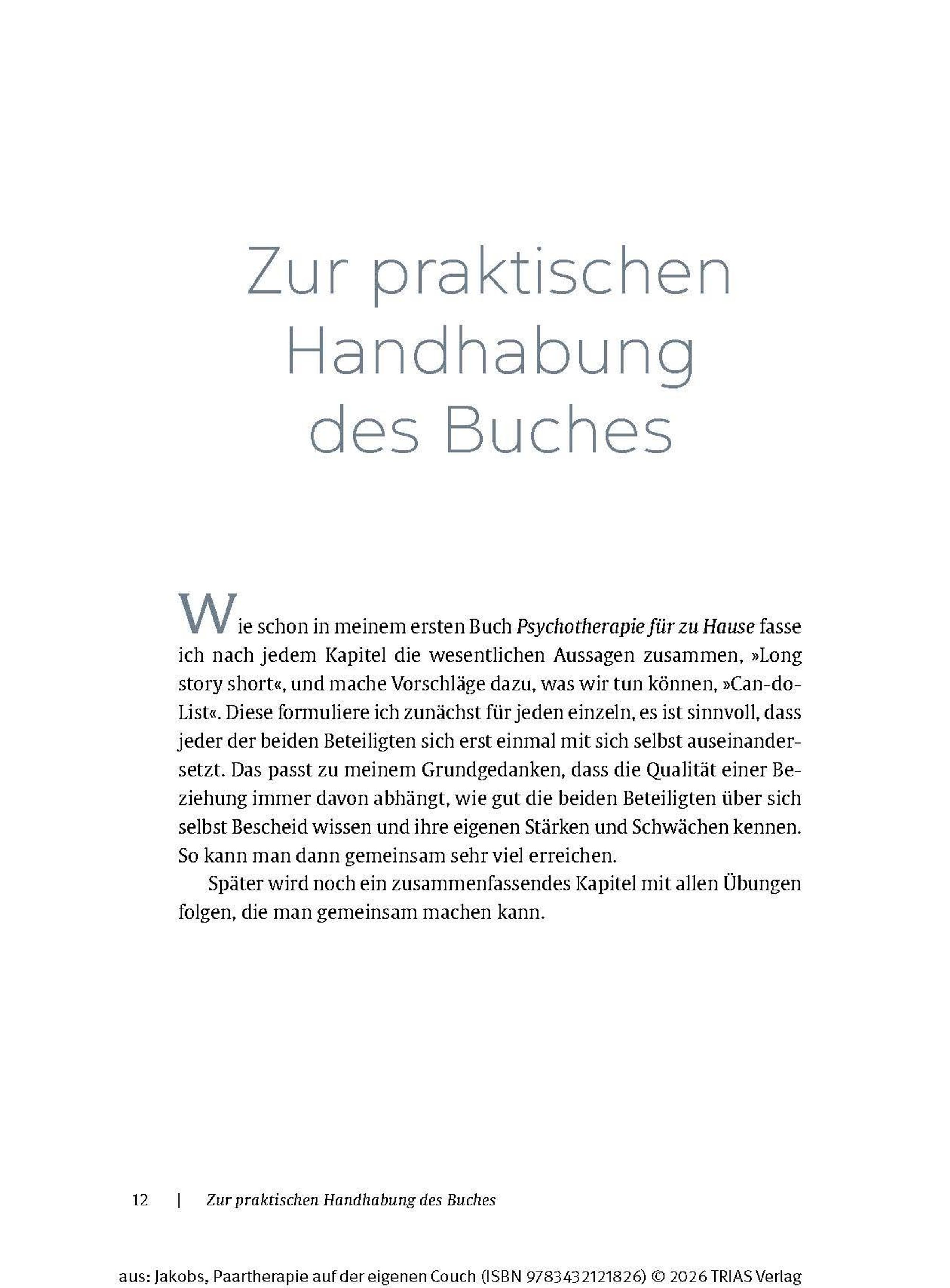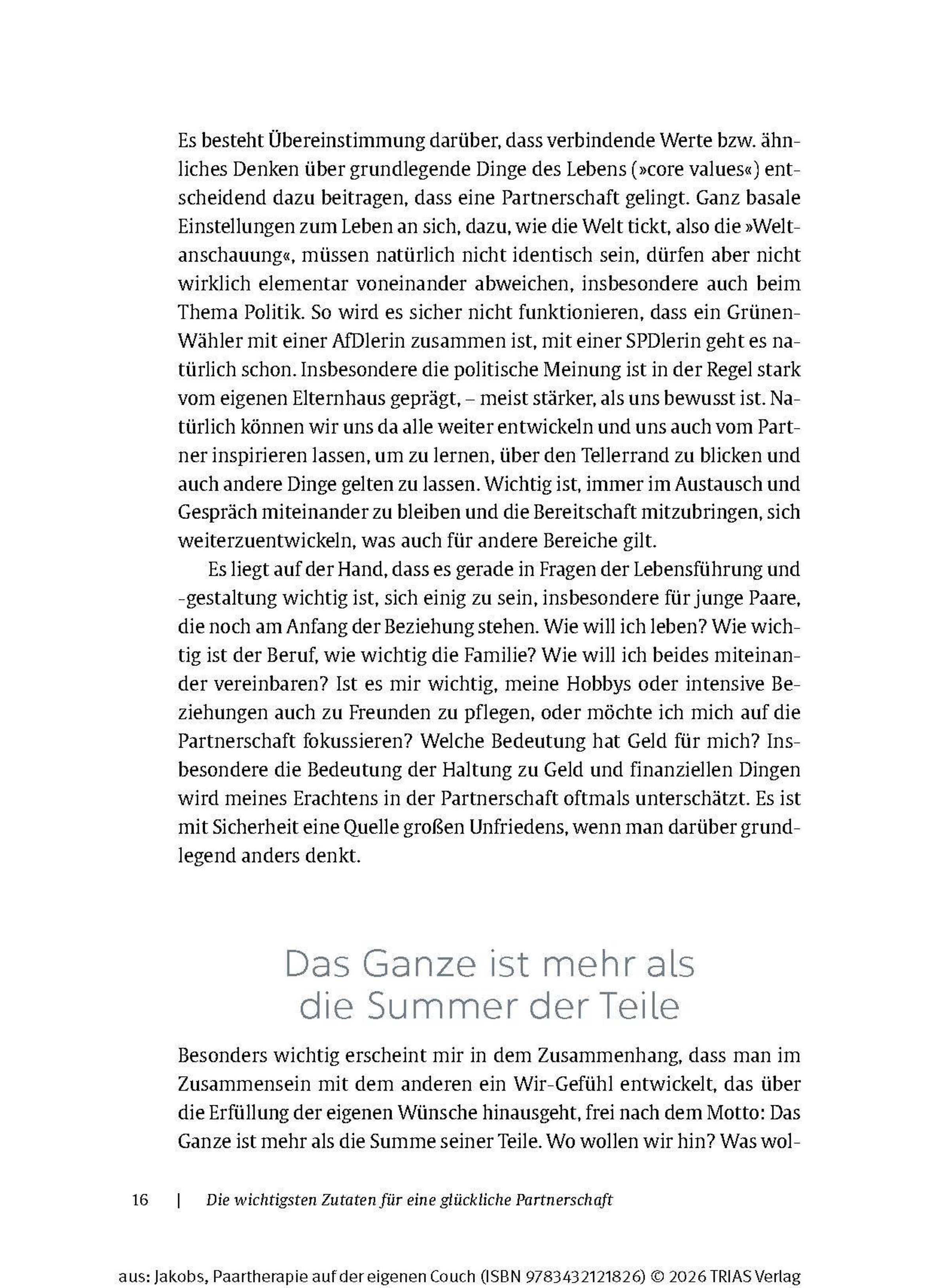 Steckt ihr als Paar in einer Krise und spürt, wie Streit, schlechte Kommunikation und Verletzungen eure Partnerschaft belasten? Habt ihr das Gefühl, nicht mehr richtig zueinanderzufinden? Wenn ihr gemeinsam aus der Krise herausfinden und euch gemeinsam weiter entwickeln wollt, bietet euch dieses Buch eine wertvolle Unterstützung. Die Ärztin und Psychotherapeutin Dr. med. Birgit Jakobs zeigt euch, wie ihr gemeinsam eure Beziehung stärken und Vertrauen wieder aufbauen könnt: