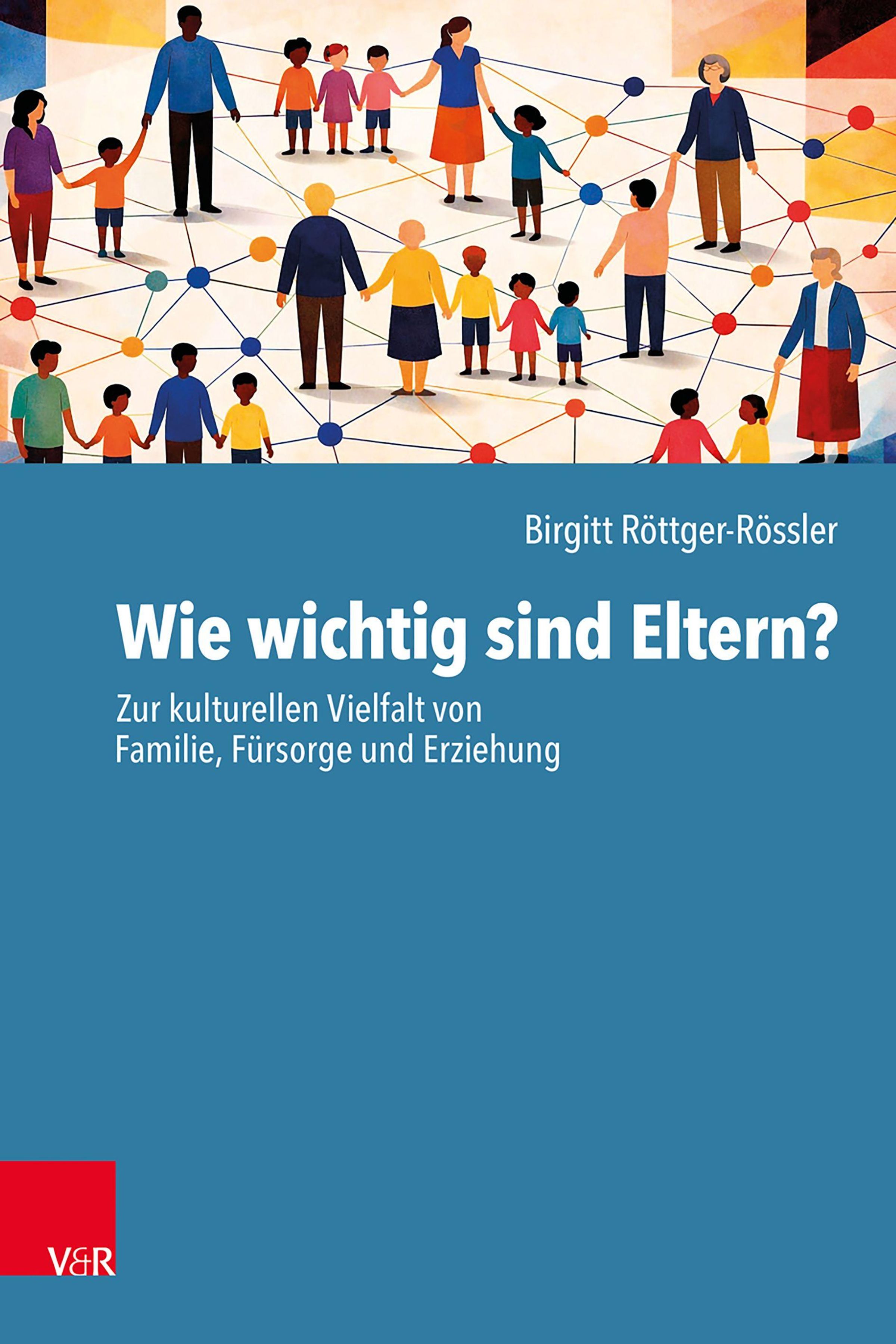 Wie wichtig sind Eltern? Zur kulturellen Vielfalt. Illustration von Menschen, die sich an den Händen halten, verbunden mit Linien., Buch