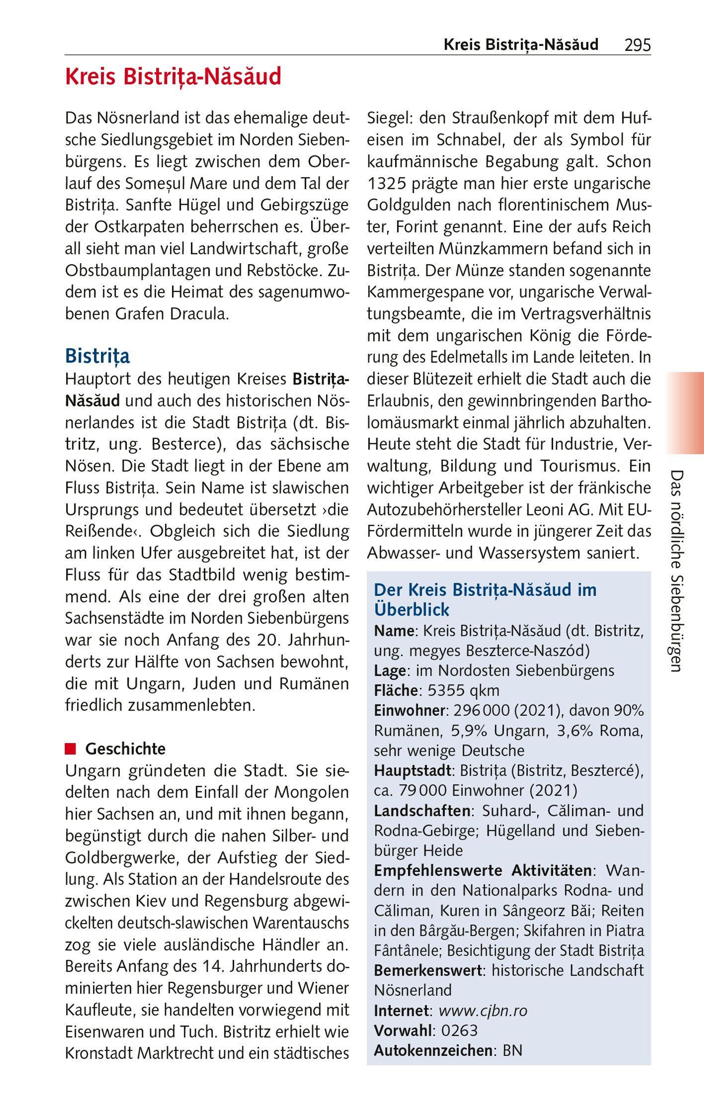 Alle Sehens- und Erlebenswürdigkeiten sind im Trescher-Reiseführer SIEBENBÜRGEN sorgfältig beschrieben. Geschichte und Landeskunde, Küche, Kultur und Lebensart in der Vielvölkerregion werden ausführlich vorgestellt. Zu jedem Kapitel gibt es Hotel- und Gastroempfehlungen sowie die schönsten Wandervorschläge, darunter Bergtouren in den Karpaten und im Apuseni-Gebirge. Ergänzt um zahlreiche aktuelle Reisetipps - von Anreise über Freizeitaktivitäten bis Zahlungsmittel - sowie einen Sprachführer, ist dieser Reiseführer ein unverzichtbarer Begleiter für alle, die das Herz Rumäniens, seine Kultur- und Naturschätze eingehend erkunden möchten.