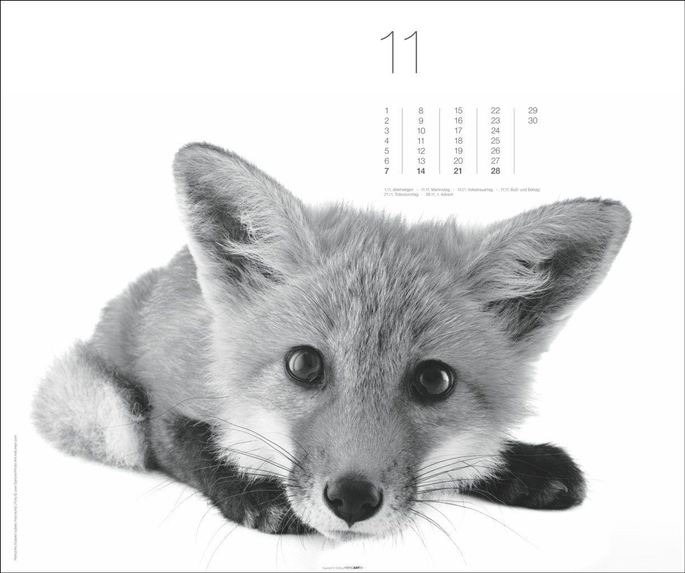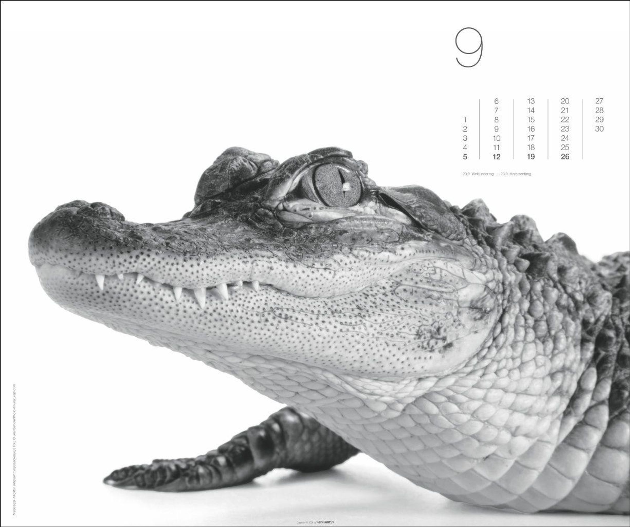 Faultier, Krokodil, Eule, Fuchs und Co. elegant in Szene gesetzt in einem großen Tier-Kalender in Schwarz-Weiß