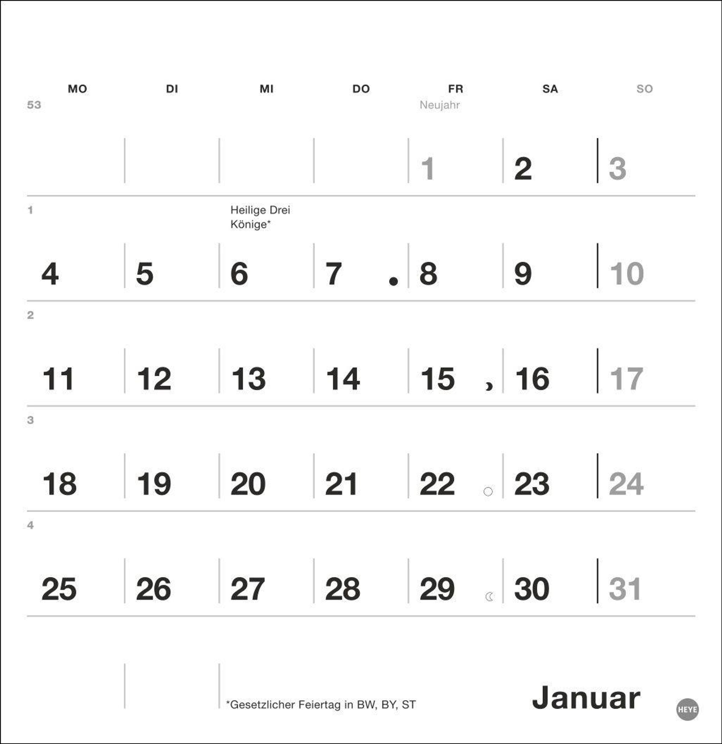 - Neutraler Tisch-Kalender in schlichter Schwarzweiß-Optik für den perfekten Überblick. Praktische Organisationshilfe im Format 16 x 16,5 cm
