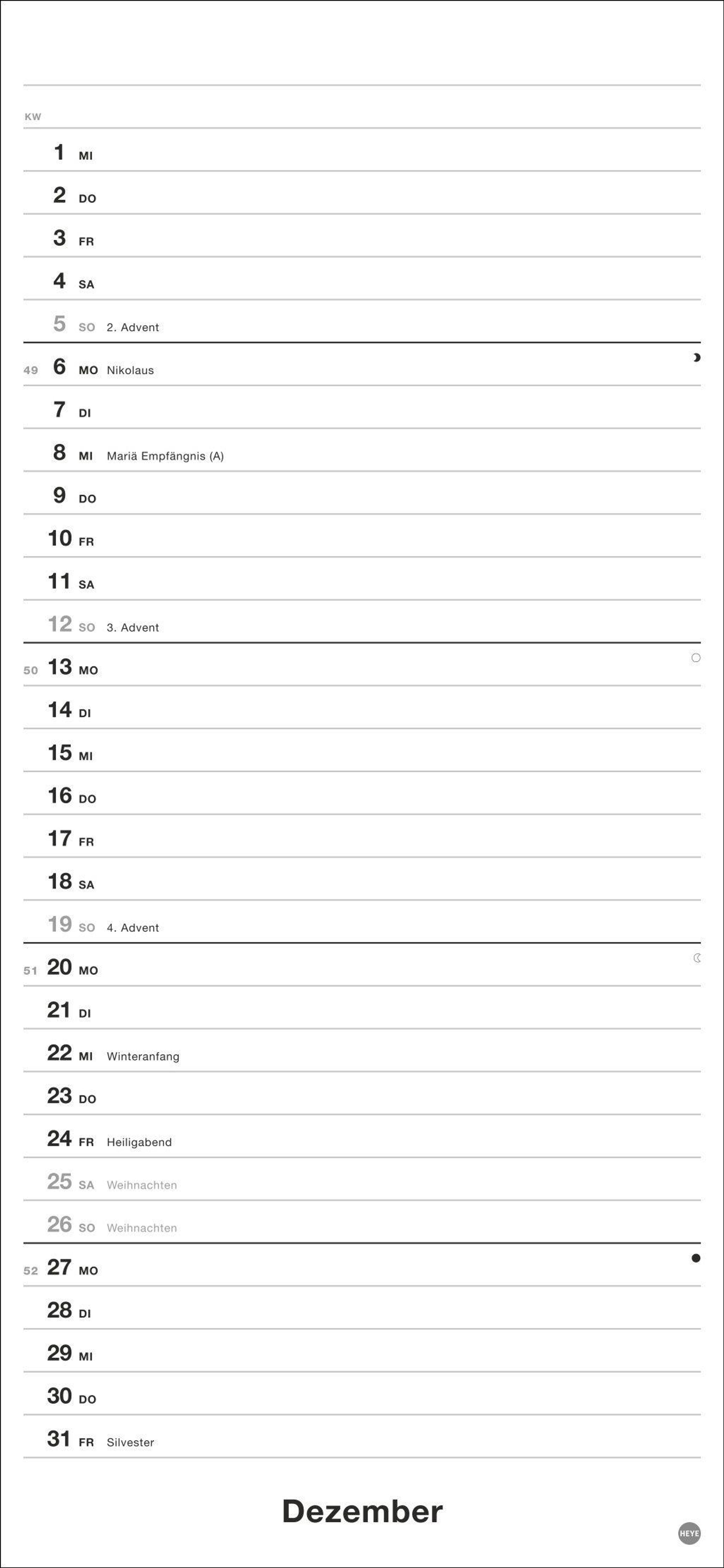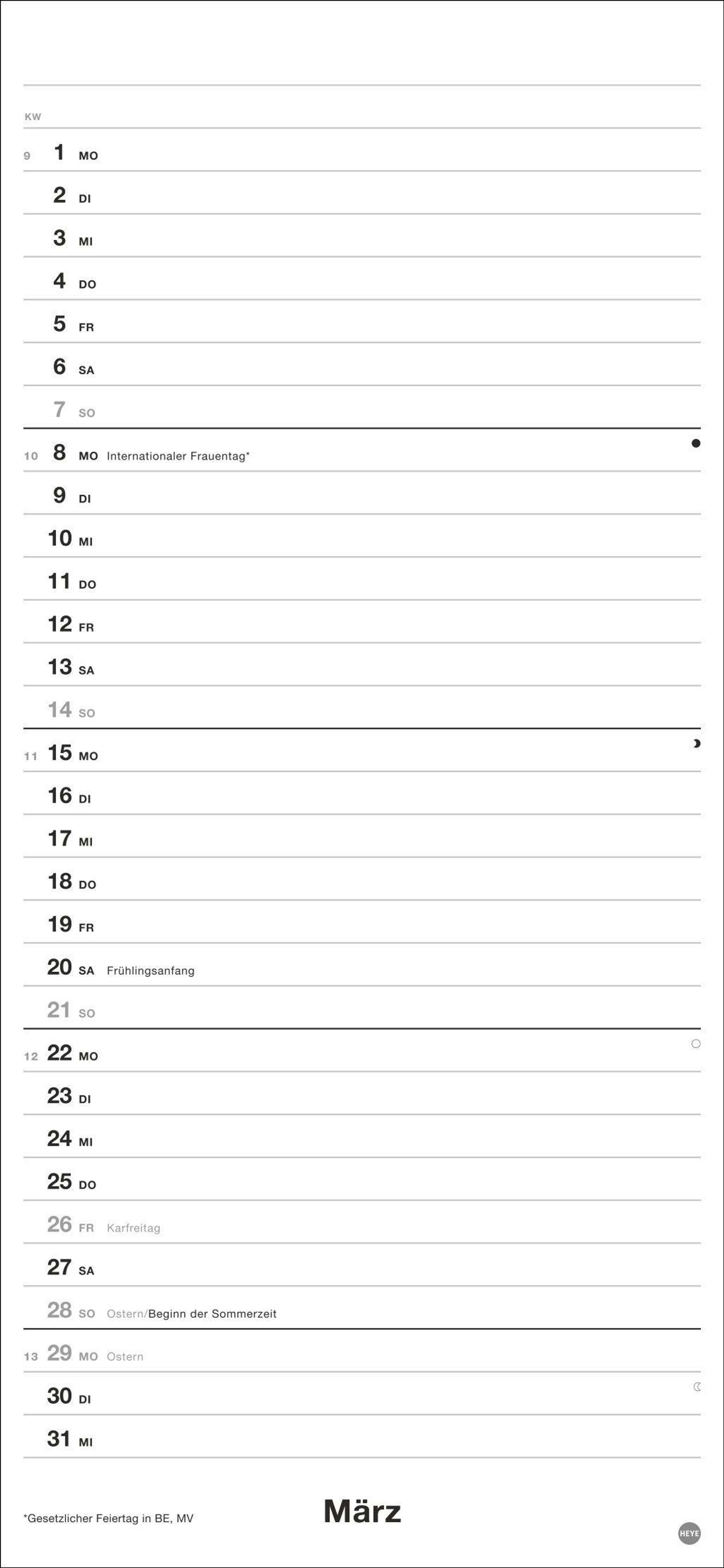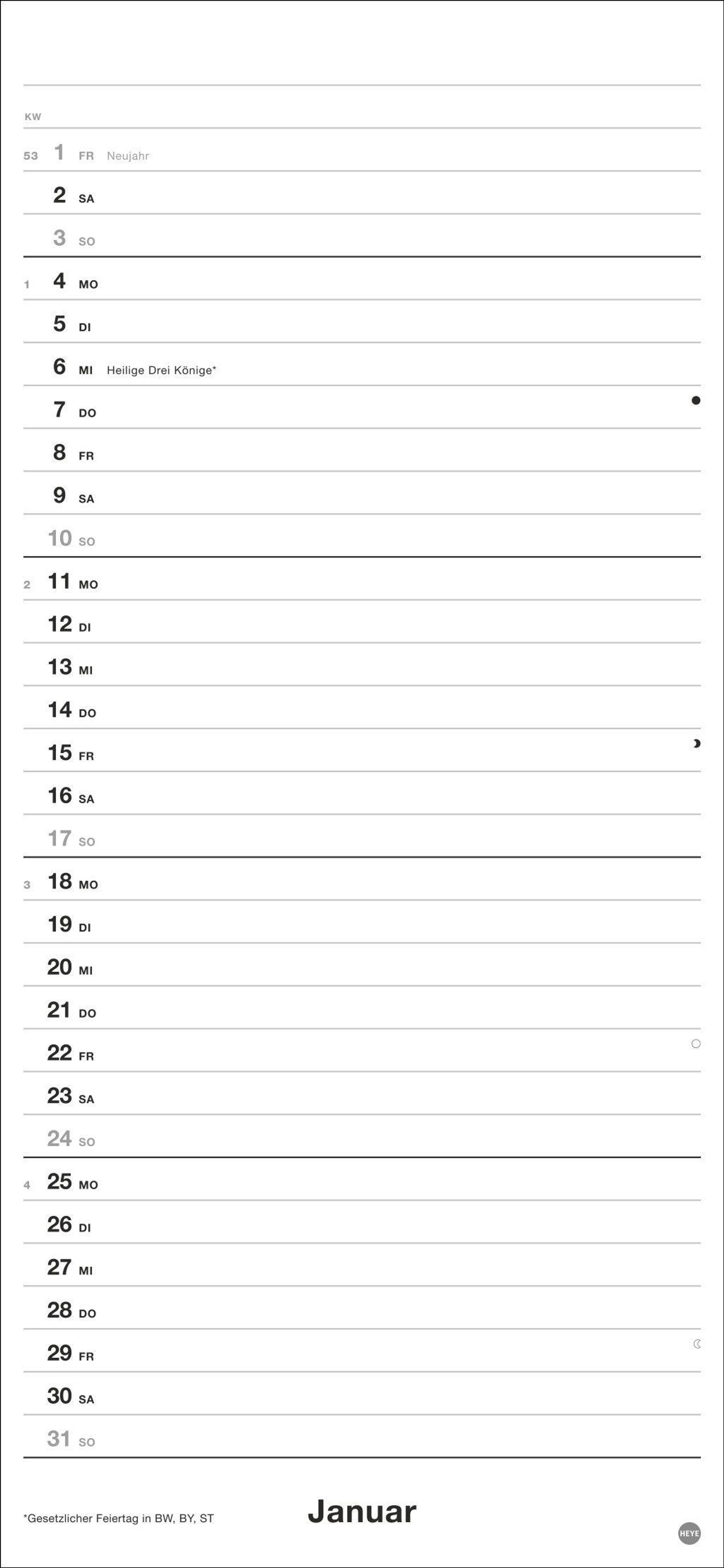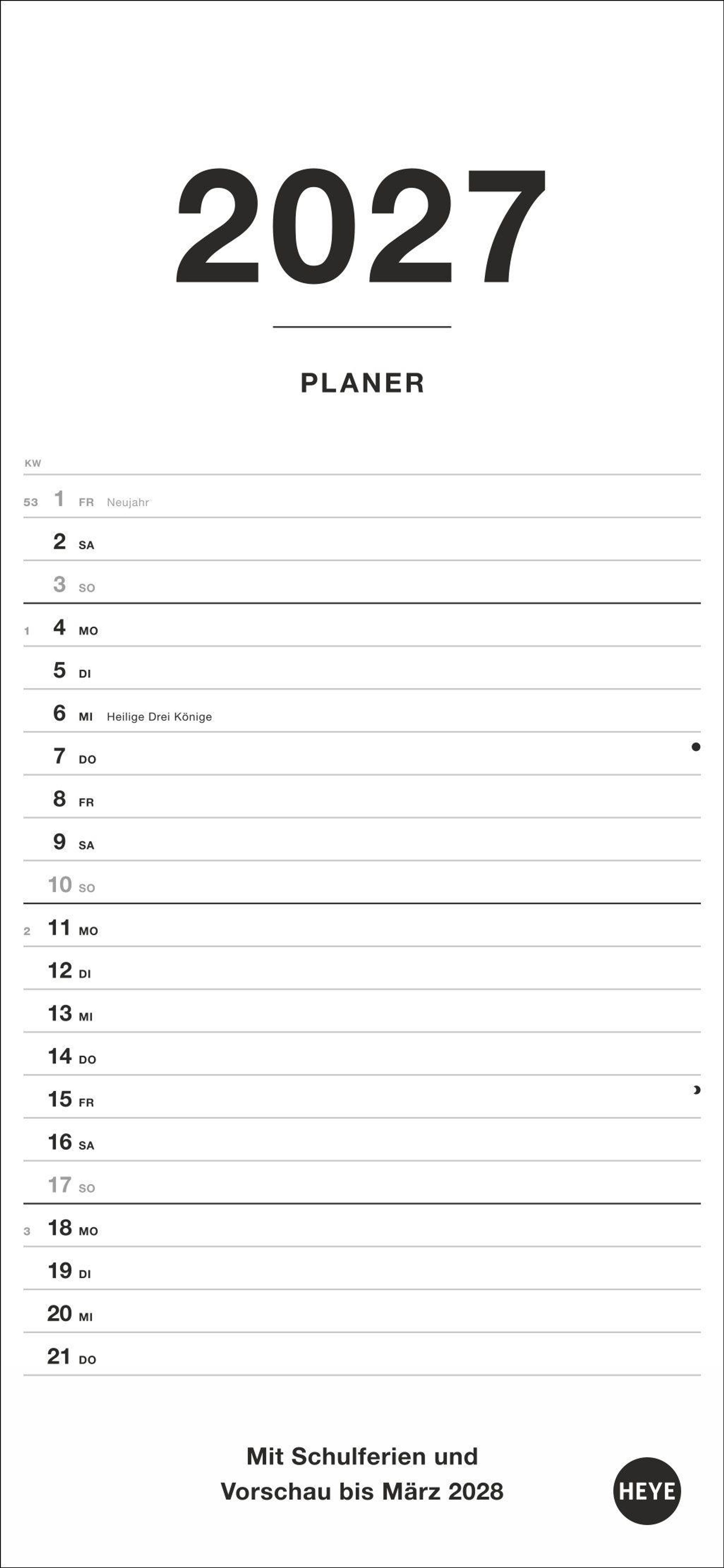 So klappt's mit den gemeinsamen Verabredungen: Heye-Planer für zwei 2027 mit frei eintragbaren Spalten, Schulferien und Vorschau bis März 2028