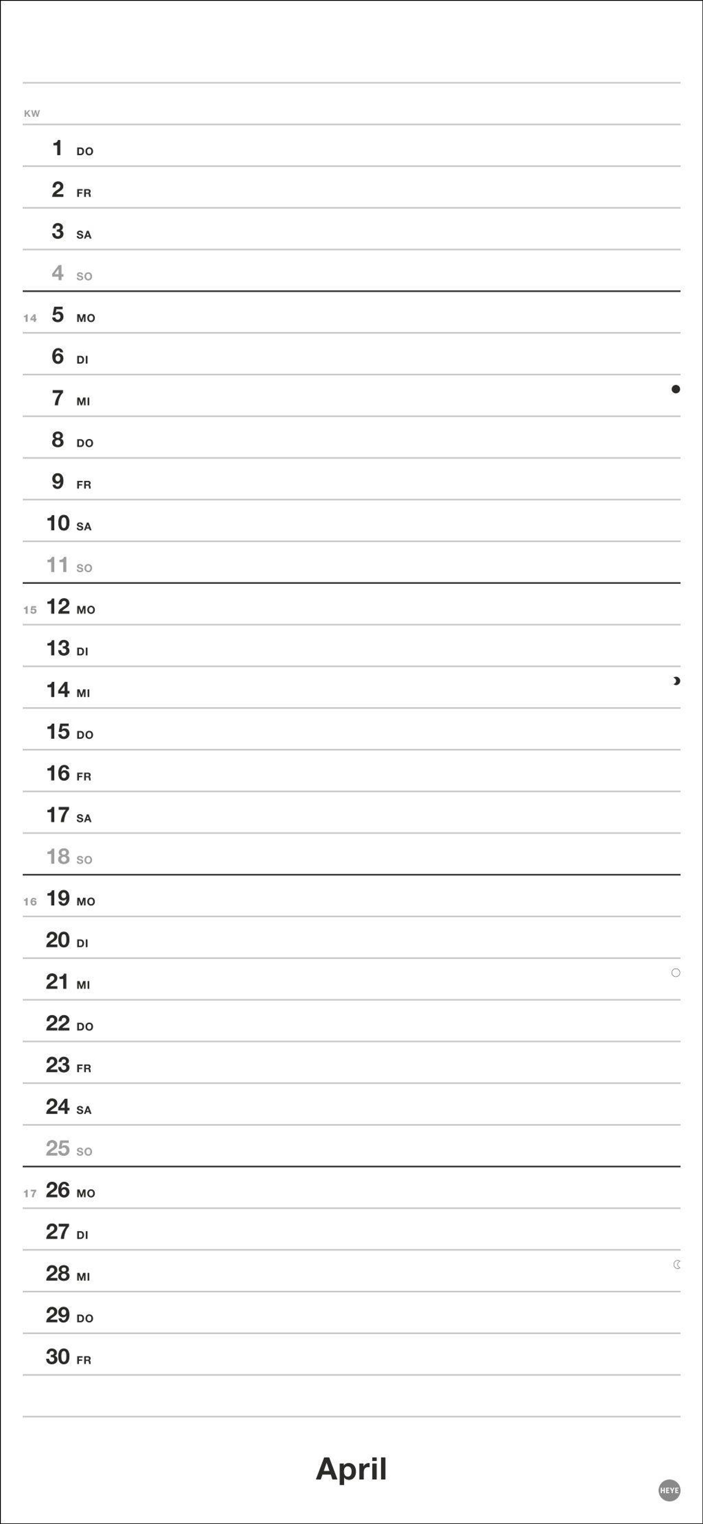 - Praktischer Streifenkalender für ein oder zwei Personen im minimalistischen Schwarzweiß-Design. Terminübersicht leicht gemacht im Hochformat 16 x 34,7 cm