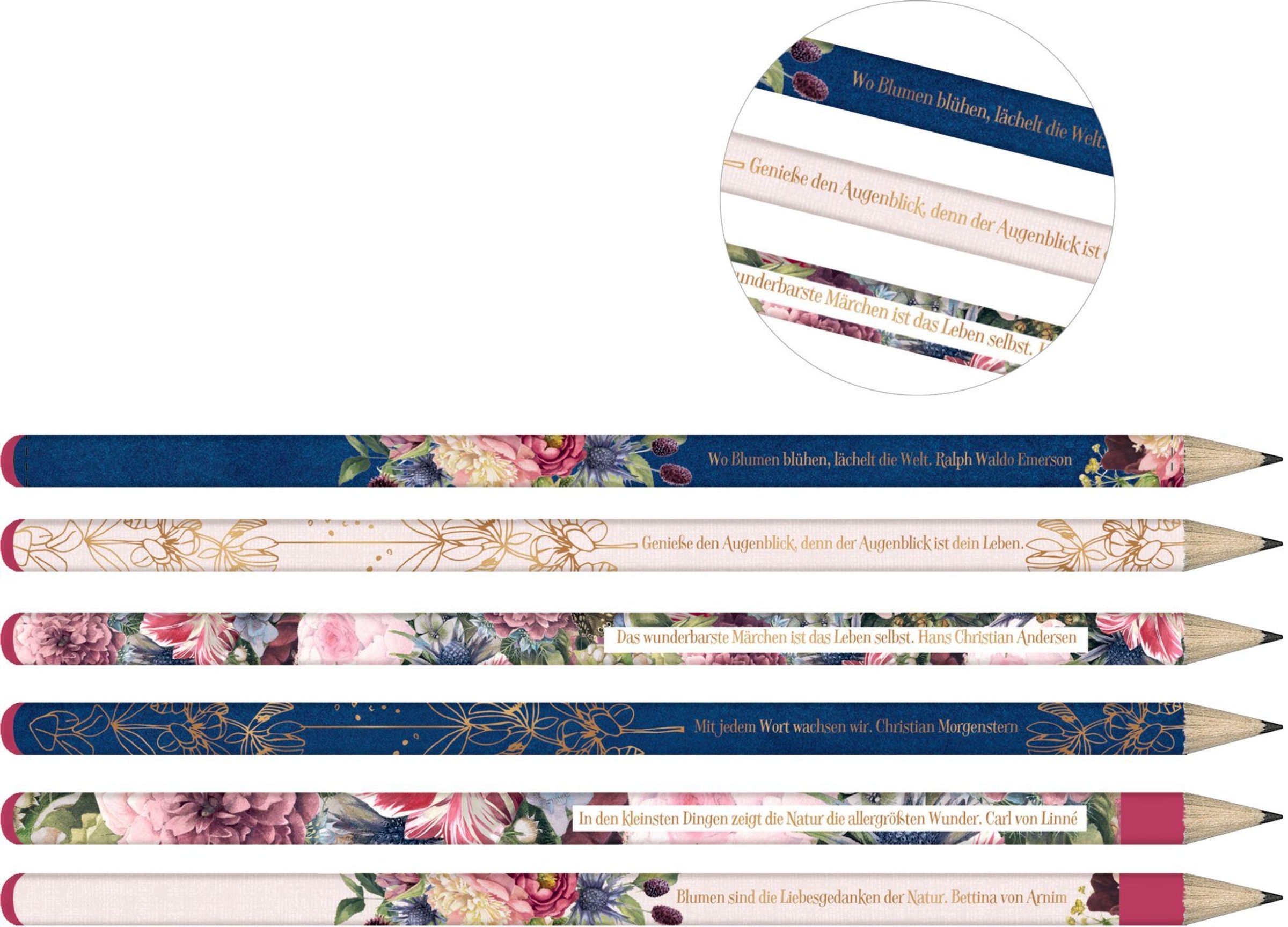 Das Bleistiftset besteht aus 6 unterschiedlichen, mit inspirierenden Sprüchen versehenen Bleistiften.