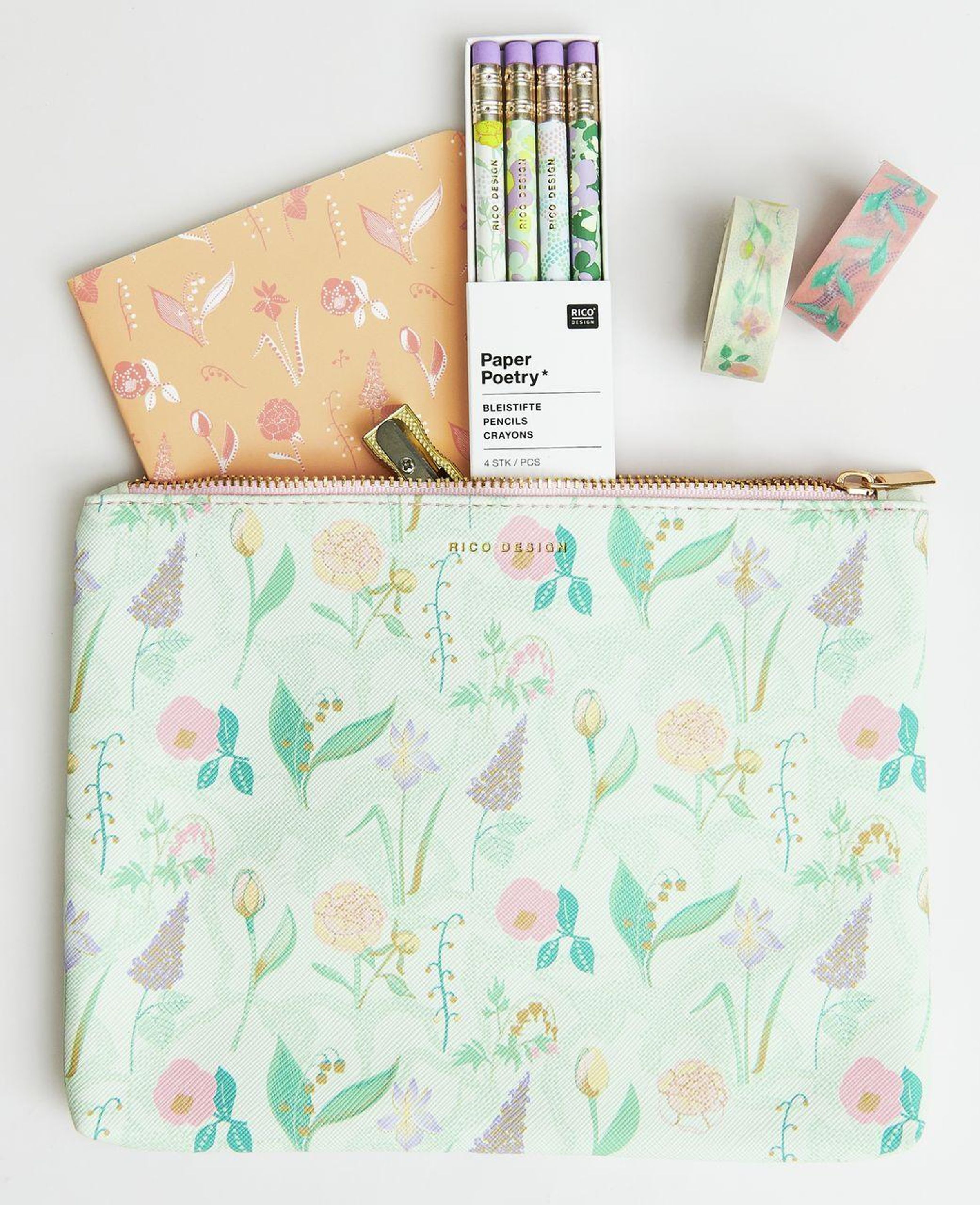 "Paper Poetry*", Bleistifte 4 Stk, florale Muster, lilafarbene Radiergummis, verpackt in einer schlichten weißen Schachtel., Diverse
