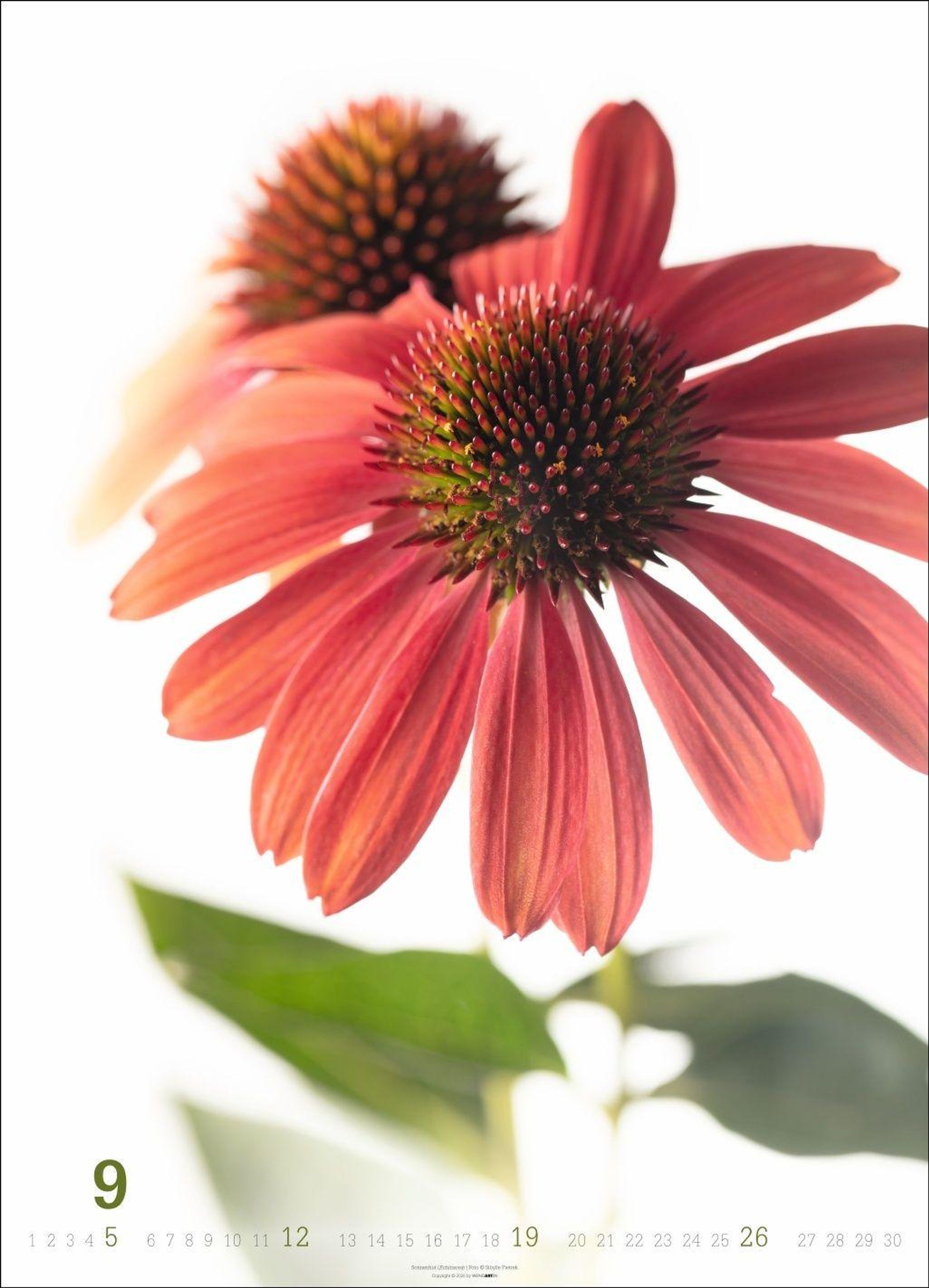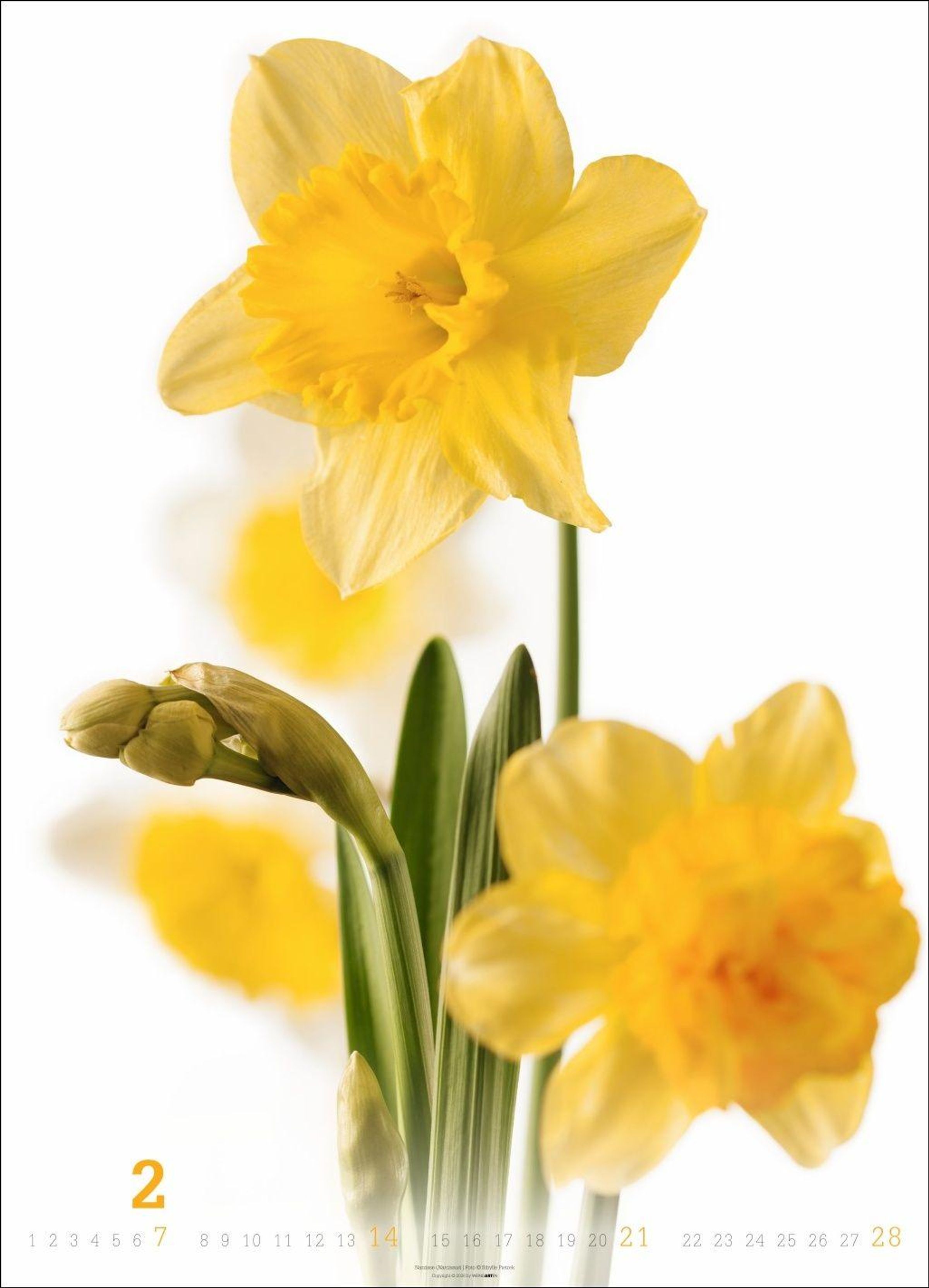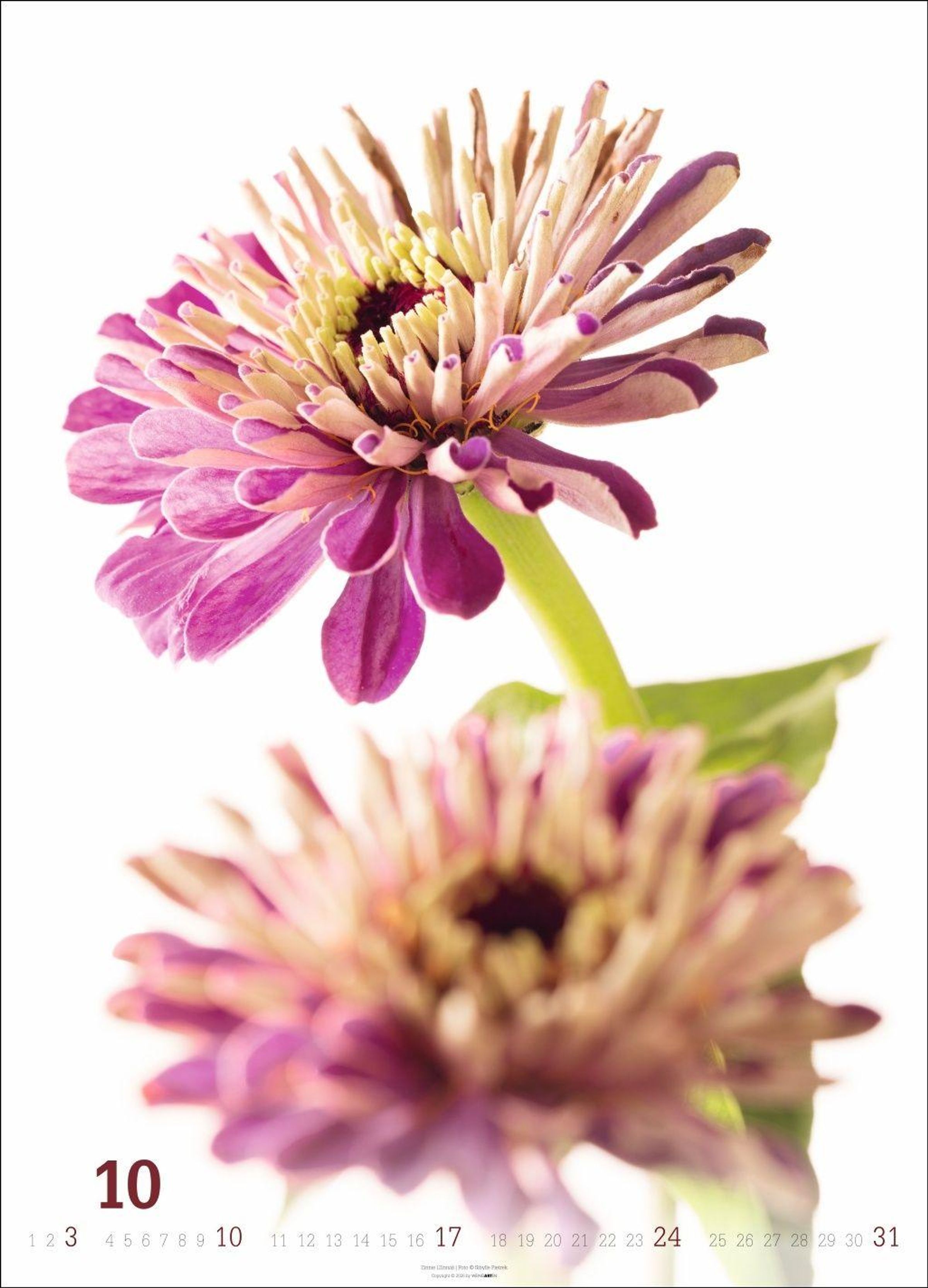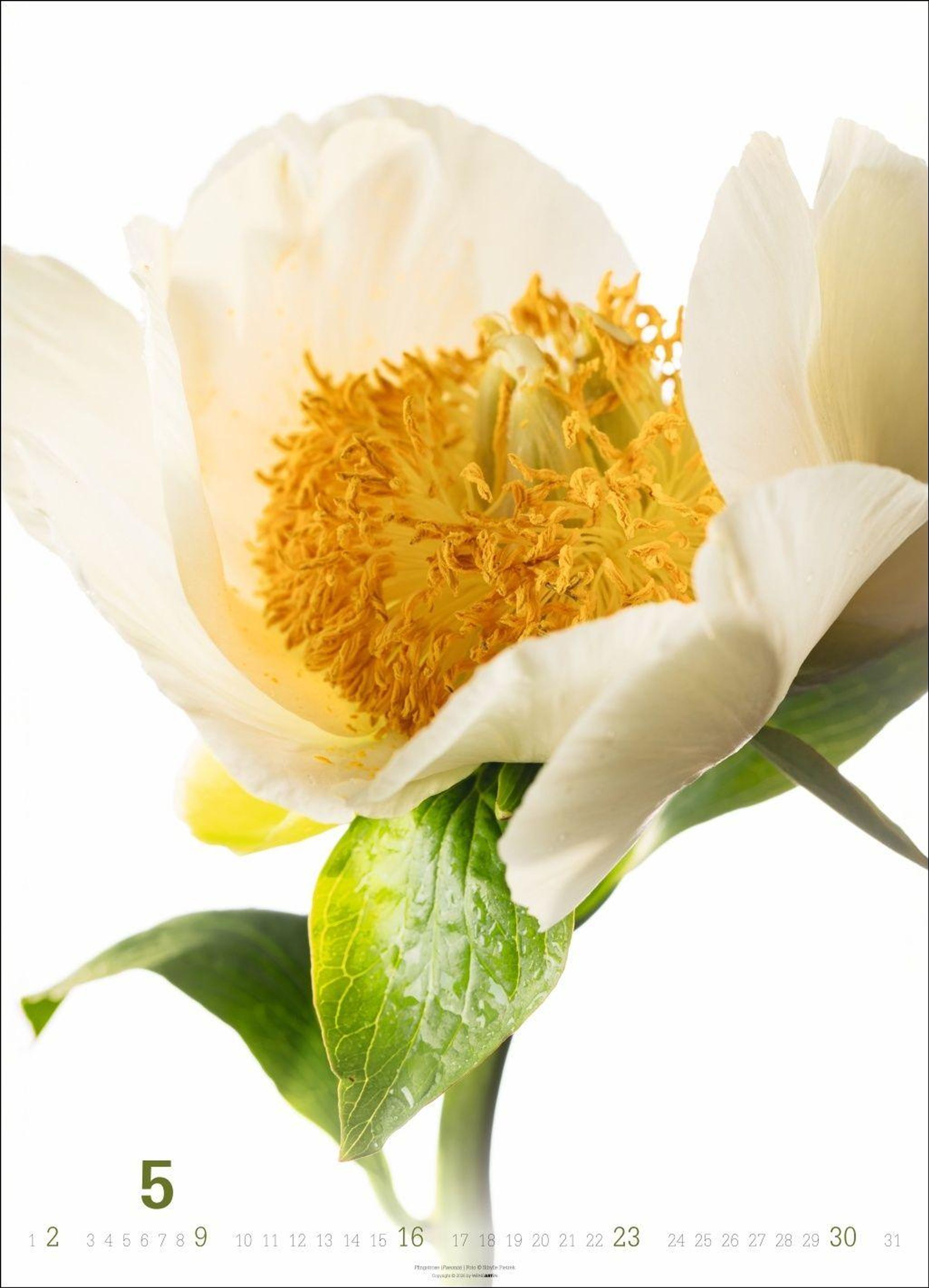 Die Blüte im Mittelpunkt: Blumen-Fotos vor weißem Hintergrund in einem großen Wandkalender